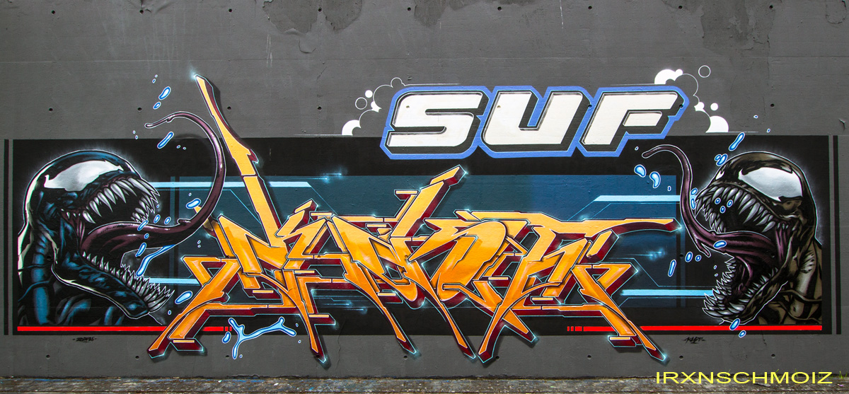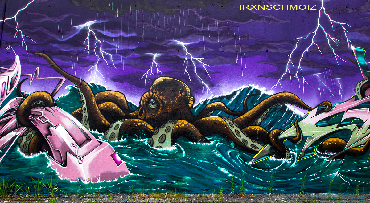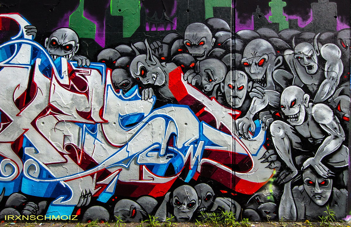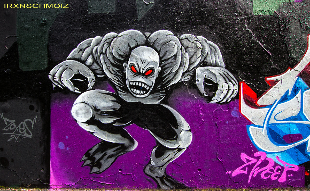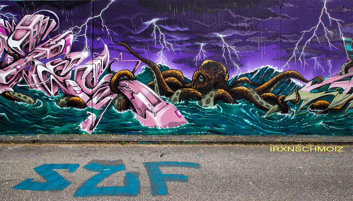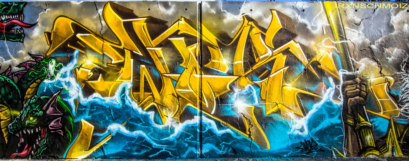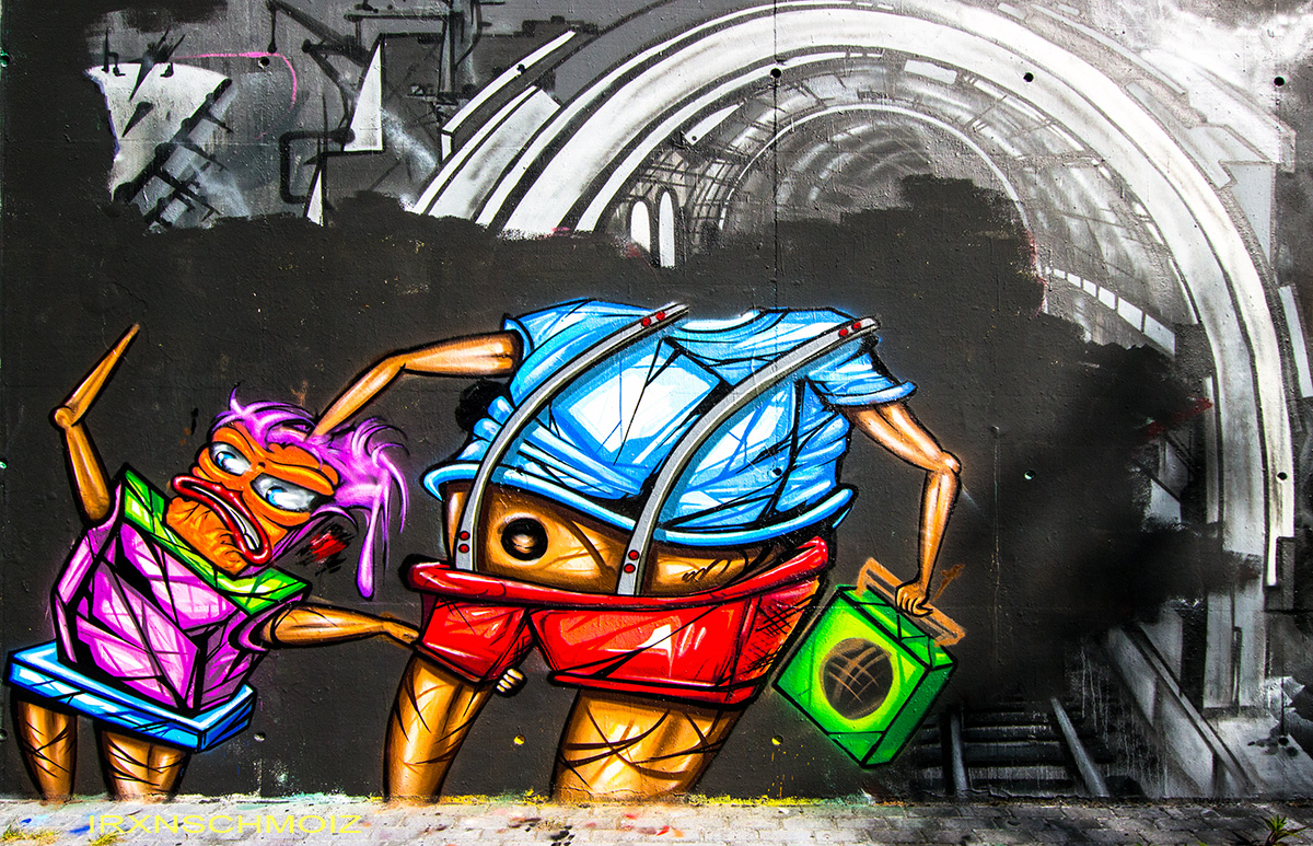Actually you need a permit to paint on the Heimfeld Hall of Fame which you can get via an online formular on the website of the GROSSSTADTRAUM art society. Spray Rules: Painting only with a valid permit – Do not use bitumen under any circumstances  –  Please dispose of waste in the waste garbage cans or take it with you  –  Please leave the garbage cans in place  –  Any changes to the wall, such as drilling, removing or gluing, are prohibited  –  Painting the floor, signs and other surfaces is prohibited  –  Treat each other, the local residents and nature with respect  –  Always paint over a picture or concept completely if possible  –  The wall is for everyone! Choose your area with consideration for others  –  Beginners should practise on the inner, small wall by the sloping dyke  –  Grosstadtraum e.V.
