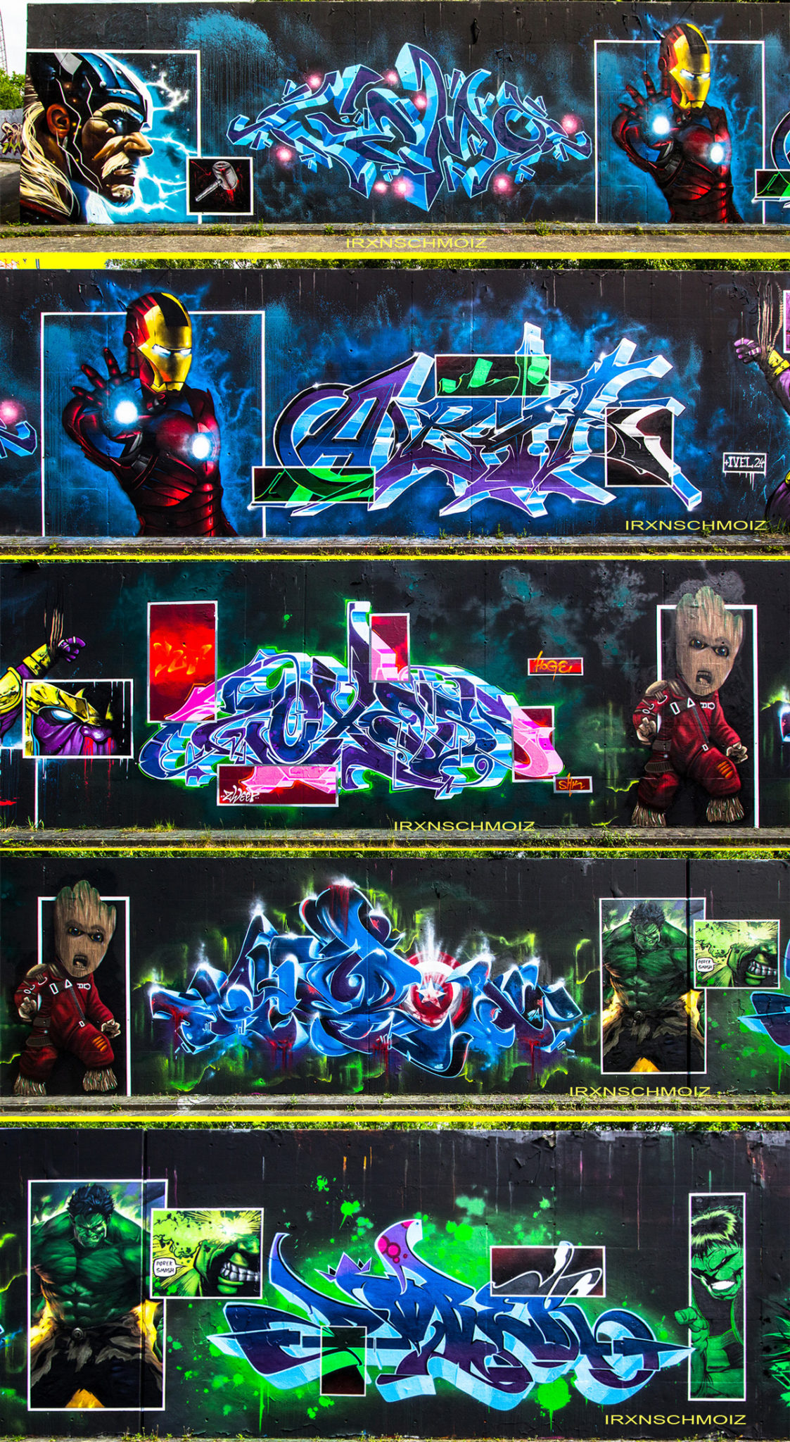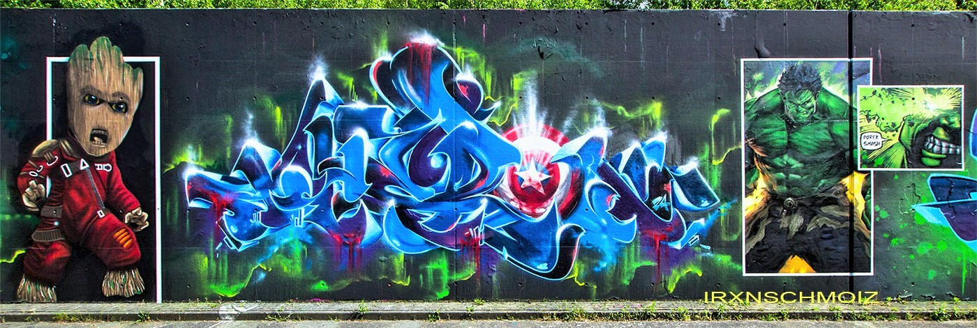 This graffiti is part of the awesome AVENGERS CONCEPT WALL made by SERK, GEMO, ABIK, IVEL, ZOXES, HOGE, THERON and DOREK