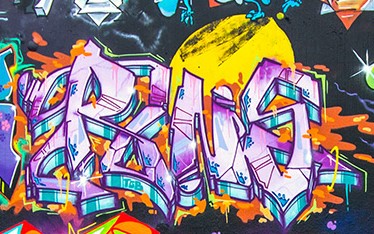 The graffiti on the left is from NEOK, the graffiti below is from KAST and the graffiti on the right was made by KURT