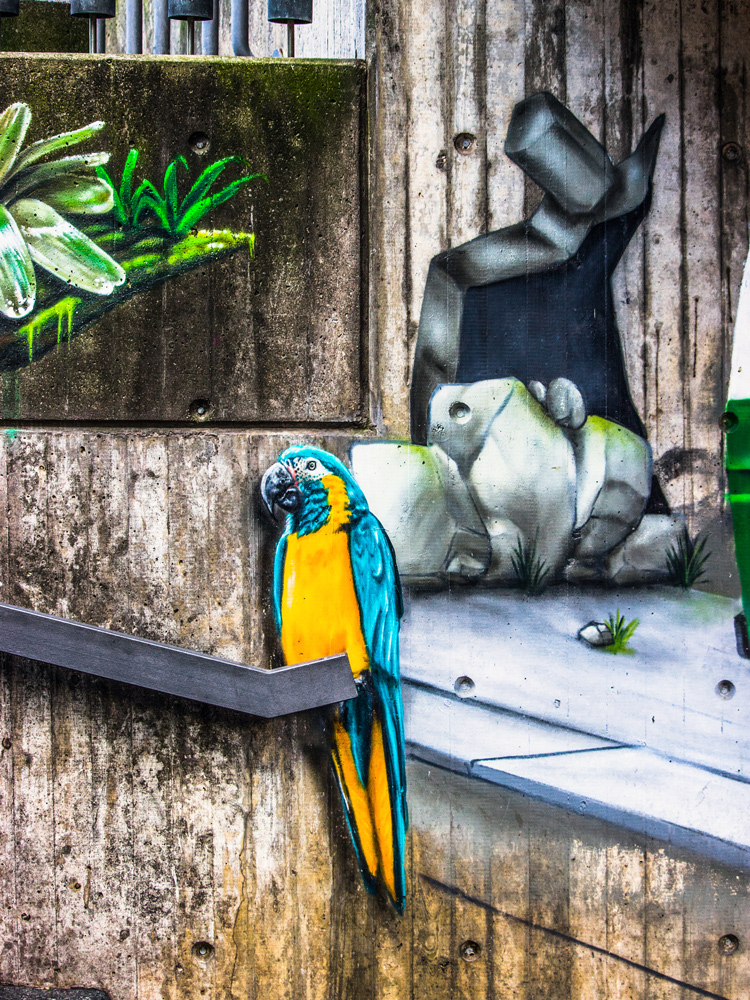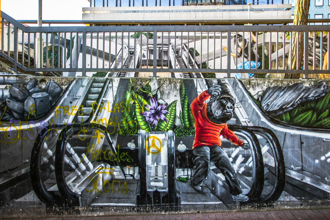 These urban works of art have been created during the streetart event URBAN JUNGLE in 2016. They are located on Andreas-Hermes-Platz and on the underpass below the ?erliner Allee towards Raschplatz. The majority of the works are located on Andreas-Hermes-Platz, but another part is located below the Berliner Allee also partly to Raschplatz towards the main train station. You can find it at the GPS coordinates 52°22’46.3″N, 9°44’39.1″E.