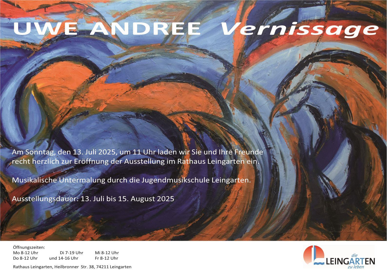 From 13th July till 15th August 2025 art interested people could admire the exhibition „Design, Art, Painting“ with artworks of UWE ANDREE in the MUSEUM ALTES RATHAUS. The exhibitions at this art space are organized and curated as part of the project KUNSTMARKT LEINGARTEN by the HEIMATVEREIN LEINGARTEN, which is the local history society.