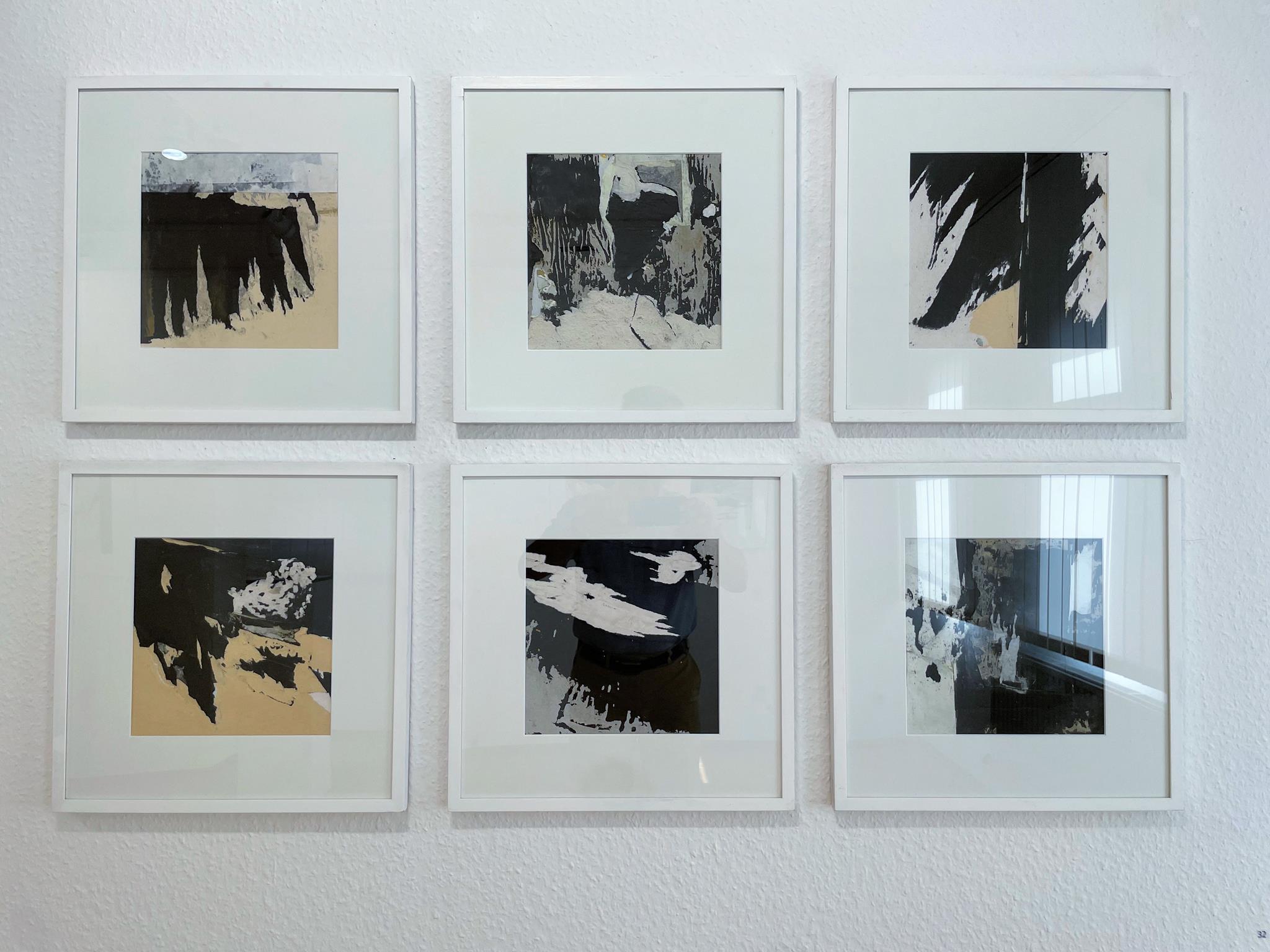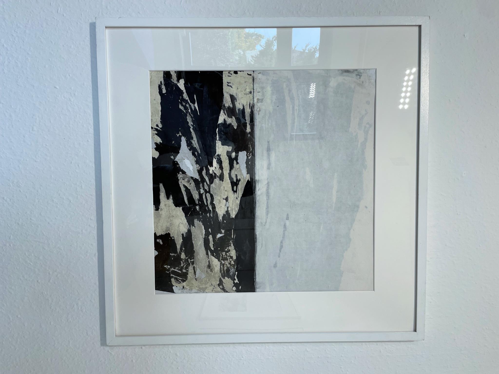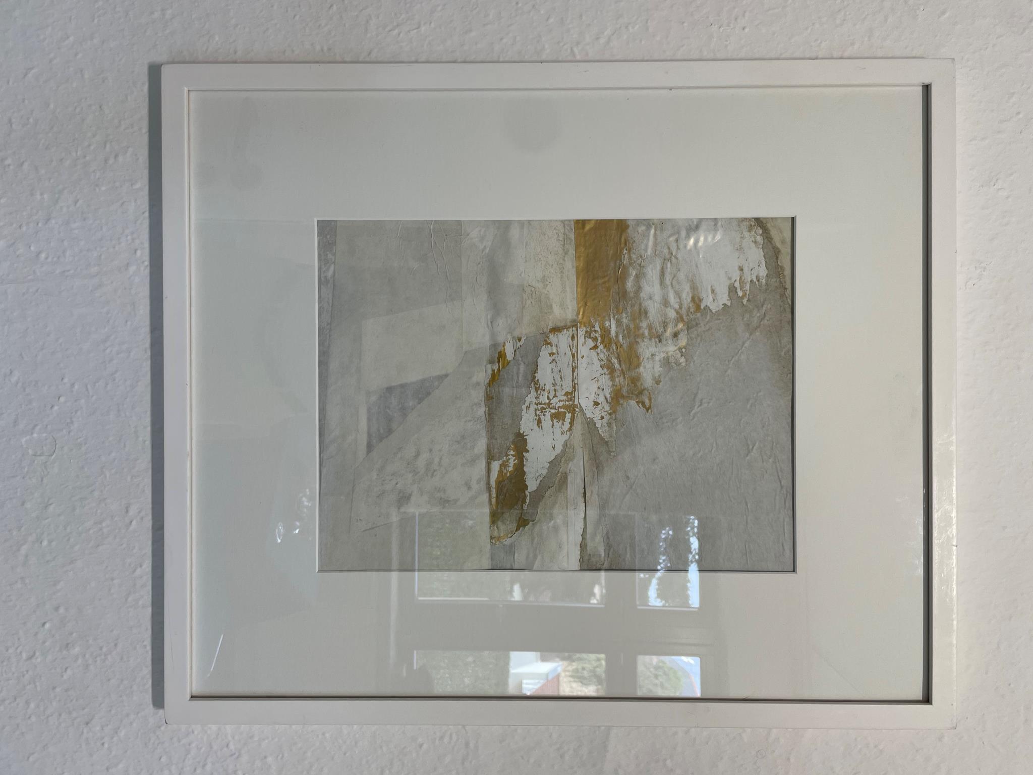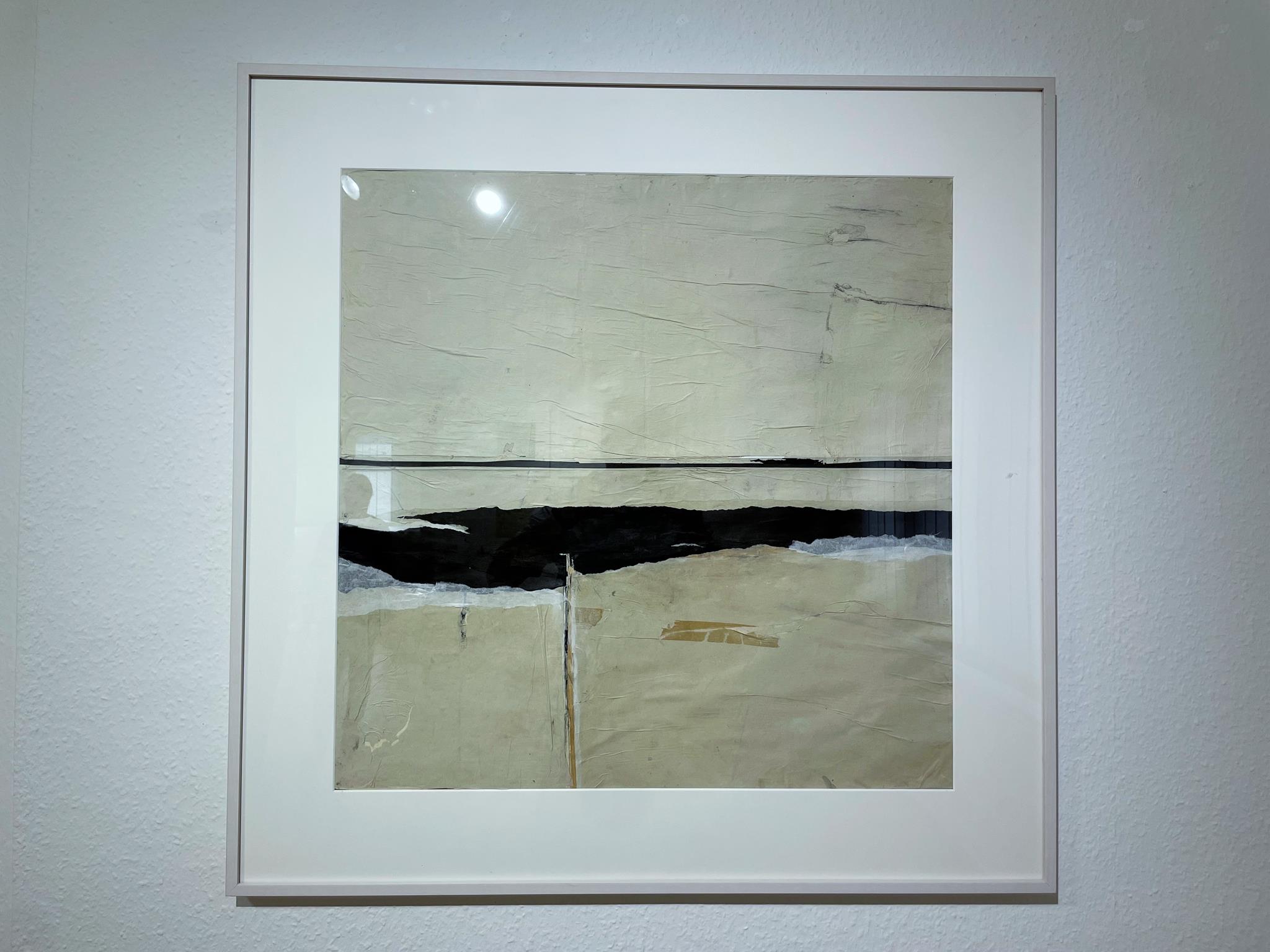 REINGARD GLASS, born in Herford in 1949, is an artist member of the Künstlerbund Baden-Württemberg and the Hohenloher Kunstverein. She studied at the State Academy of Fine Arts in Stuttgart from 1974 to 1979. Reingard Glass works with the technique of collage and decollage. Paper is her material. Surfaces and forms are layered, superimposed, torn and cut. Sometimes linear and colored accents complement the picture. Compositions are created in a reduced, exciting formal language. Behind this formal design of covering and uncovering, arranging and placing in relation, there is always a process of reflection right from the start. – Heimatverein Leingarten