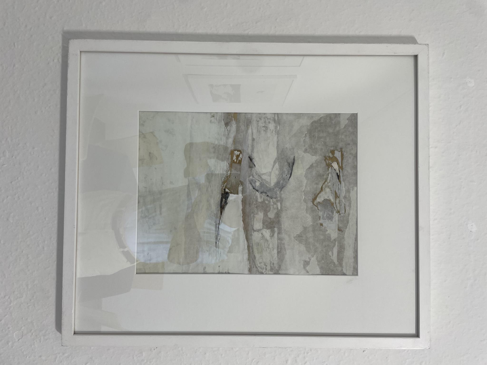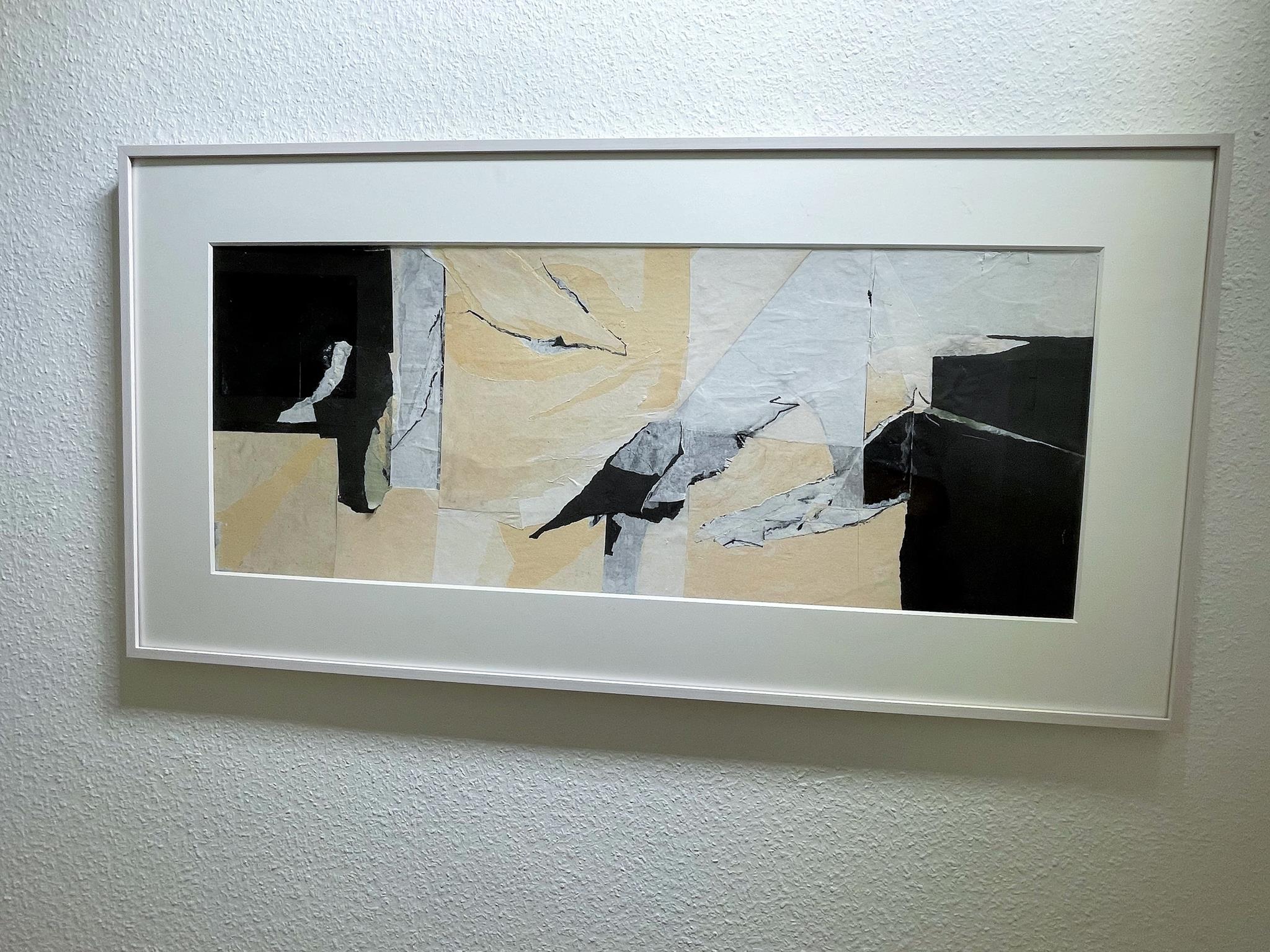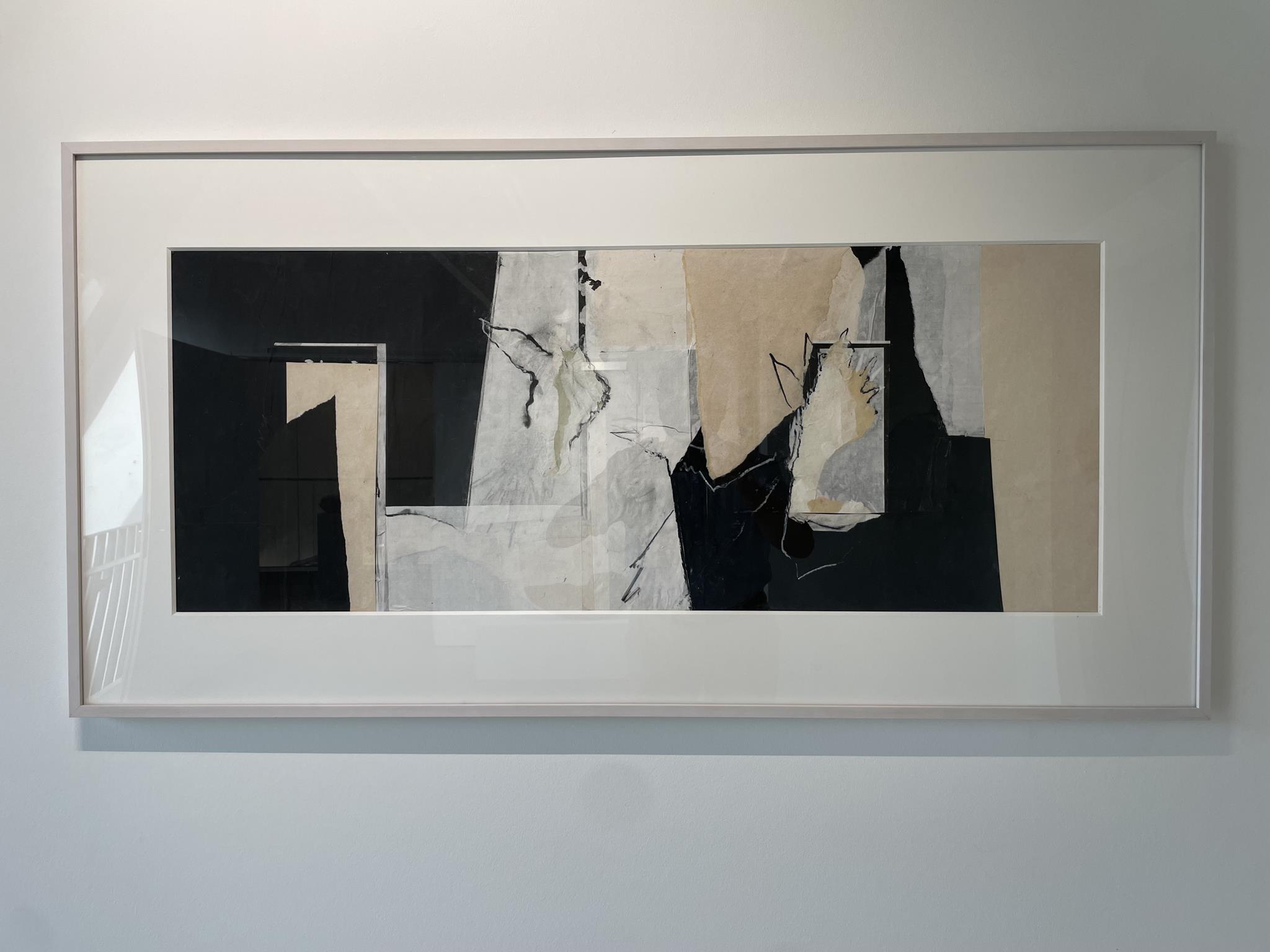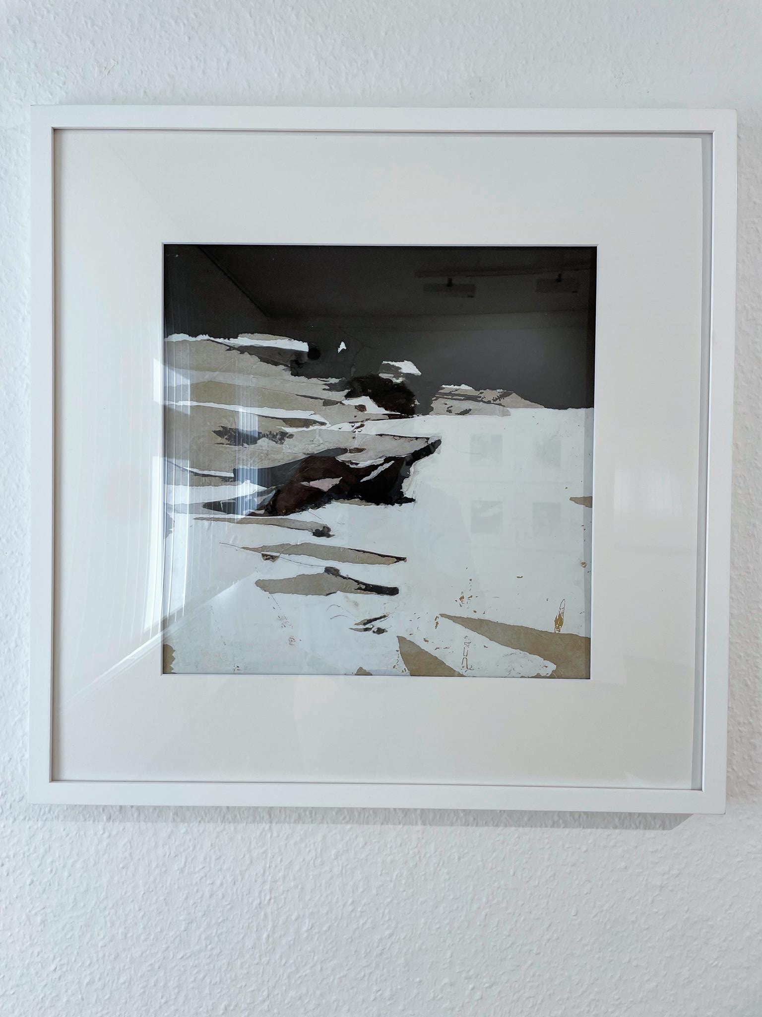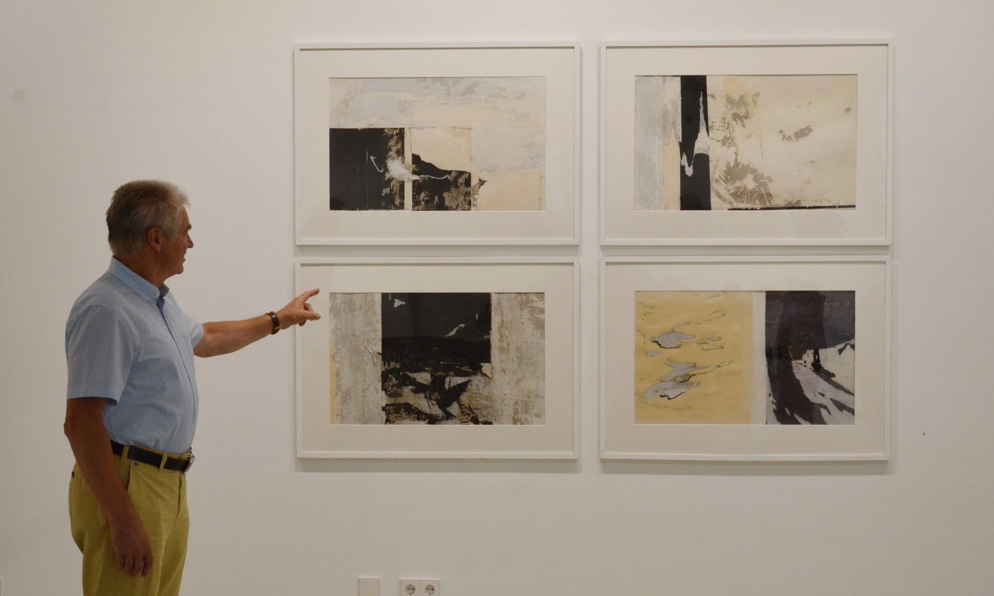 REINGARD GLASS, born in Herford in 1949, is an artist member of the Künstlerbund Baden-Württemberg and the Hohenloher Kunstverein. She studied at the State Academy of Fine Arts in Stuttgart from 1974 to 1979. Reingard Glass works with the technique of collage and decollage. Paper is her material. Surfaces and forms are layered, superimposed, torn and cut. Sometimes linear and colored accents complement the picture. Compositions are created in a reduced, exciting formal language. Behind this formal design of covering and uncovering, arranging and placing in relation, there is always a process of reflection right from the start. – Heimatverein Leingarten