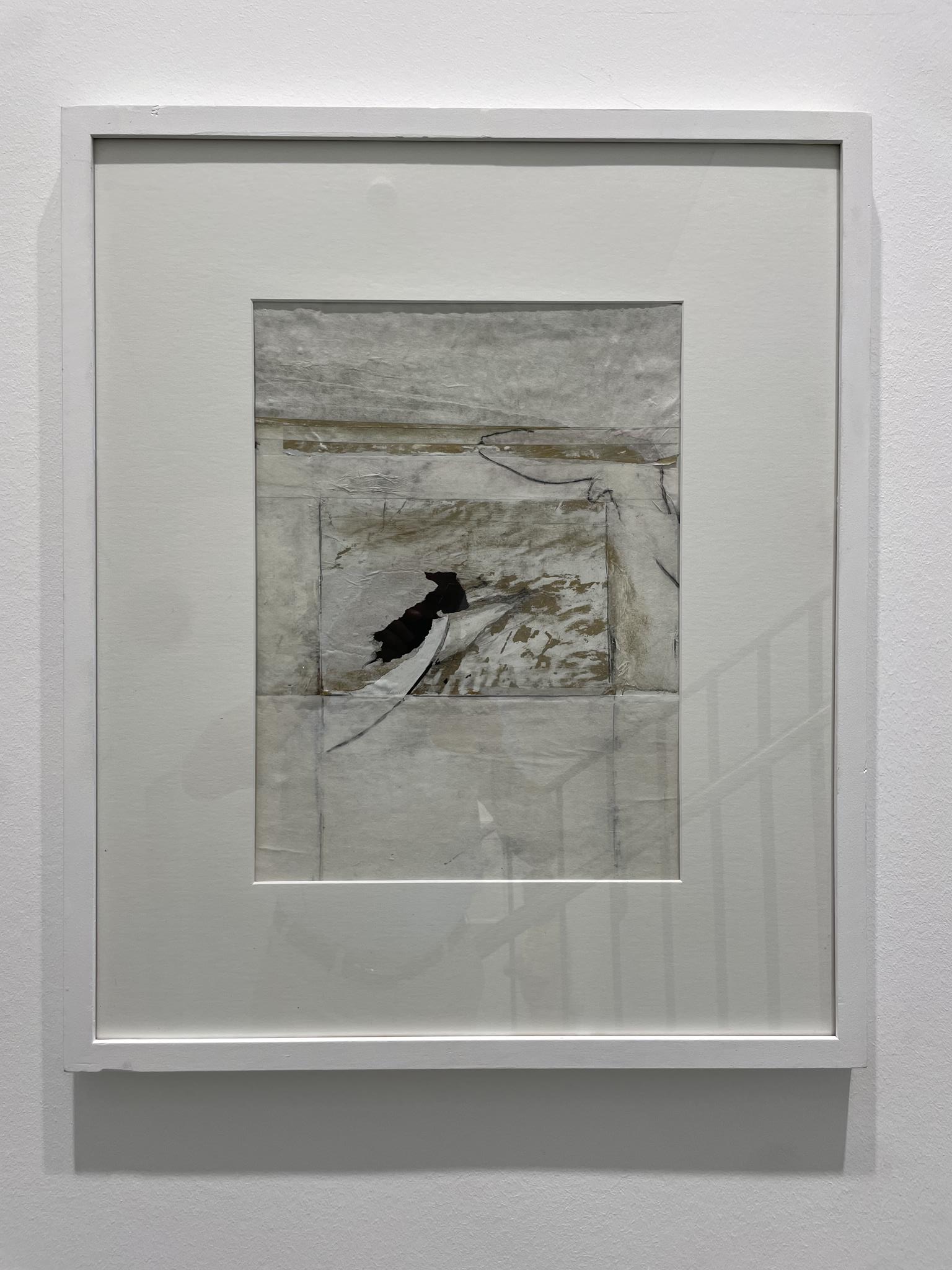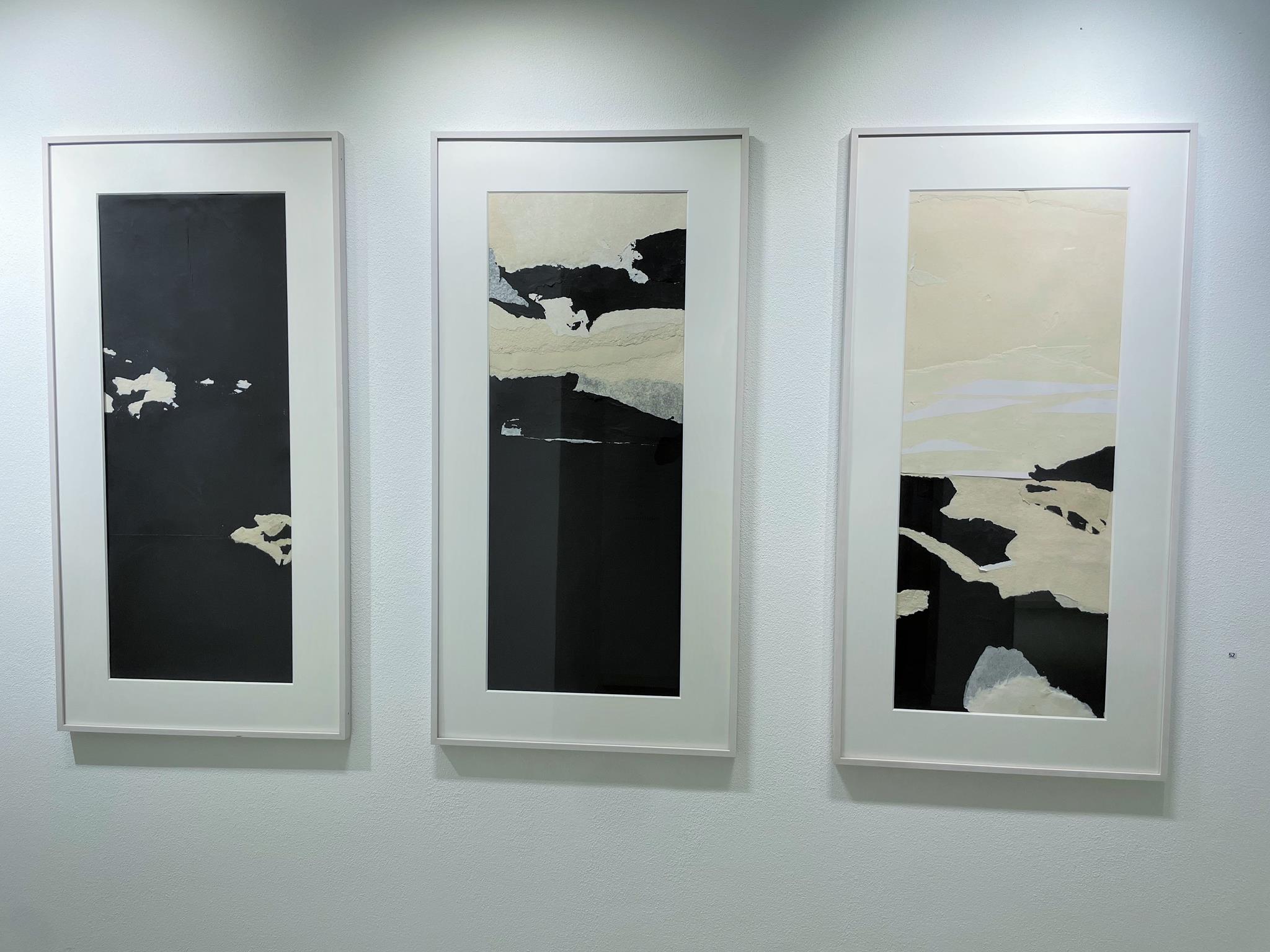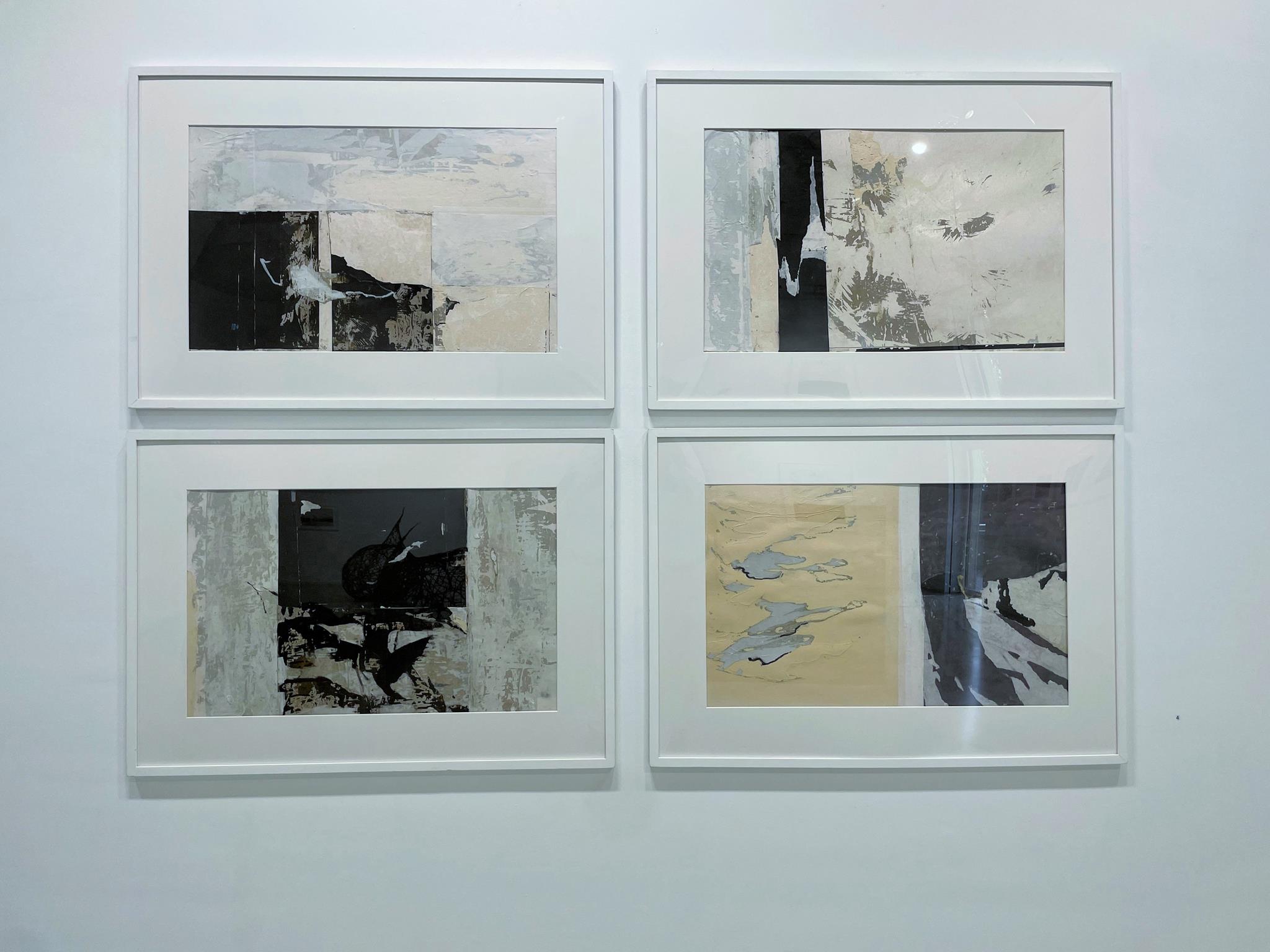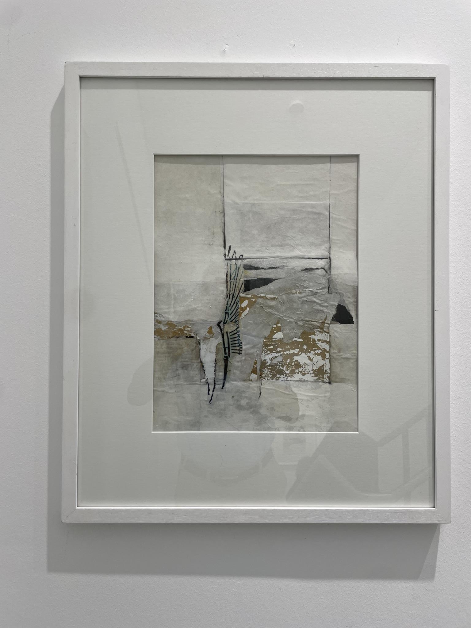 REINGARD GLASS, born in Herford in 1949, is an artist member of the Künstlerbund Baden-Württemberg and the Hohenloher Kunstverein. She studied at the State Academy of Fine Arts in Stuttgart from 1974 to 1979. Reingard Glass works with the technique of collage and decollage. Paper is her material. Surfaces and forms are layered, superimposed, torn and cut. Sometimes linear and colored accents complement the picture. Compositions are created in a reduced, exciting formal language. Behind this formal design of covering and uncovering, arranging and placing in relation, there is always a process of reflection right from the start. – Heimatverein Leingarten