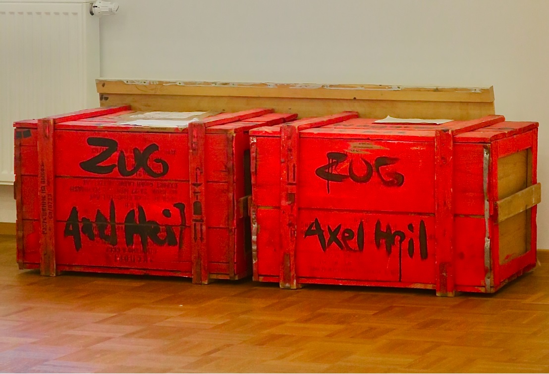 Curator HELMUT ALBERT MÜLLER about the exhibition: AXEL HEIL was born in Karlsruhe in 1965 and is a versatile artist, profound connoisseur of African sculpture, sought-after author, curator, designer, and producer of countless catalogs, posters, and invitations, university professor, artist-researcher, founder and editor of „fluid editions,“ a production platform for diverse artistic projects. According to all the curators, gallery owners, and museum directors with whom he has worked, he cannot be reduced to a single definition. The artist and author Wolf Pehlke, ten years his senior, born in Sinzheim near Baden-Baden and deceased in Karlsbad in 2013, nevertheless rightly compared him in the Karlsruhe Art Academy’s catalog „Ten Years Later“ to the coyote revered by the Navajo Indians, who distorts people’s most vain efforts and teaches them lessons in humility.