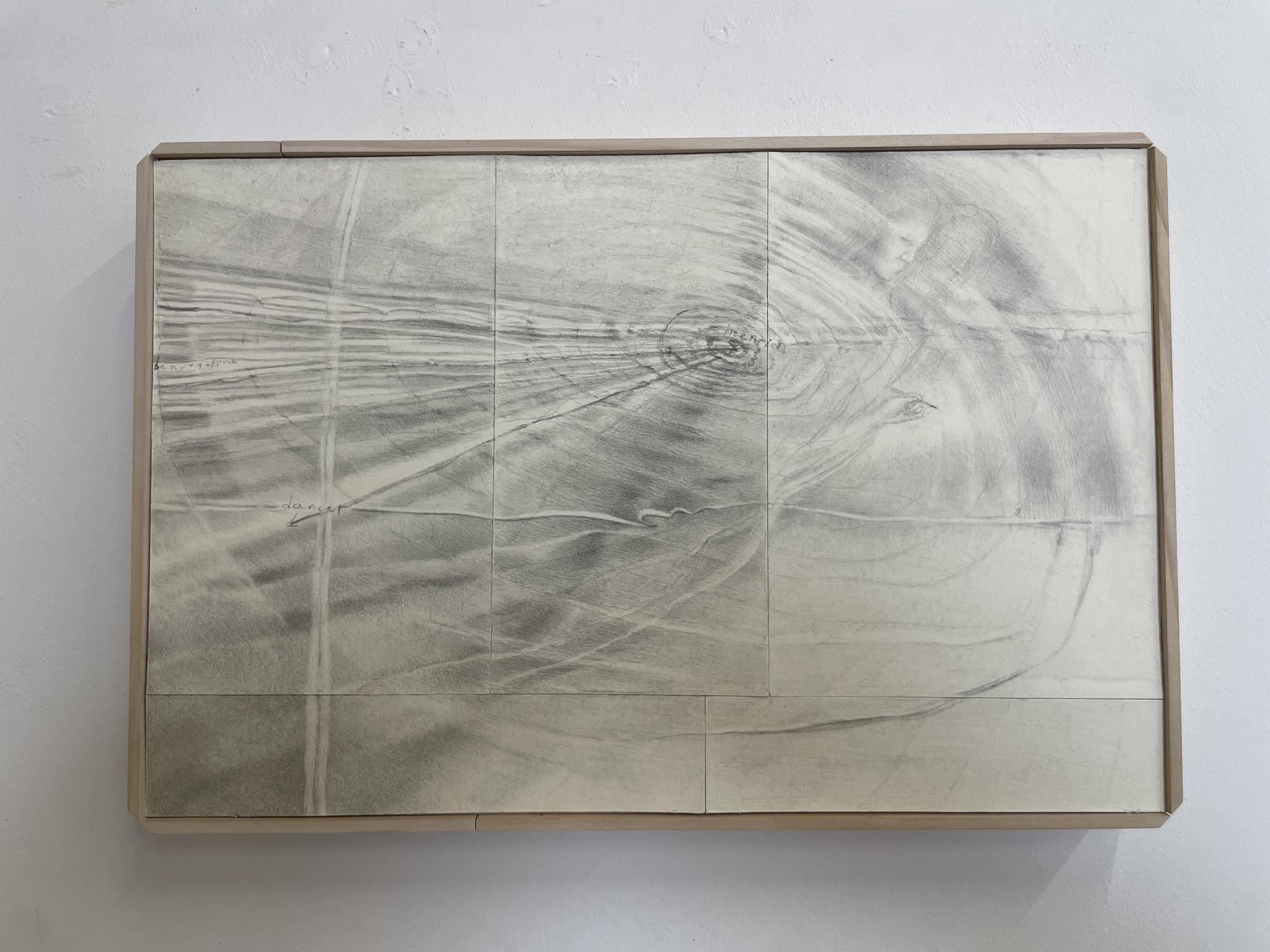 Since her childhood, Hojeong has allowed herself to be touched by grasses, plants, forests and the world around her, as well as by animals and people. To be touched and to touch herself is a form of communication for her, a communication that needs no words. This also applies to her drawings, whose pictorial composition is already part of the communicative process she strives for. For her, the multitude of lines layered on top of each other in her drawings is designed on the one hand for a good result and the feeling of ’now it’s good‘ – bad drawings are immediately torn up and end up in the wastepaper basket – and on the other hand for the viewer, whom she wants to invite to a conversation that can continue even in her absence.