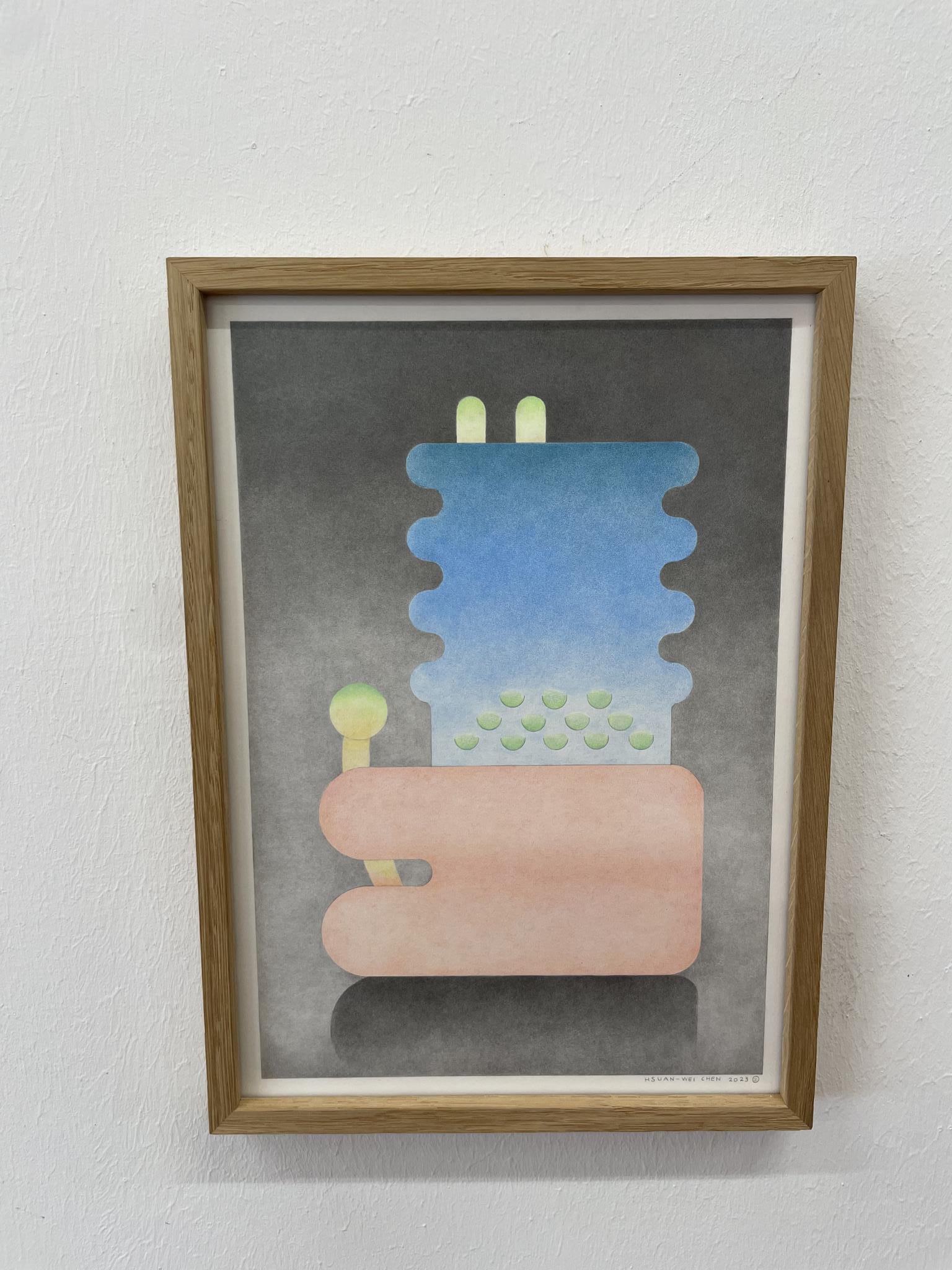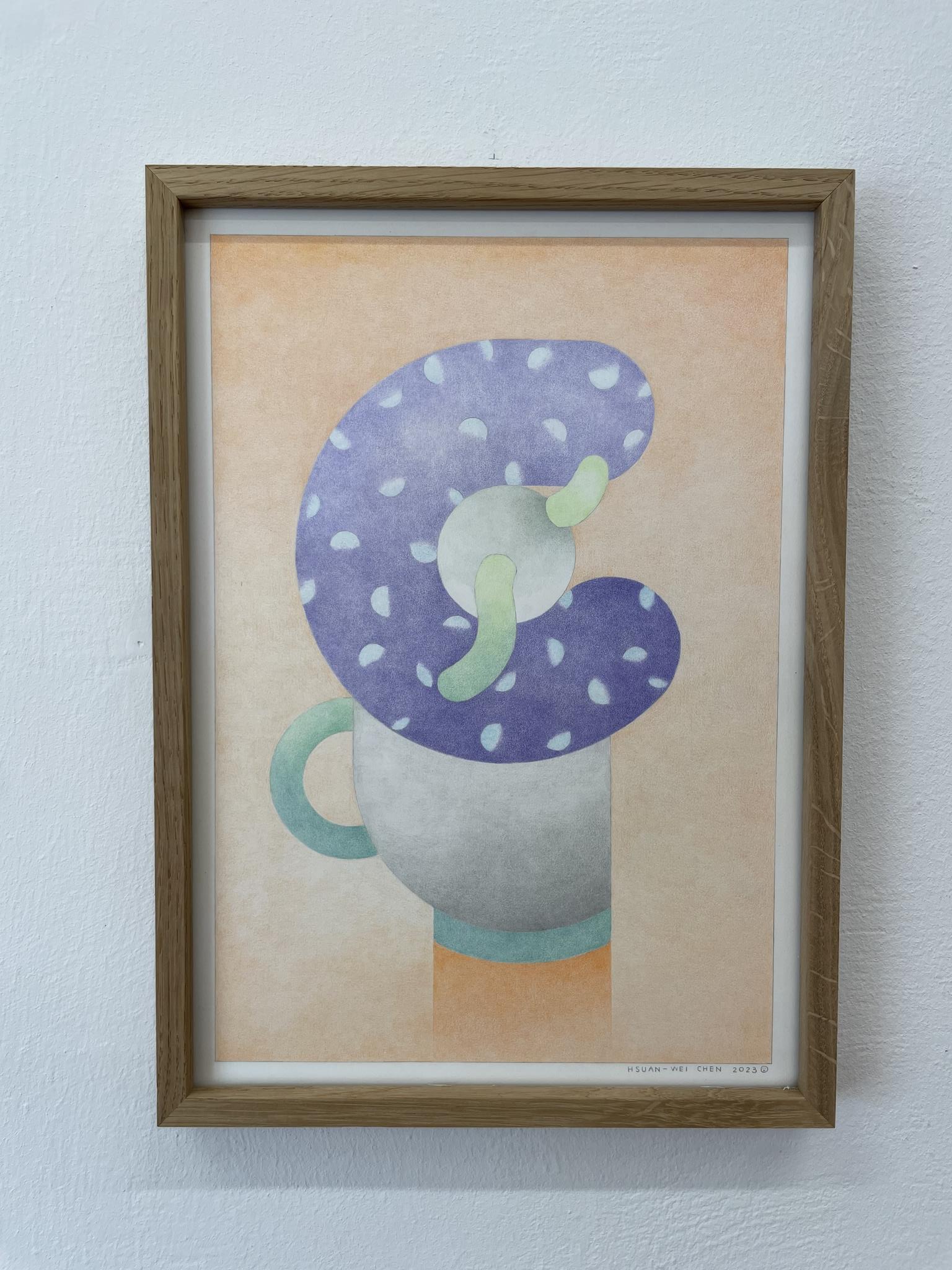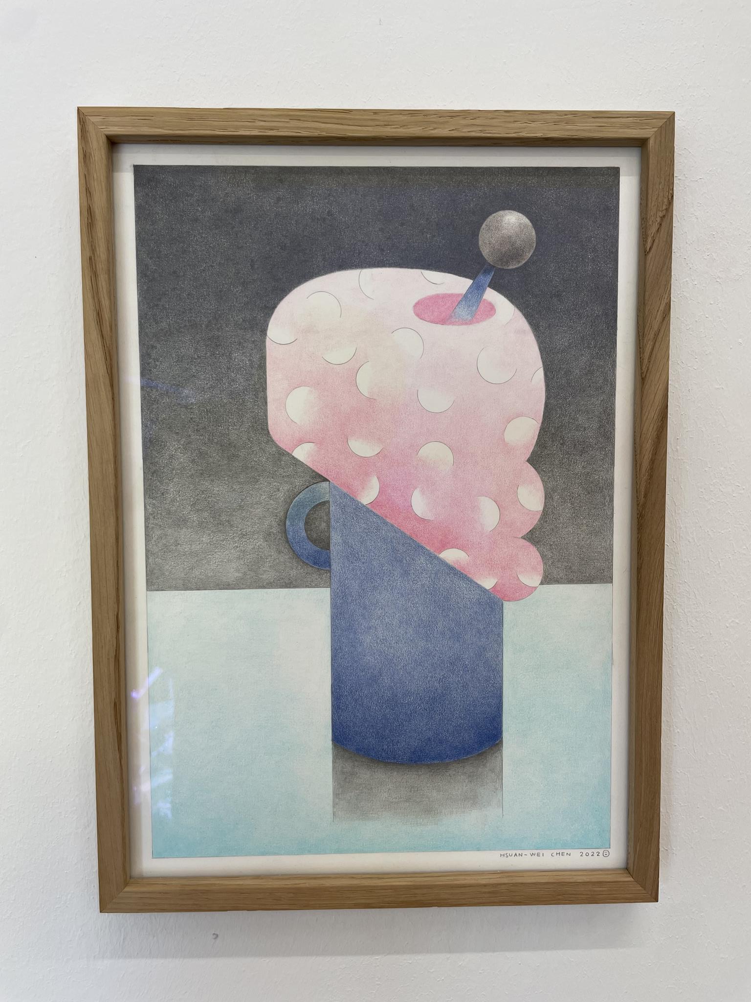 Curator HELMUT ALBERT MÜLLER about the exhibition: Born in Taipei, Taiwan in 1986, Hsuan-wei Chen, a graduate of the master’s program for jewelry, silversmithing and related productions at Birmingham City University and master student of Sophie von Hellermann at the State Academy of Fine Arts in Karlsruhe, who is called JaJa by her friends, and Hojeong Lee, a master student of Karlsruhe rector Marcel van Eden who was born ten years later in South Korea, agreed on the title „Eat, Drink and Draw“ following my invitation to the Nordheimer Scheune and wrote the following to me on 30. September 2023: „As we are two draughtswomen, our main concern is to recall the importance of drawing. The daily practice of eating, drinking and sleeping is strongly connected to both our works. This can also be seen in JaJa’s vases and Hojeong’s drawings, which are characterized by the influences of everyday conversations. The title can be in either German or English“.