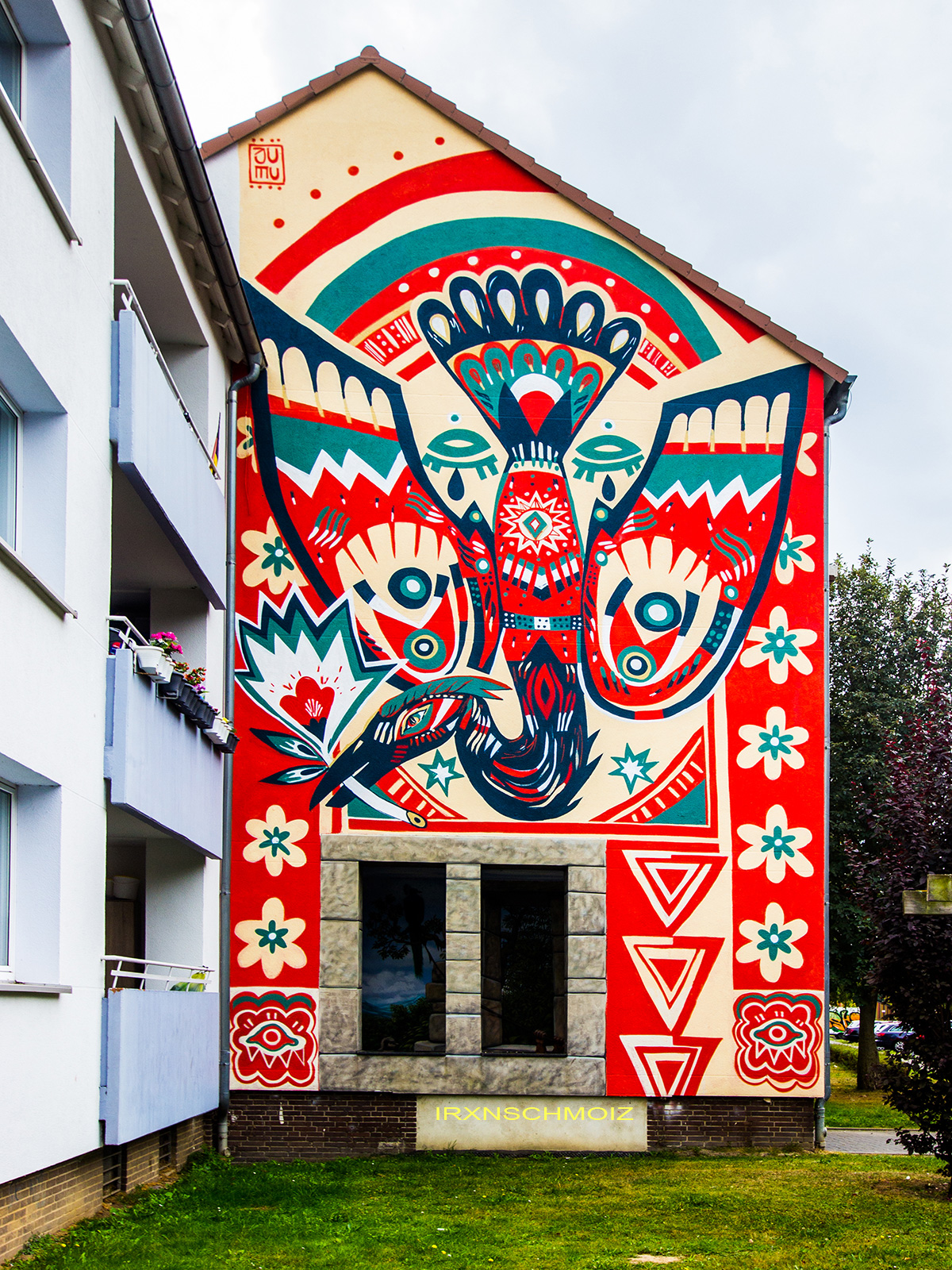 GERMANY: Streetart Hildesheim – Stadtfeld – Triftäcker 40 – STADTFELD ZEIGT GESICHT – Mural Project – JU MU MONSTER