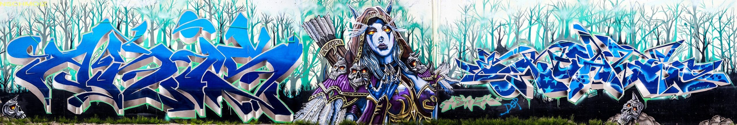 This great collaboration concept wall was made by members of the crews PMZ and WKM. The artworks from left to right were made by BERS, NOE aka SLIN, ANIS, ASHER and EXTASE
