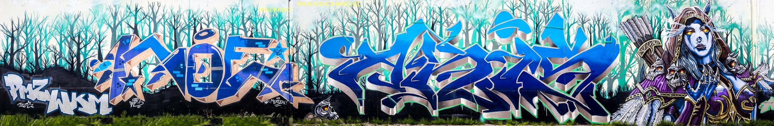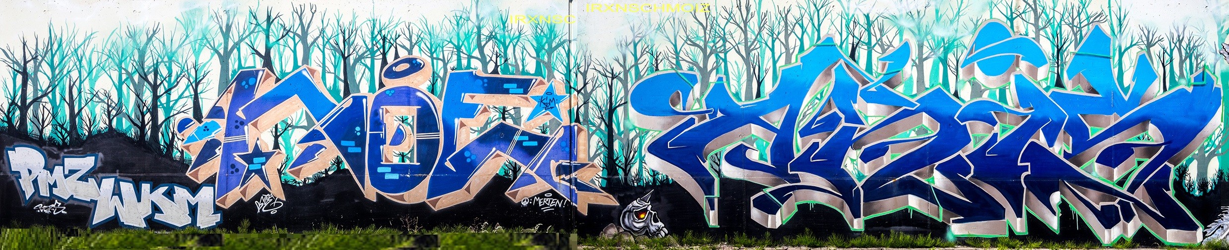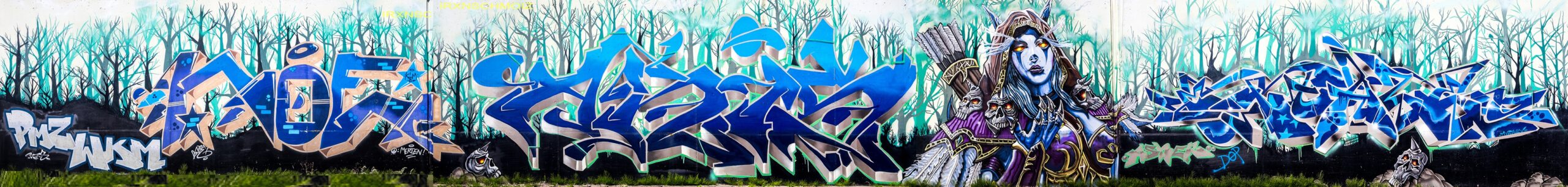 This great collaboration concept wall was made by members of the crews PMZ and WKM. The artworks from left to right were made by BERS, NOE aka SLIN, ANIS, ASHER and EXTASE