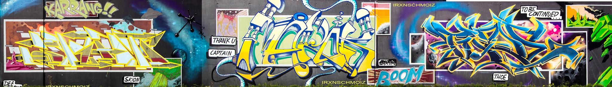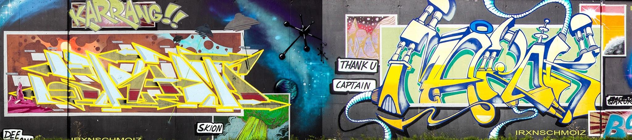 The graffiti on the left is from DEEONE, and the graffiti on the right was made by MAROK