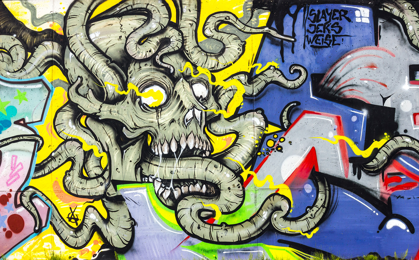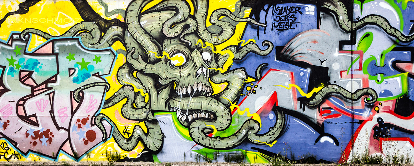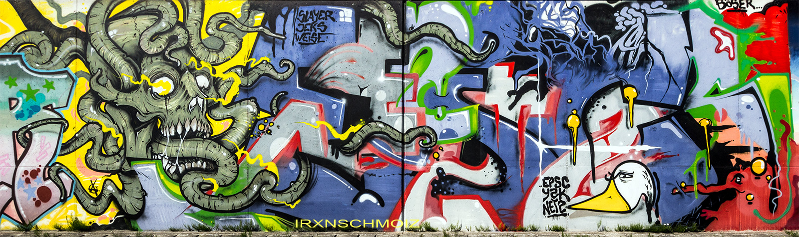 The graffiti on the left is from WATER, and the graffiti wall part on the right was made together by JEKS, SLAYER and WEISE