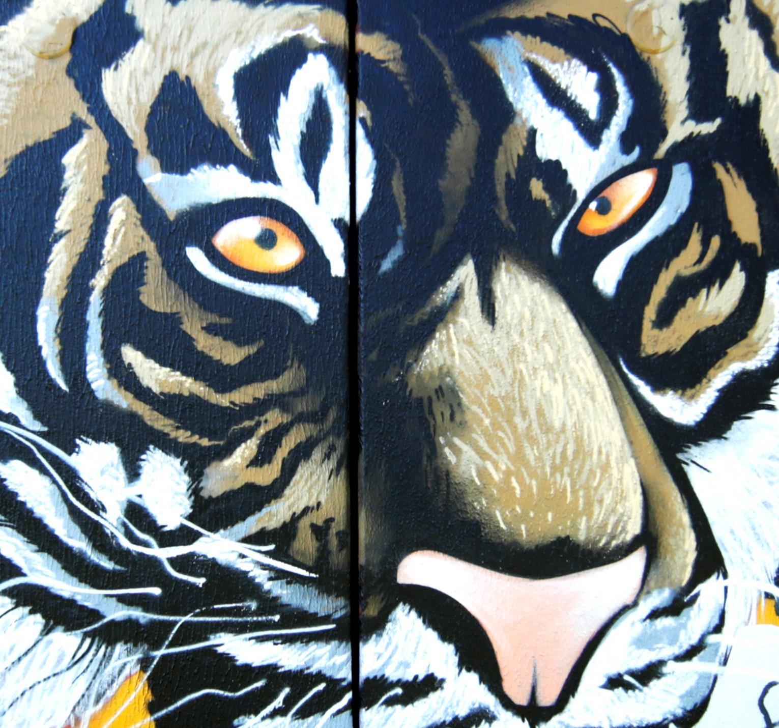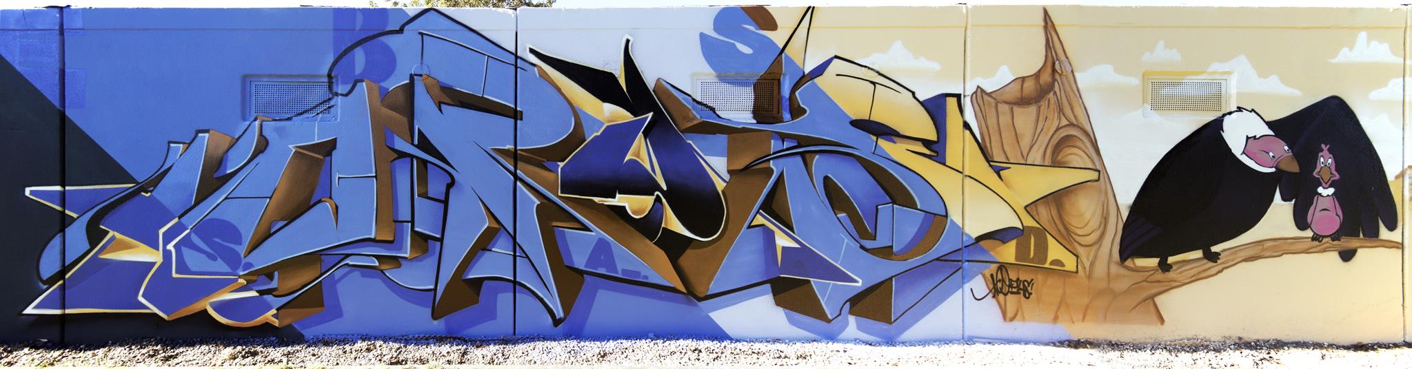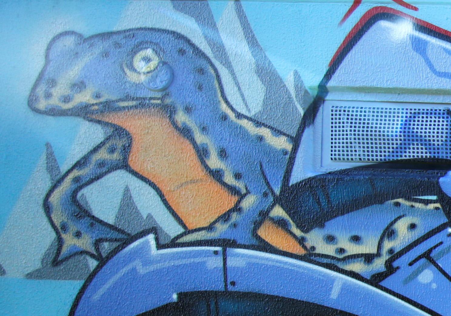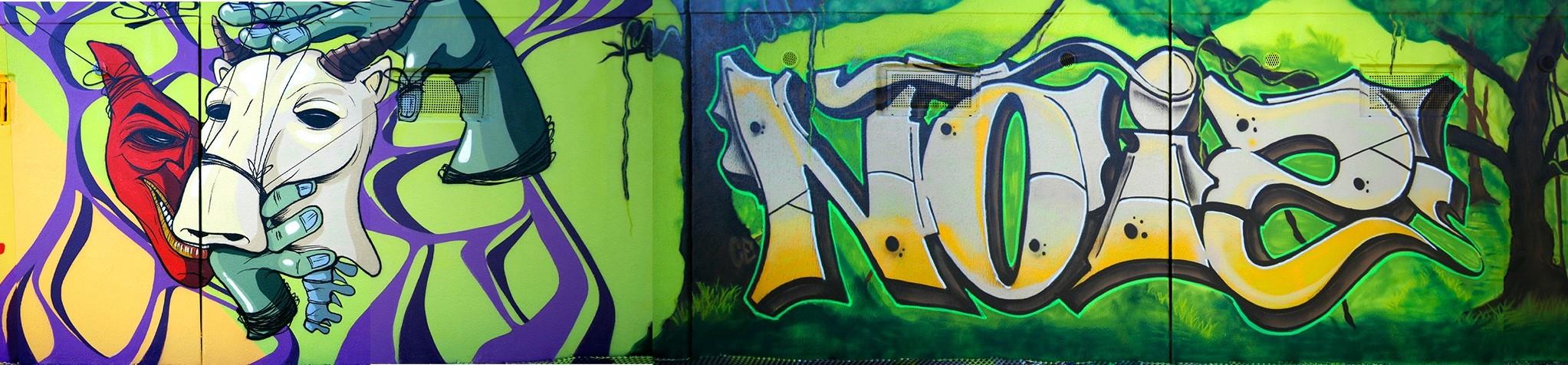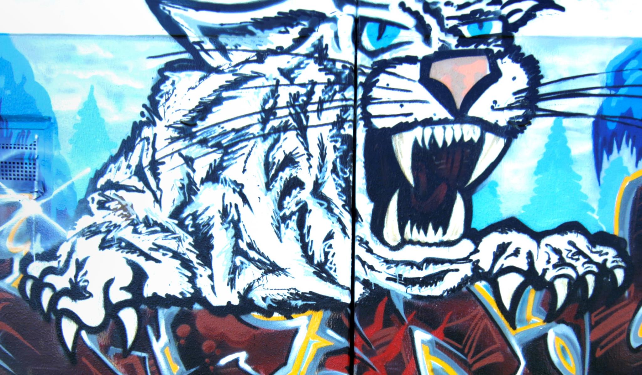 After the great first edition of the WOLFSBURG GRAFFITI JAM in 2020, this fantastic happening went into its second edition in 2023. The 150 meters long garage walls at Lindenstraße 31 in the Vorsfelde district were redesigned by 32 artists from September 1st to 3rd. This time the motto was „Save the animals“ and on a total of more than 400 m² fascinating natural landscapes were created in combination with graffiti writing and various animal characters. The event was once again organized by DANIEL EYRICH and the crew PAYURDUES with sponsorship from the paint manufacturers MOLOTOW and CAPAROL and supported by the housing associations VRE and WOB. Check out as well the page for the 1st jam edition in 2020. There are more pages about urban art in Wolfsburg in our archive, also have a look at the Hallenbad Hall at Schachtweg, the Sticker Collection and the page with Graffiti and Streetart around the city.