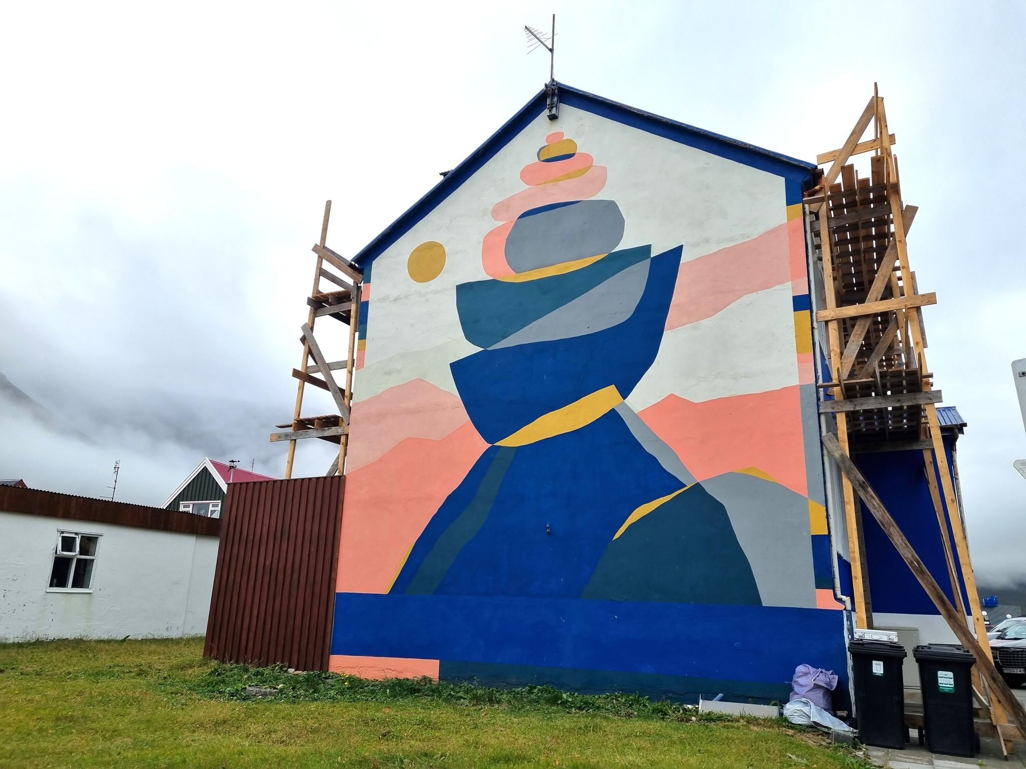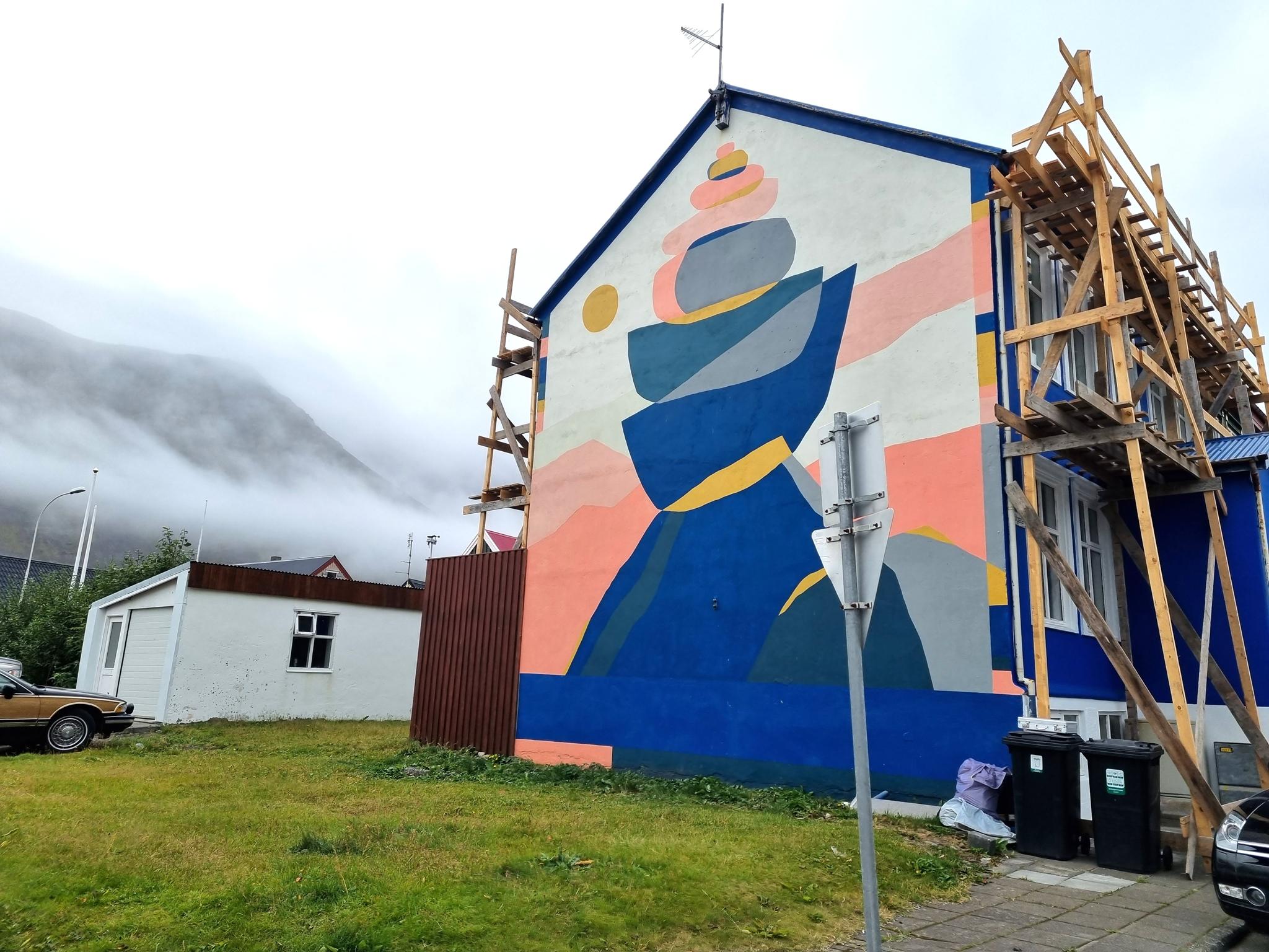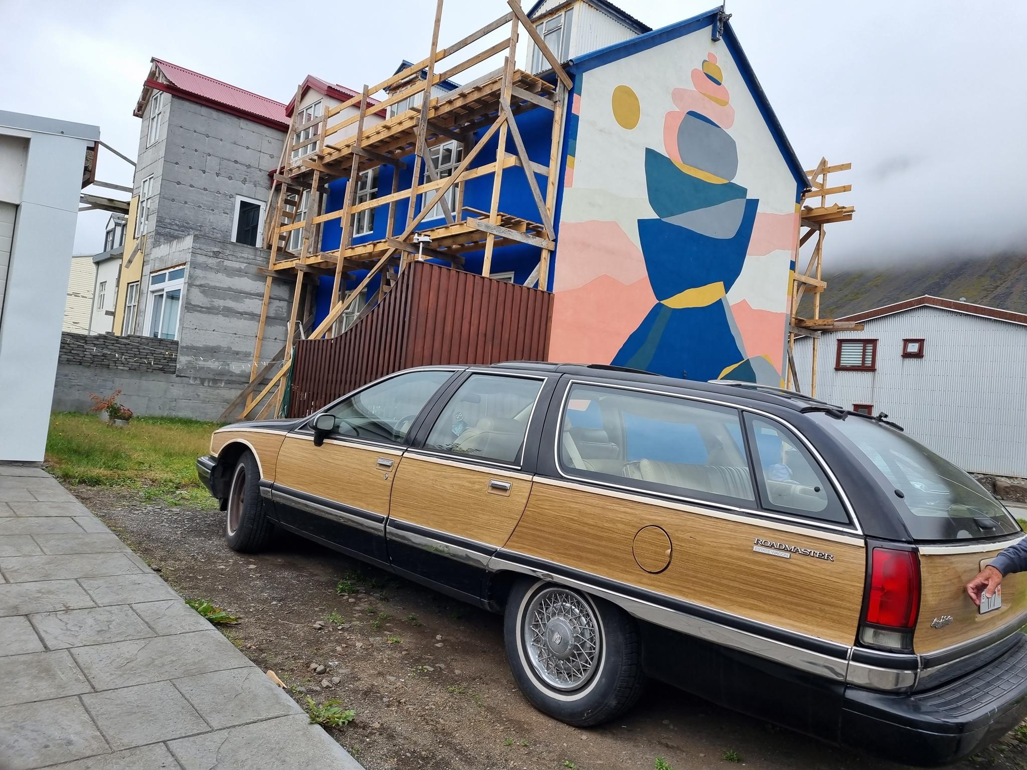 The artist about the mural: „I painted this mural in Iceland in 2019. The man who lived inside this house ran an incredible fish restaurant called Tjöruhúsið. I ate there, it was excellent. I started painting the house and was very cold one morning, he invited me in for a coffee. It was the strongest espresso I’ve ever had and he was chain smoking Marlboro reds with the windows closed. It was excellent – I was warm and awake. He also scored extra points for somehow owning a car like that in the Arctic Circle.“ – KYLE HUGHES-ODGERS
