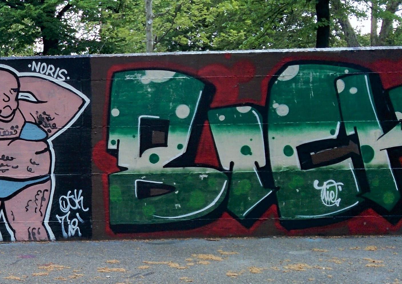 The graffiti on the left is from SCUM and the character in the middle was made by COMIS