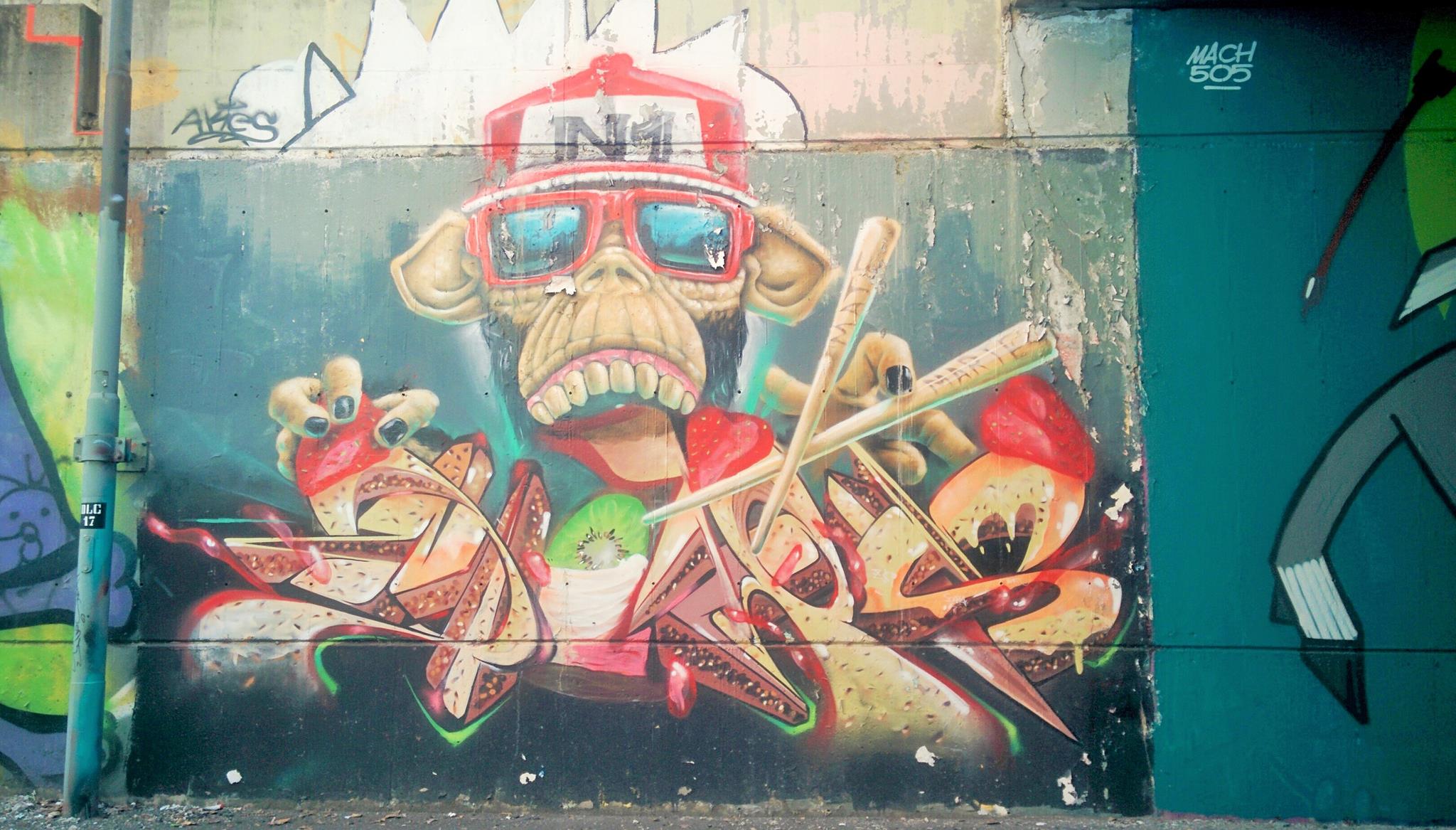 The monkey is from GIOVA LA CREMA and the graffiti was made by ???
