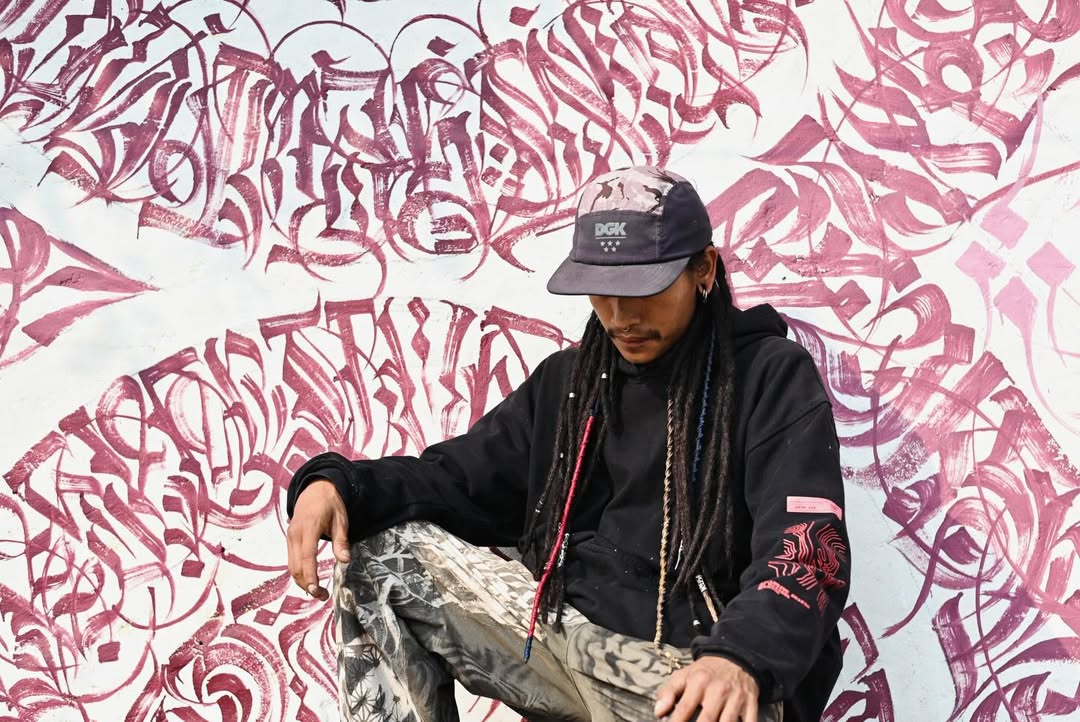Rooted in the old city of Patan, SEAMAN is shaped by the streets and driven by a strong, restless energy. His work is instantly recognizable for its bold hand style, confident strokes, and raw emotion. Each wall becomes a reflection of his lived experience. Without revealing his personal struggles, he channels them into his art, turning challenge into strength and presence into mark. For him, art is not separate from life. It is life, fully felt and expressed.