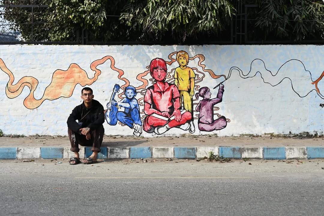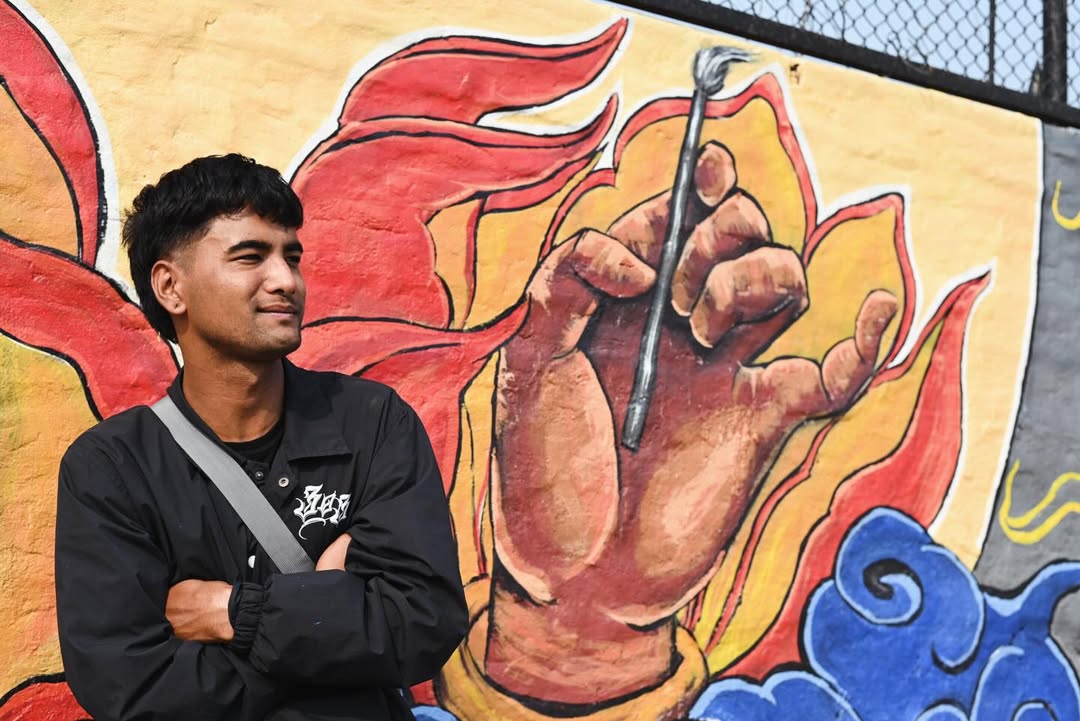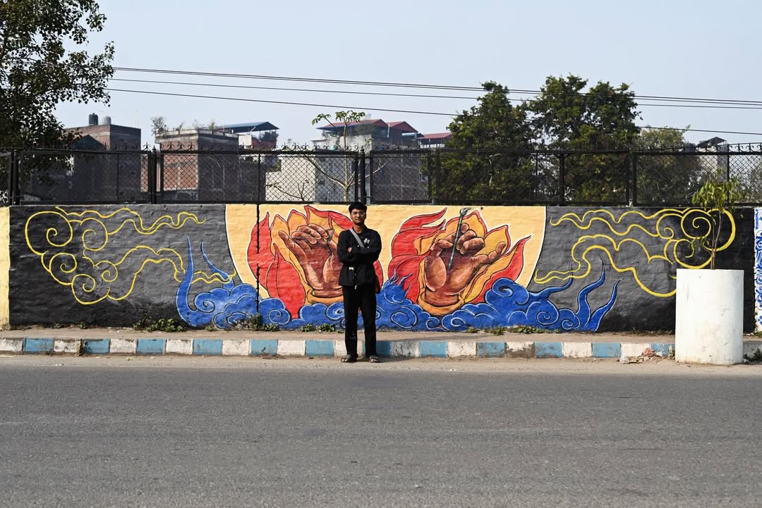 Based in Dhunge Dhara, Kathmandu, ROJAN MAHARJAN is an emerging visual artist and a Fine Arts graduate from Lalit Kala Campus. His practice is rooted in drawing and design, and is steadily expanding into murals and public art. With a quiet dedication to learning and growth, he approaches each wall as both a challenge and an opportunity to evolve.