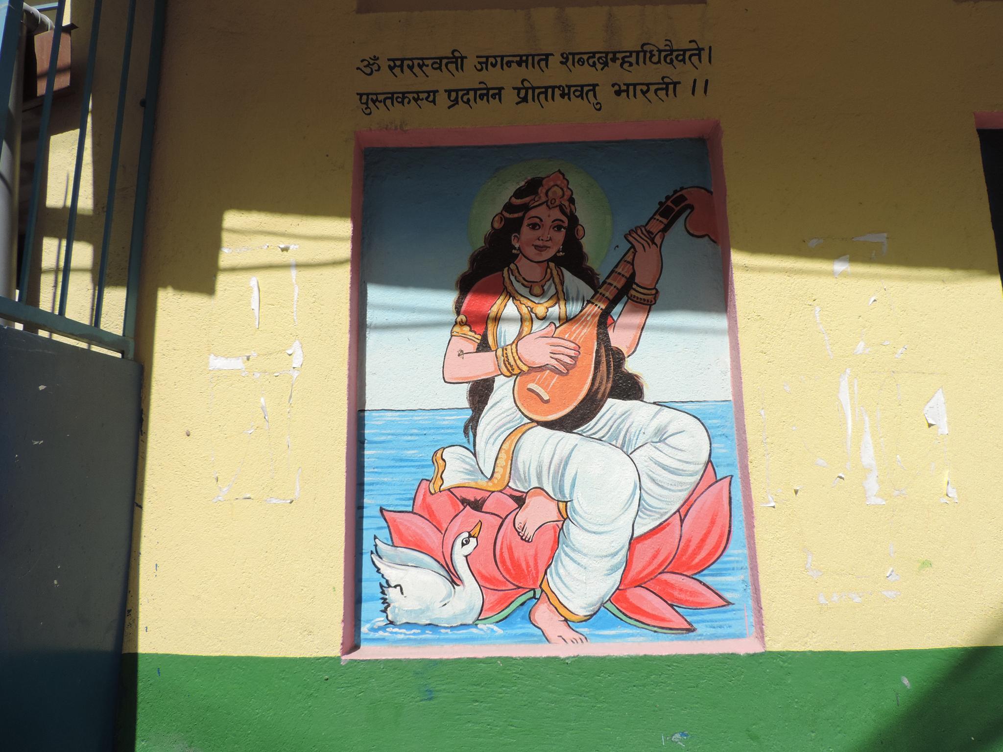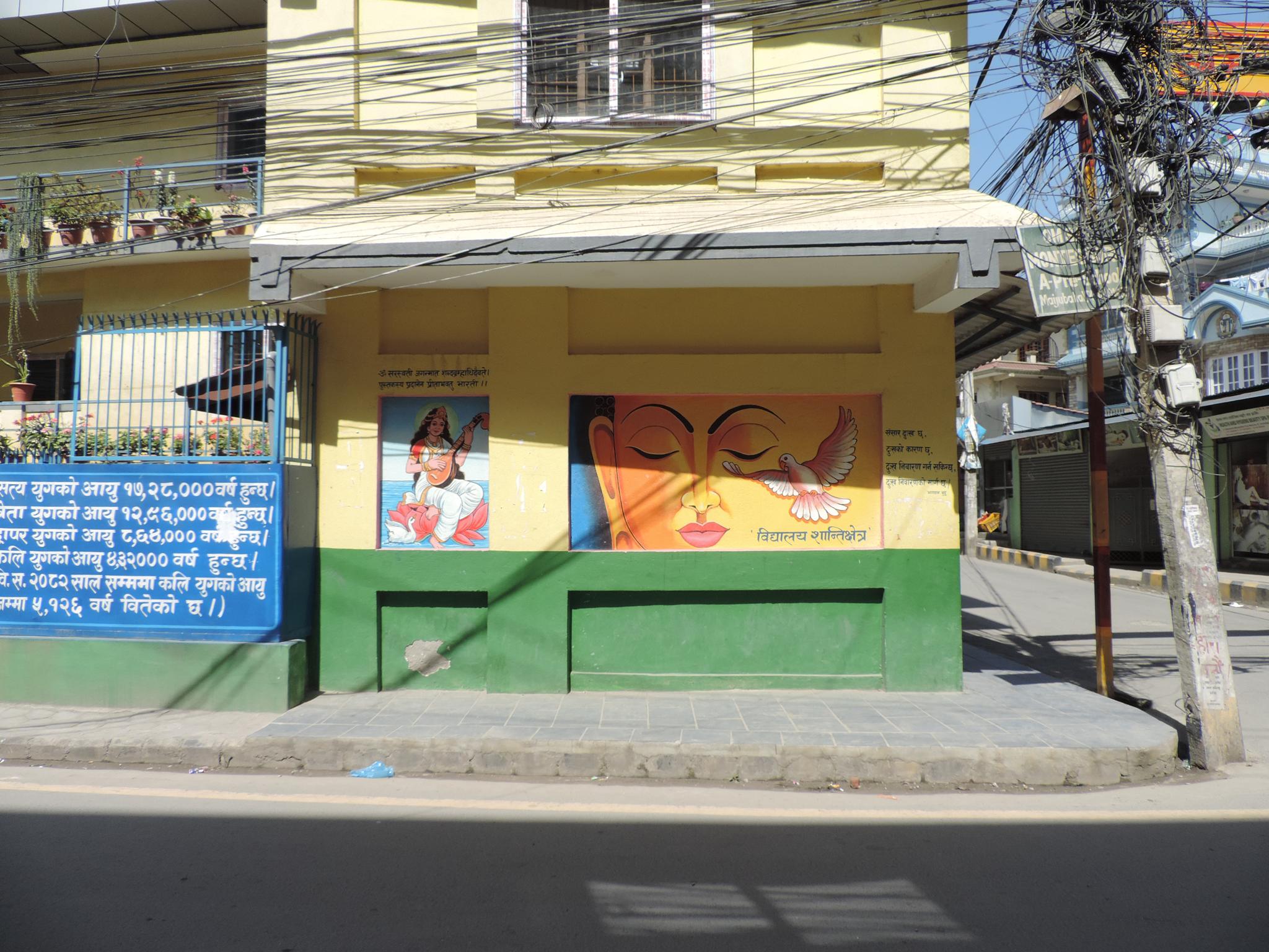 Chabahil is a historic neighborhood in the eastern part of Kathmandu and is considered one of the oldest inhabited areas in the Valley. The most important landmark is the Chabahil Stupa, also known as the Charumati Stupa. According to legend, it was built in the 3rd century BC by a daughter of the Indian emperor Ashoka, making it one of the oldest stupas in Nepal. The surrounding area includes small monasteries, temples, and local markets. Compared to central Kathmandu, Chabahil is less touristy and provides a more authentic atmosphere. Of course also here you can find urban artworks. Especially on schools or kindergardens are often colorful wall paintings along the facades.