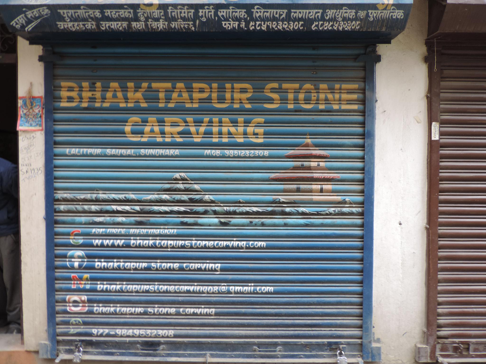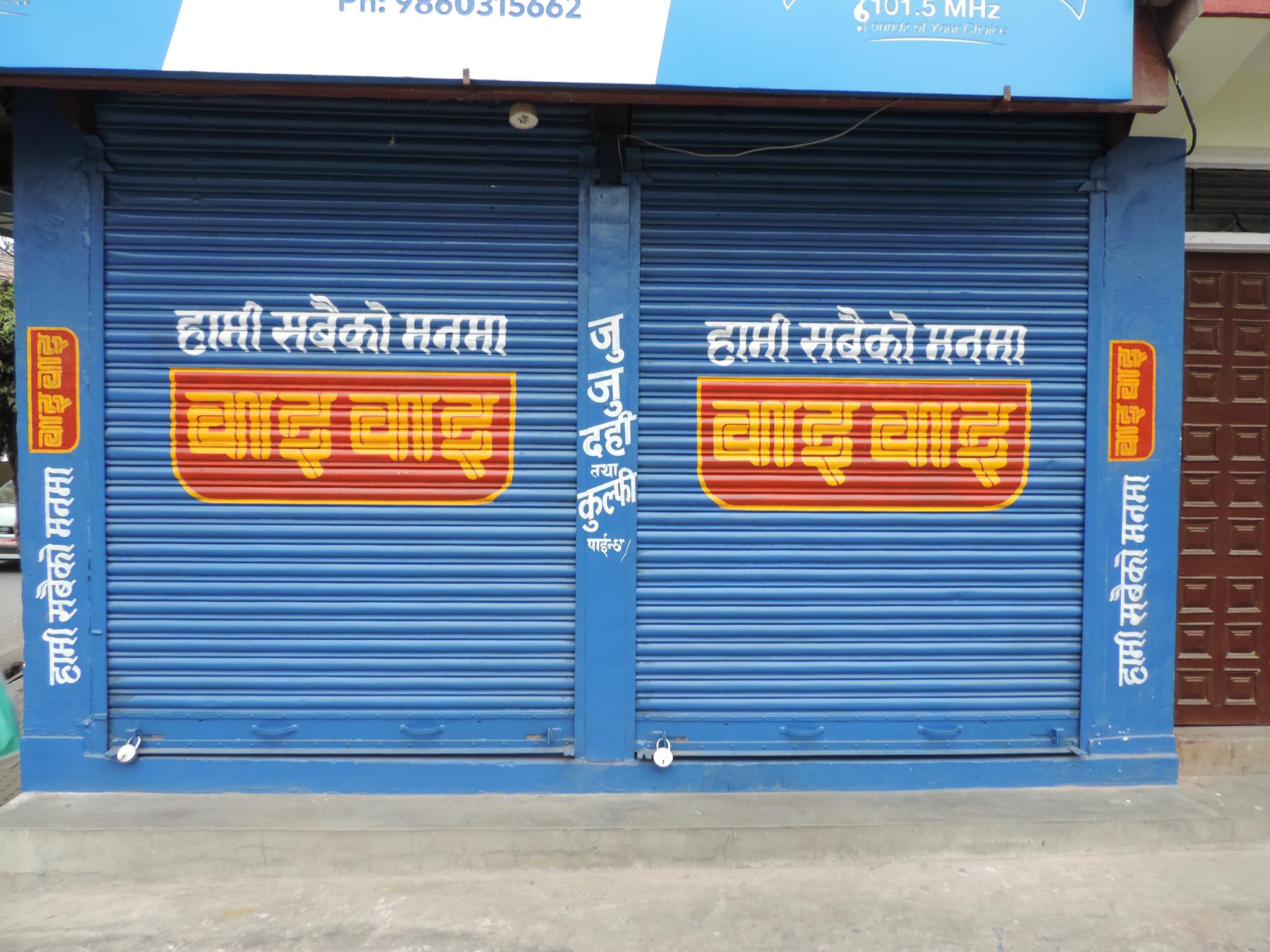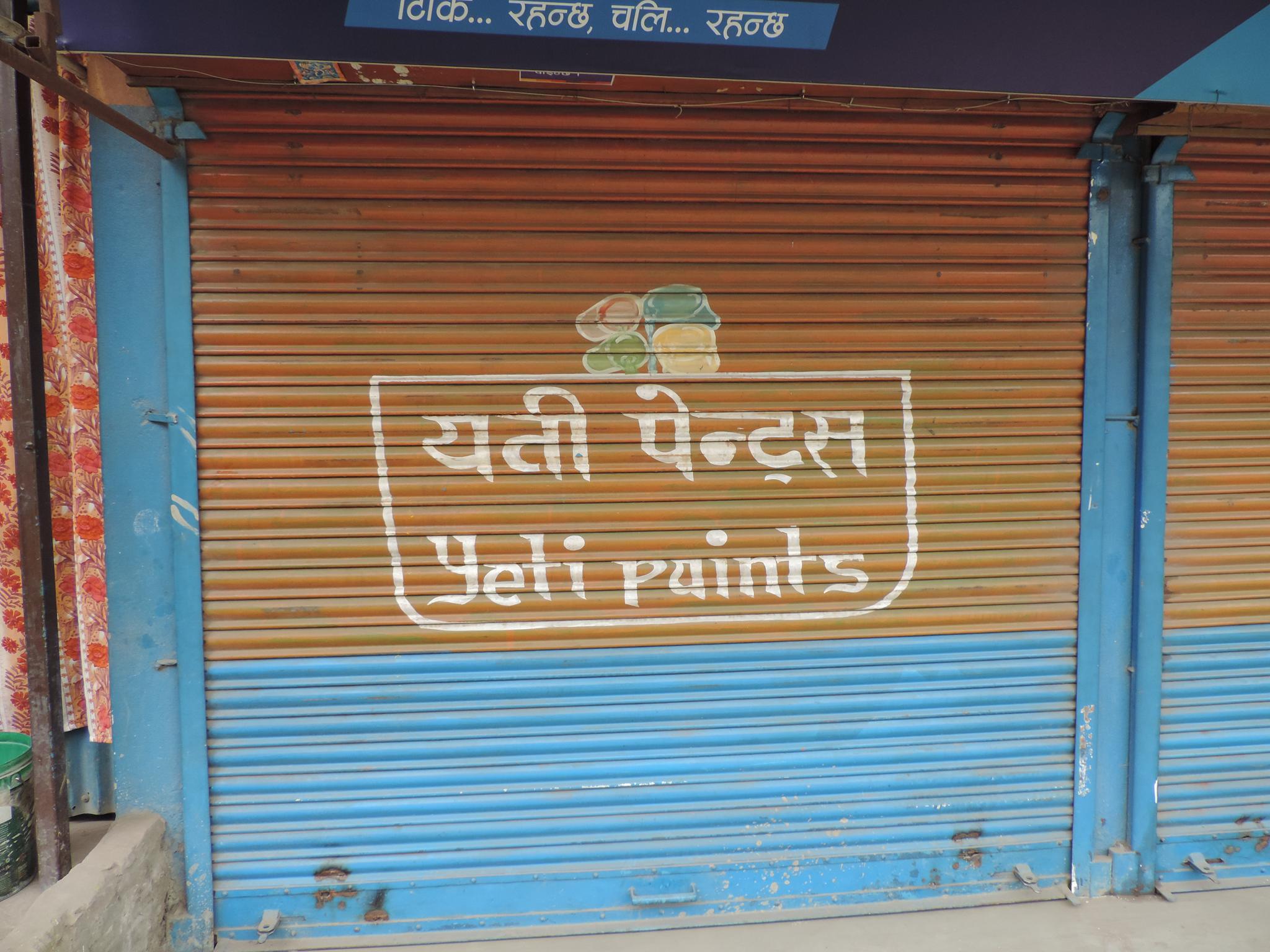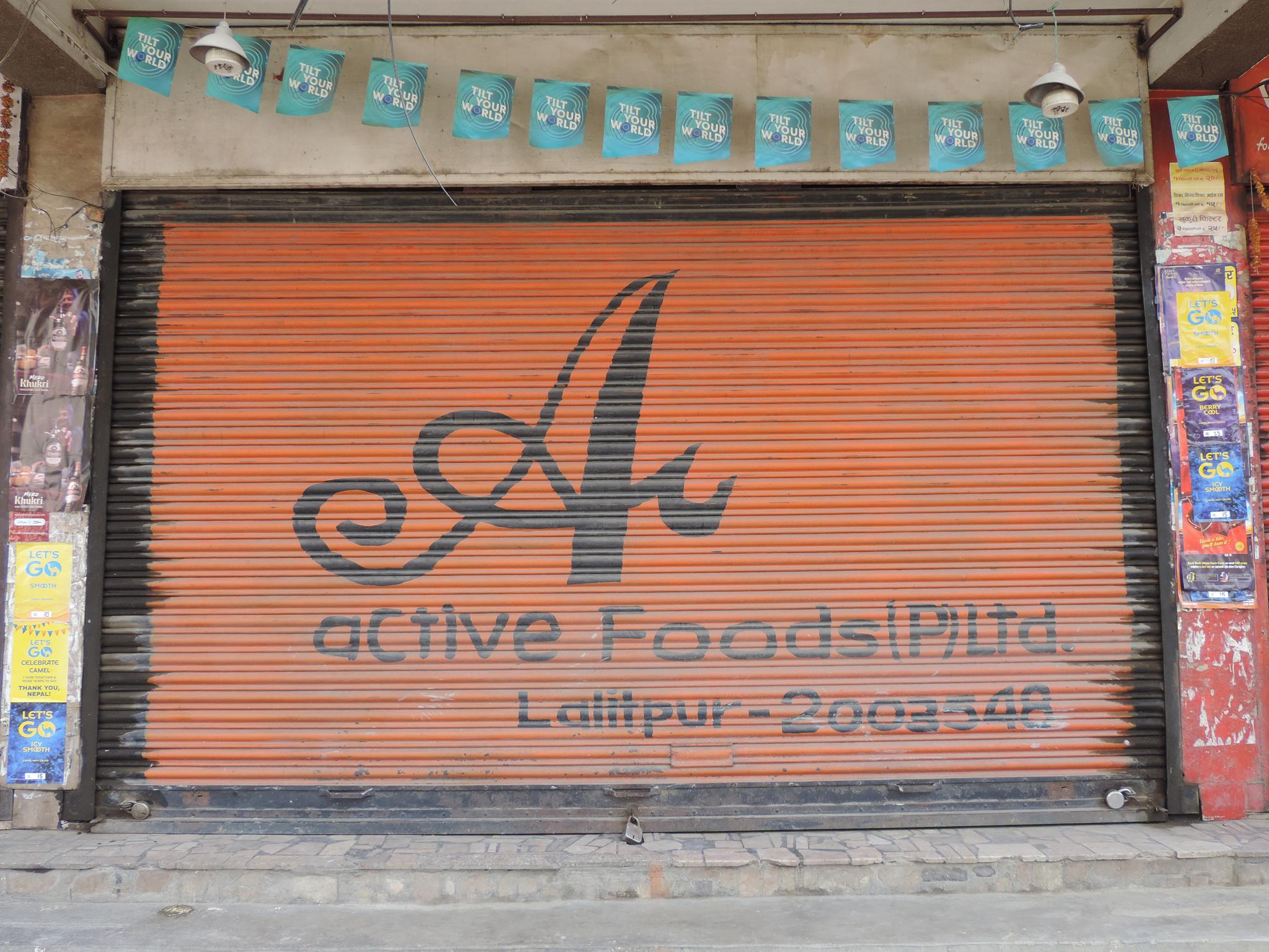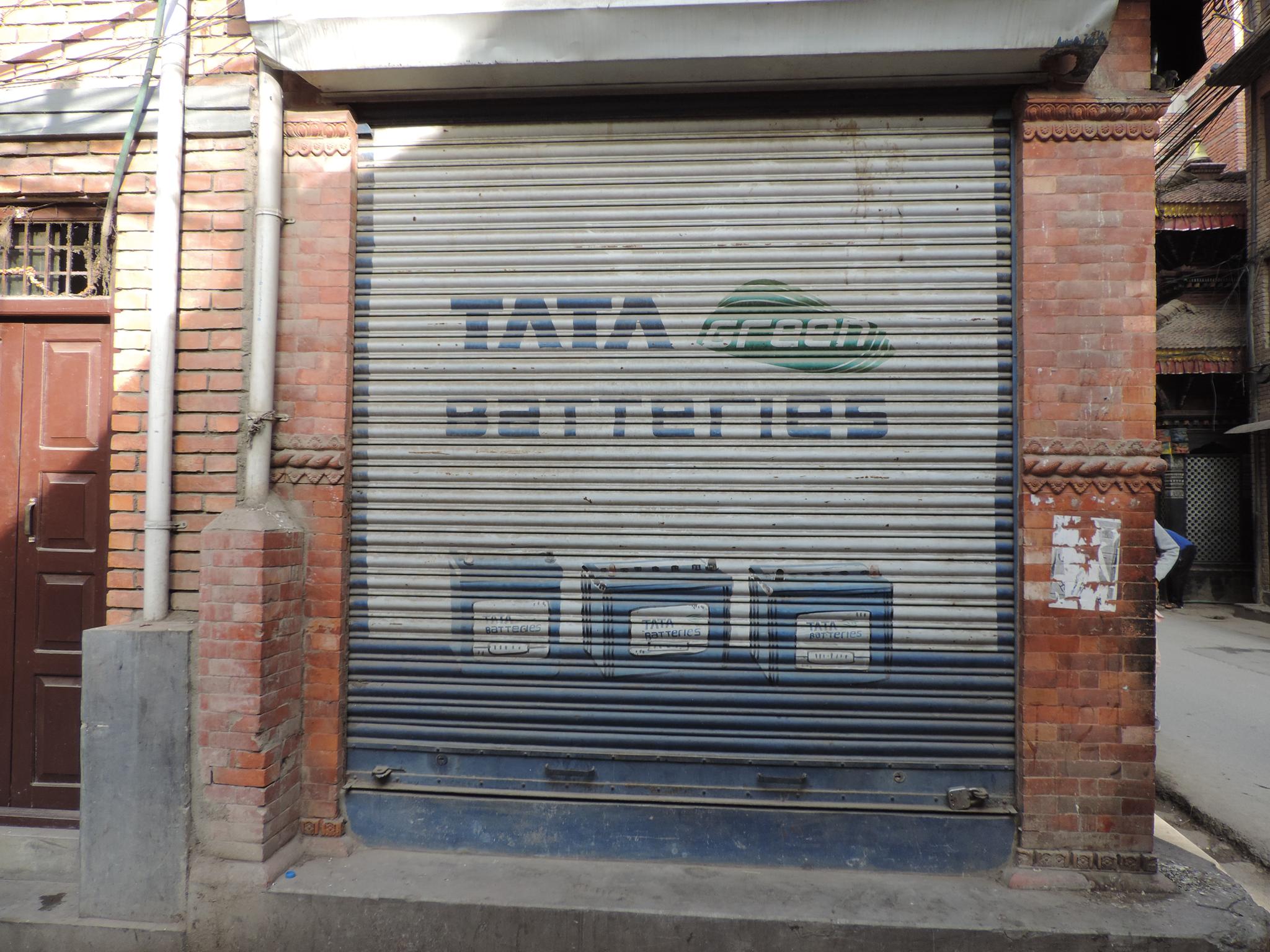The streets of Kathmandu and Patan are lined with countless stores, handcraft workshops, and small retailers. Their corrugated roll-up doors are each adorned with logos and business names, but here in Nepal, these advertisements are still painted in selfmade processes. At first, we had only photographed a few of these intriguing shutters, but more and more were added, and so a whole collection of nearly 150 of these doors has now been created. It is certainly a noticeable and significant part of the street scene and urban landscape; moreover, aside from the commercial aspect, these are nonetheless painted graphics in urban space.