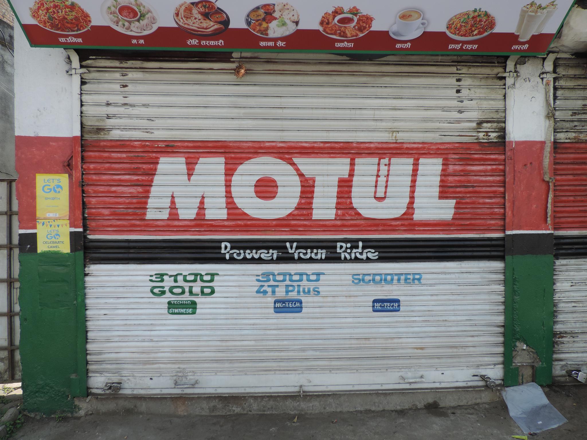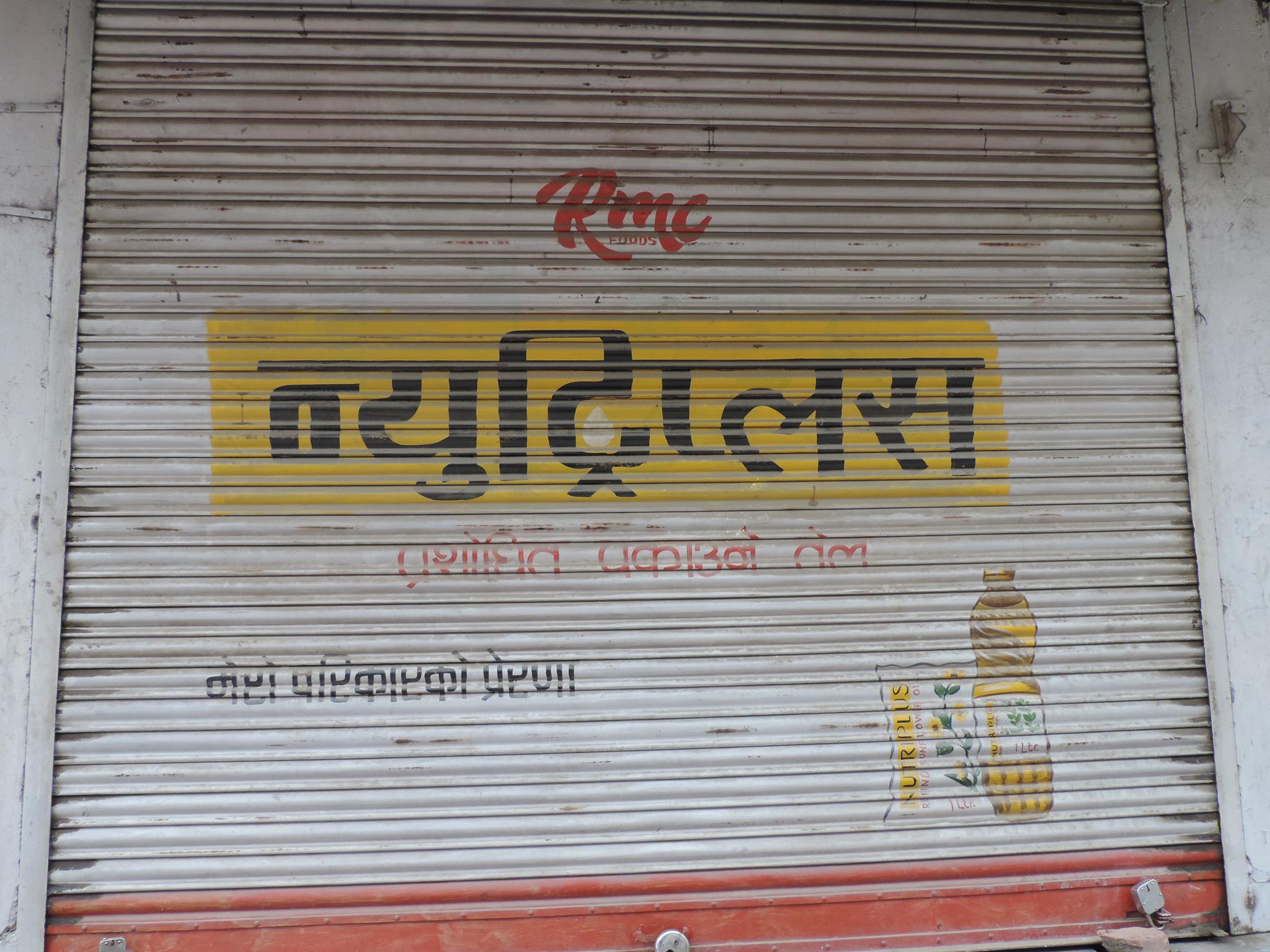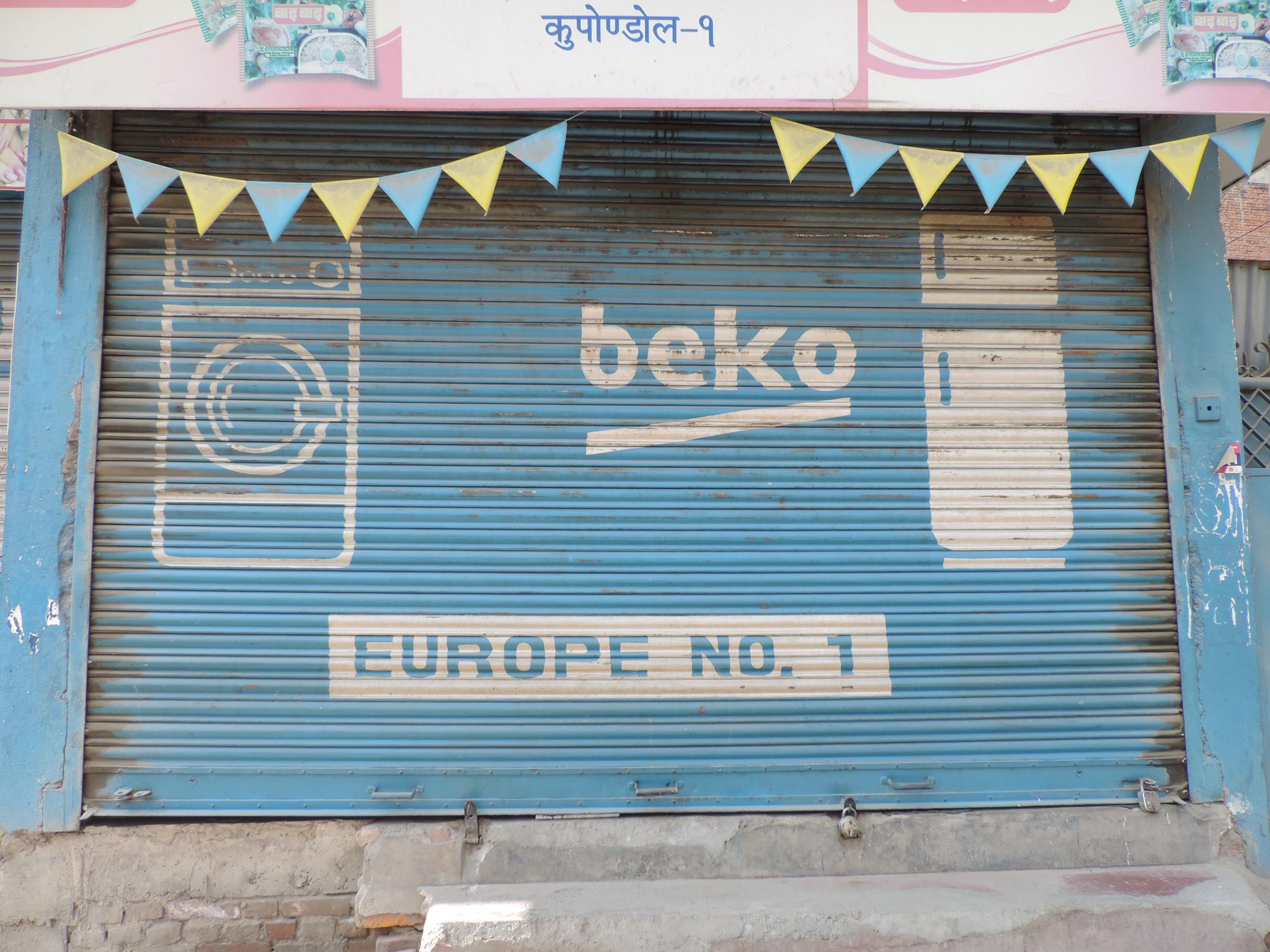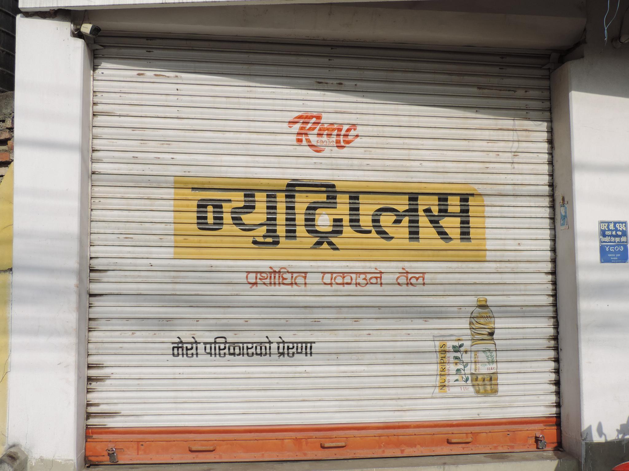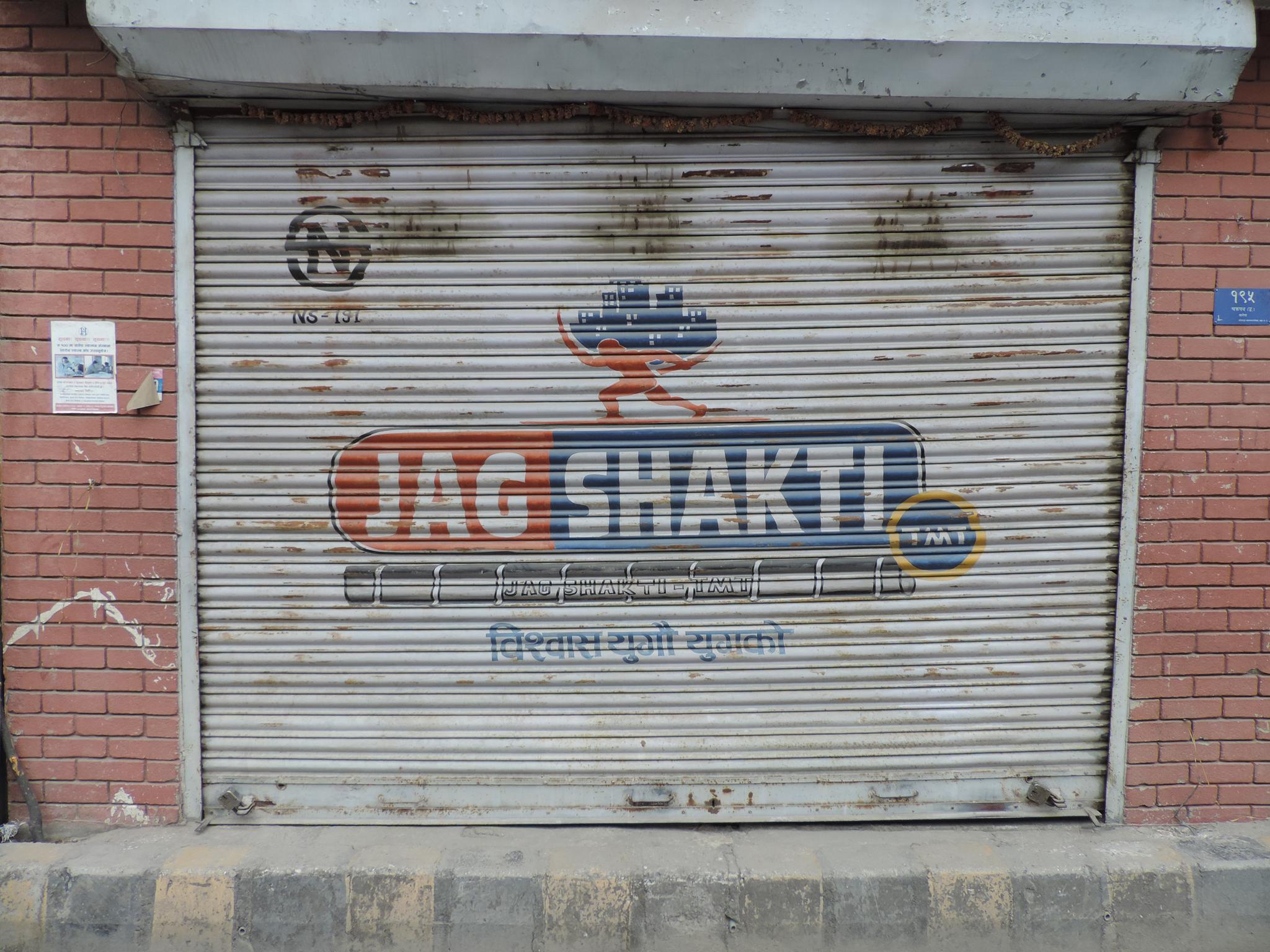 The streets of Kathmandu and Patan are lined with countless stores, handcraft workshops, and small retailers. Their corrugated roll-up doors are each adorned with logos and business names, but here in Nepal, these advertisements are still painted in selfmade processes. At first, we had only photographed a few of these intriguing shutters, but more and more were added, and so a whole collection of nearly 150 of these doors has now been created. It is certainly a noticeable and significant part of the street scene and urban landscape; moreover, aside from the commercial aspect, these are nonetheless painted graphics in urban space.