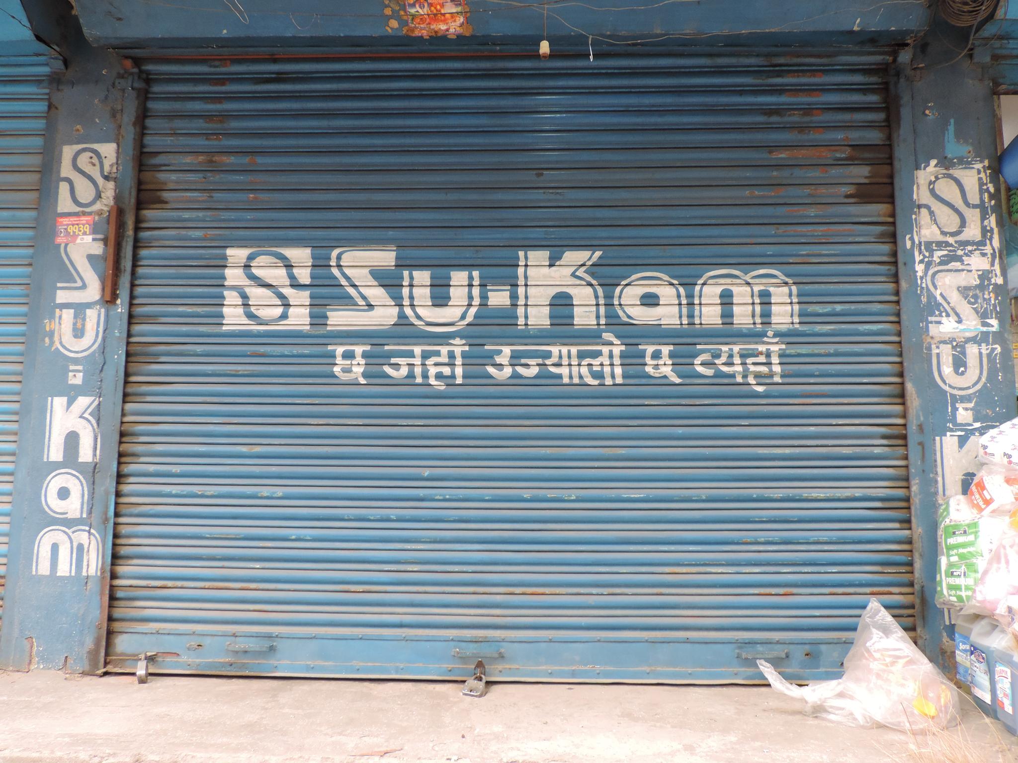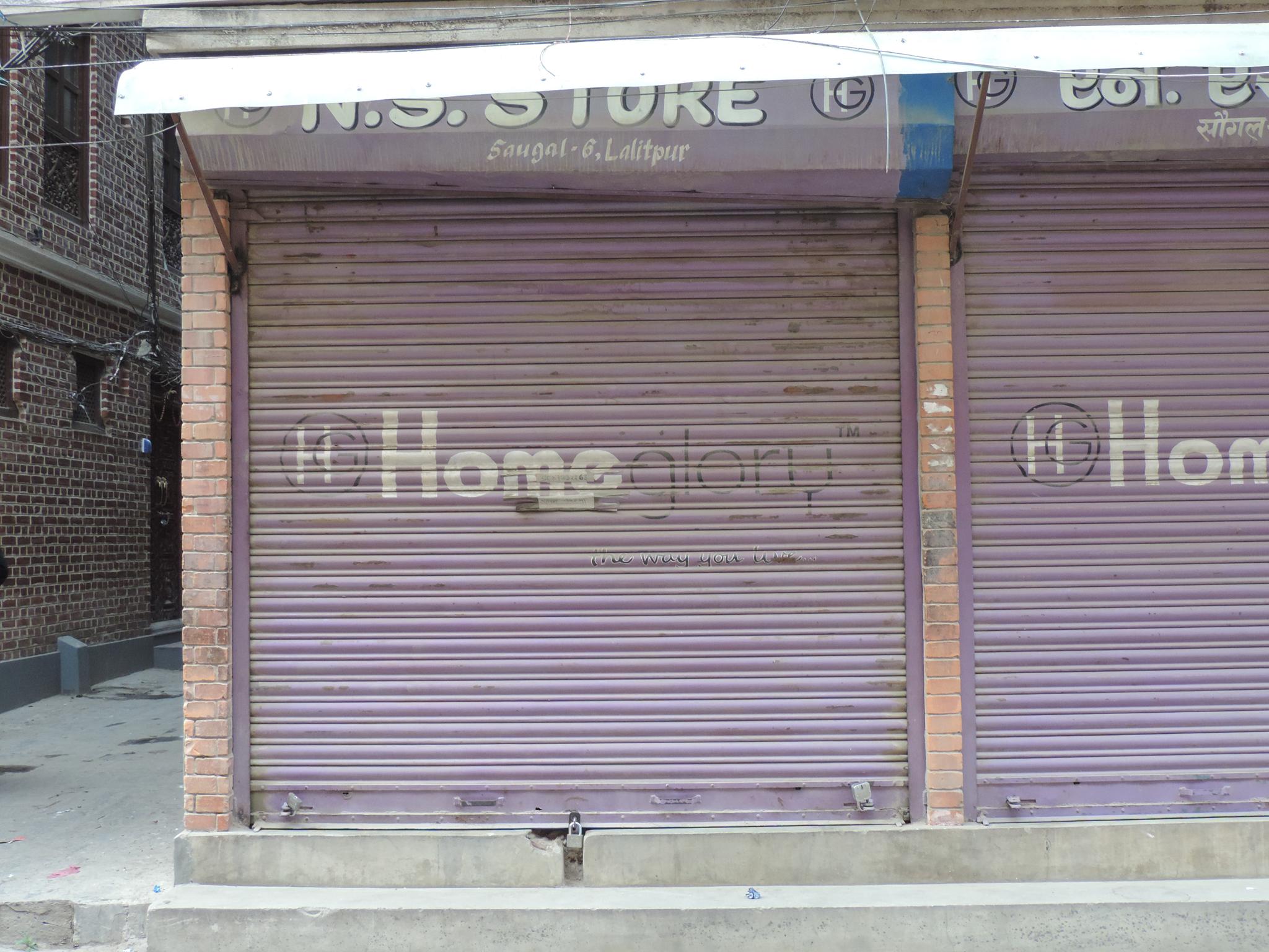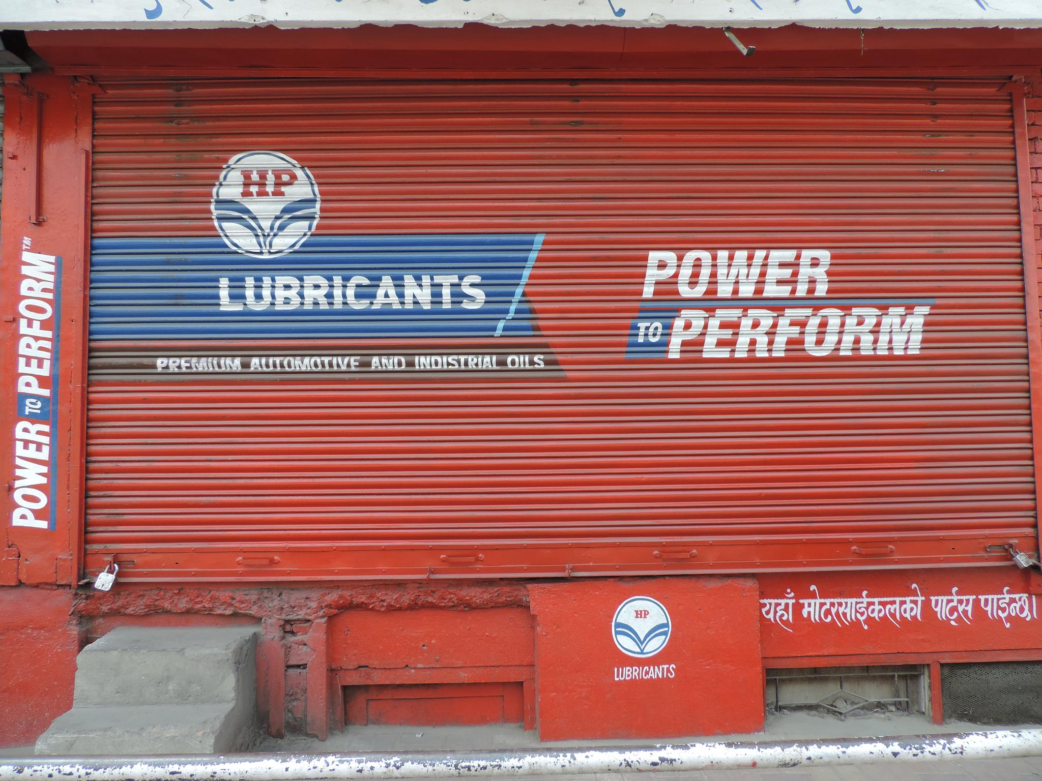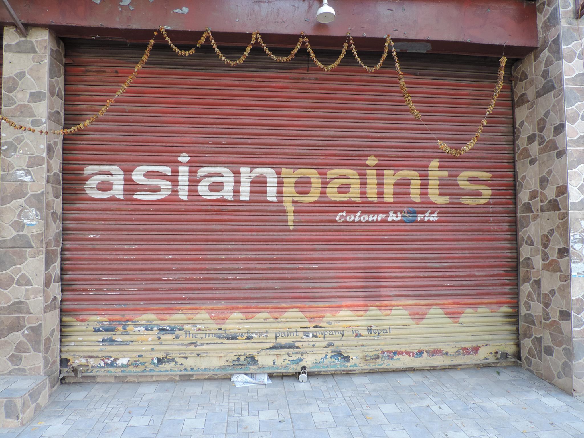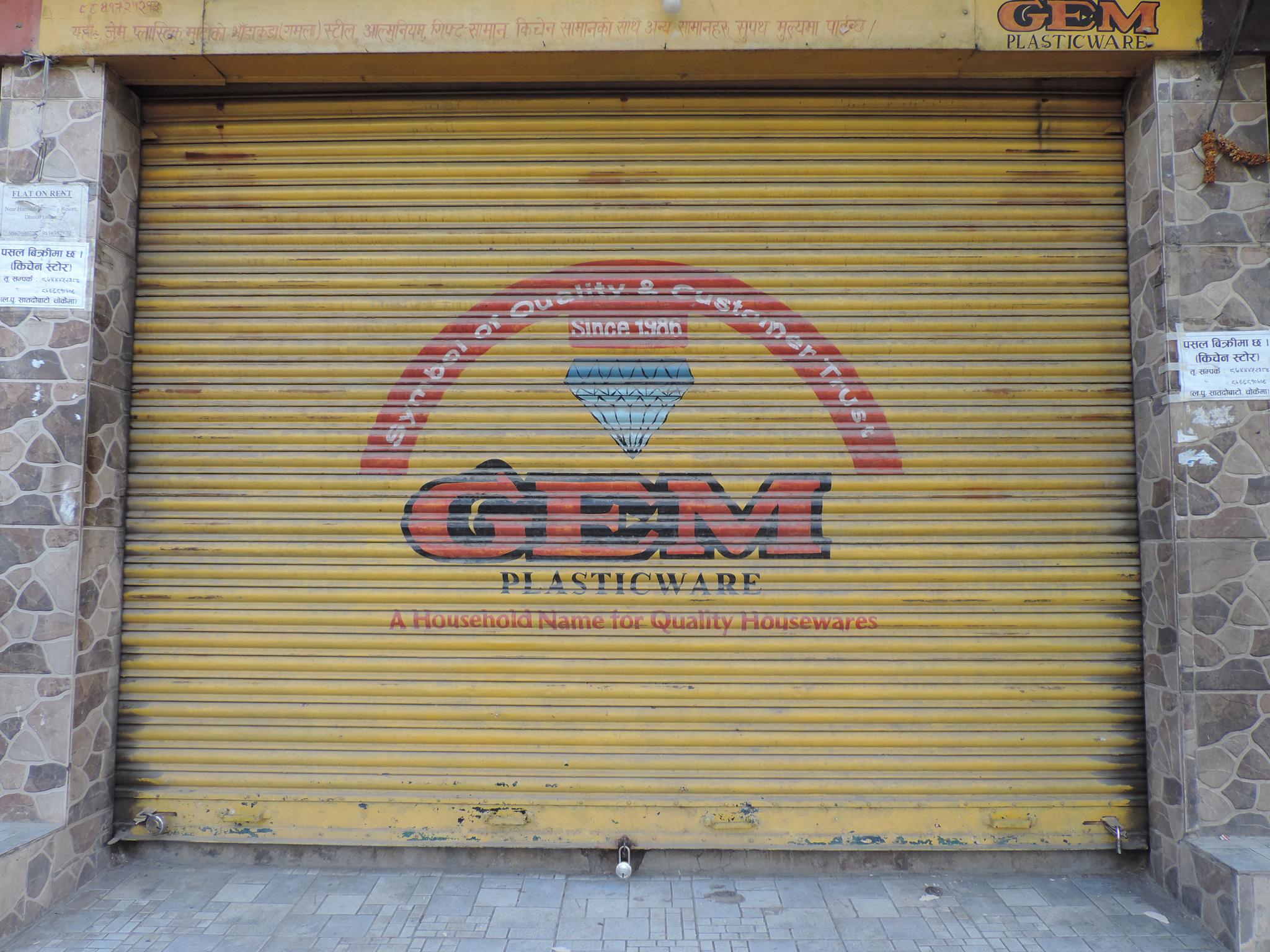 The streets of Kathmandu and Patan are lined with countless stores, handcraft workshops, and small retailers. Their corrugated roll-up doors are each adorned with logos and business names, but here in Nepal, these advertisements are still painted in selfmade processes. At first, we had only photographed a few of these intriguing shutters, but more and more were added, and so a whole collection of nearly 150 of these doors has now been created. It is certainly a noticeable and significant part of the street scene and urban landscape; moreover, aside from the commercial aspect, these are nonetheless painted graphics in urban space.