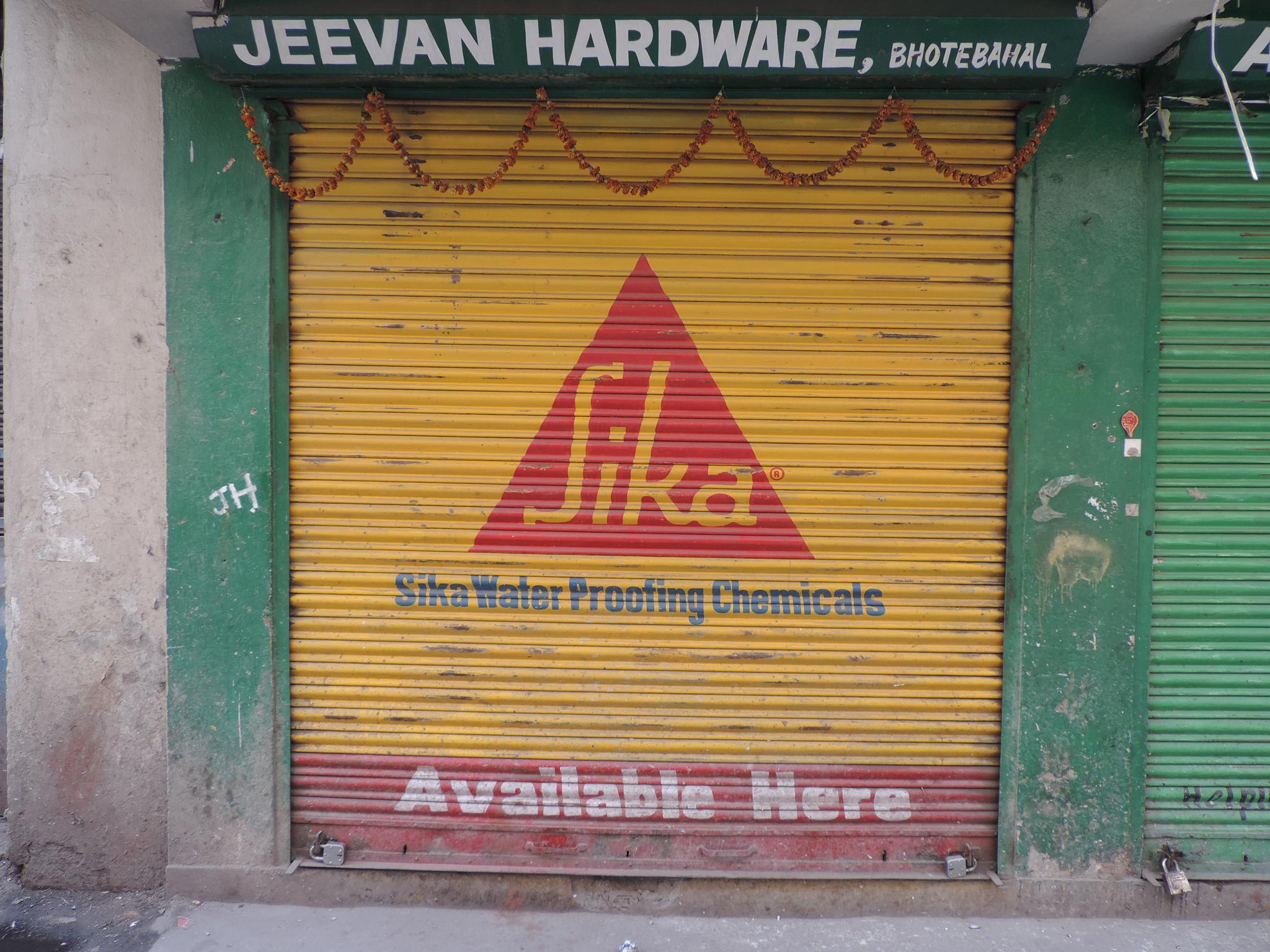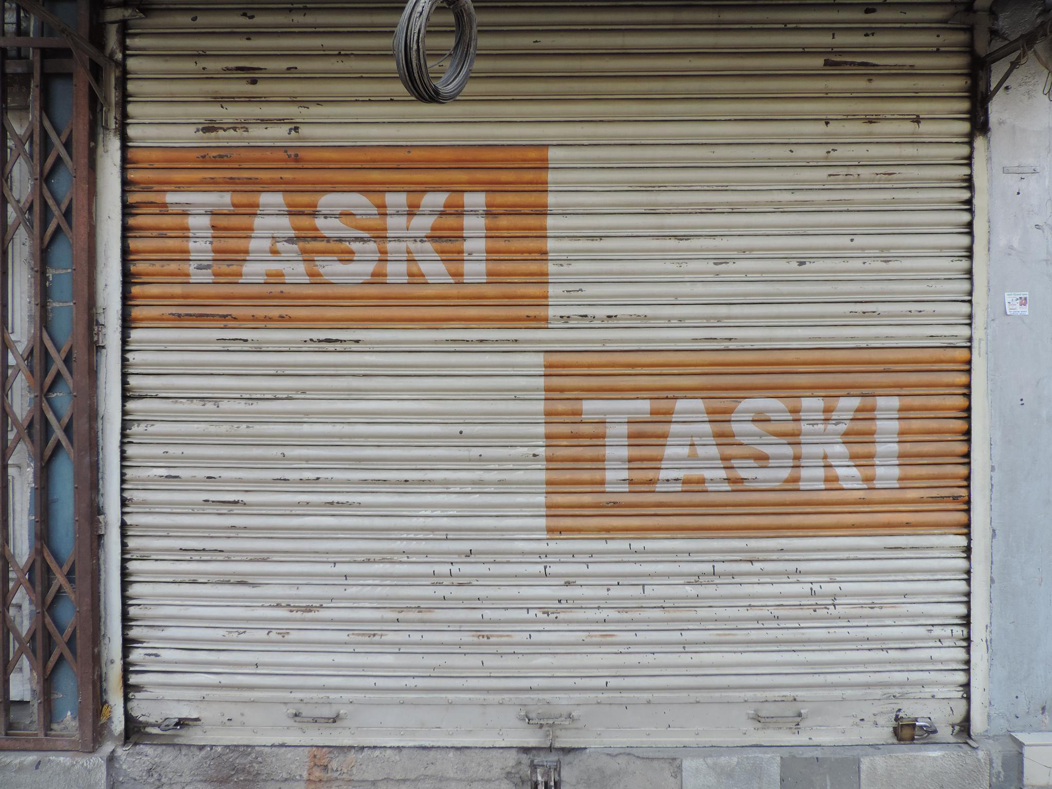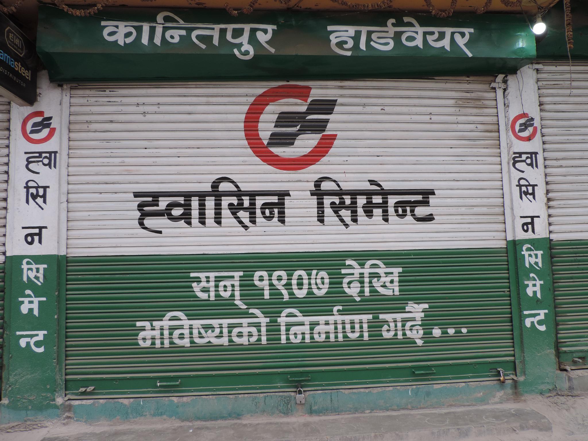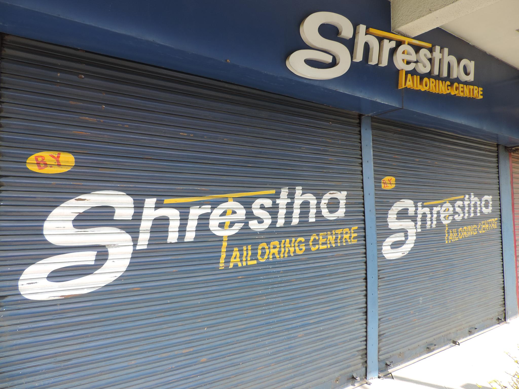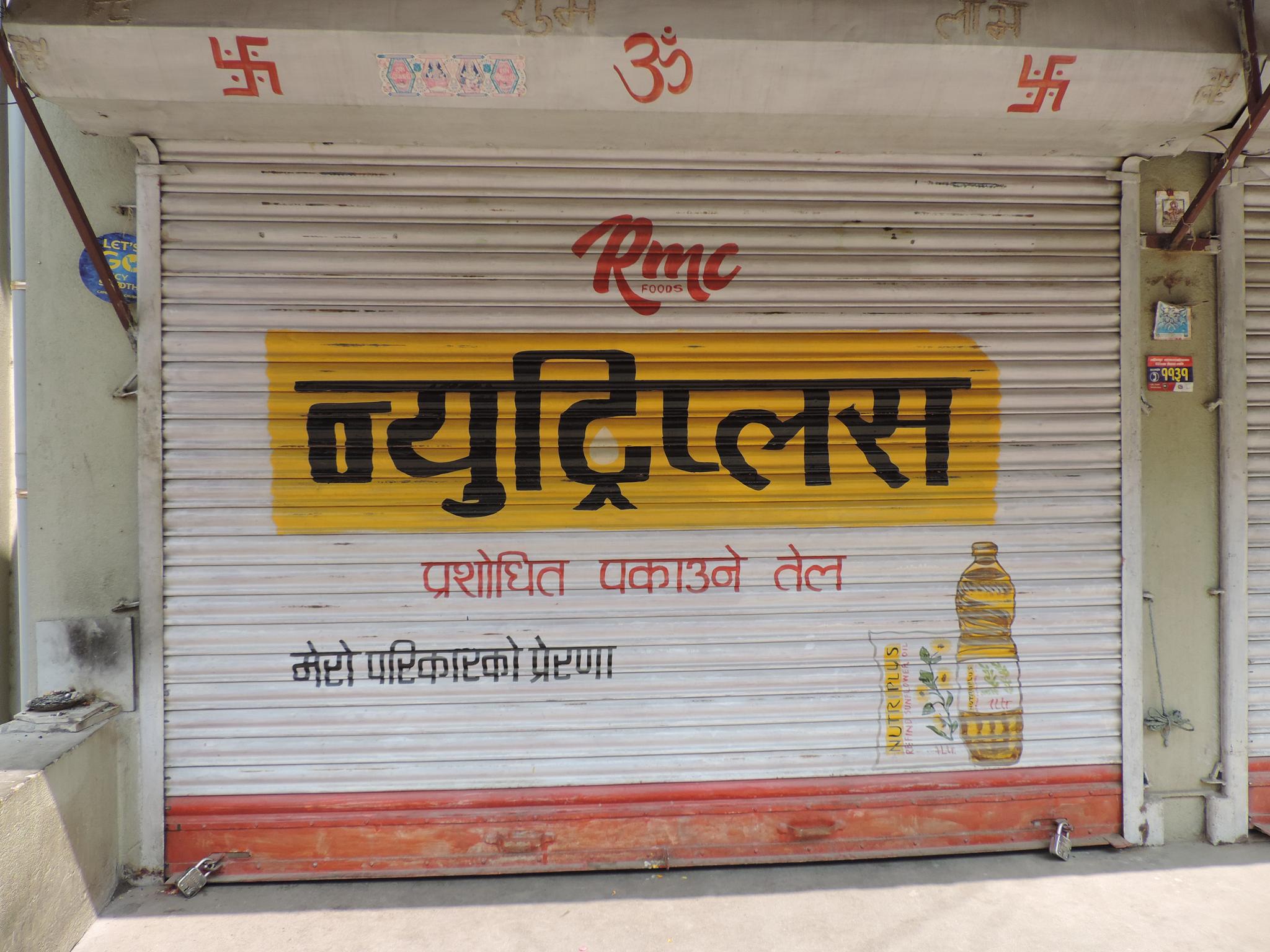 The streets of Kathmandu and Patan are lined with countless stores, handcraft workshops, and small retailers. Their corrugated roll-up doors are each adorned with logos and business names, but here in Nepal, these advertisements are still painted in selfmade processes. At first, we had only photographed a few of these intriguing shutters, but more and more were added, and so a whole collection of nearly 150 of these doors has now been created. It is certainly a noticeable and significant part of the street scene and urban landscape; moreover, aside from the commercial aspect, these are nonetheless painted graphics in urban space.