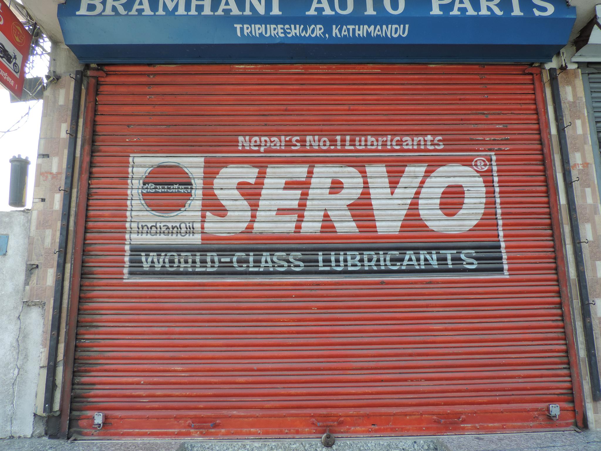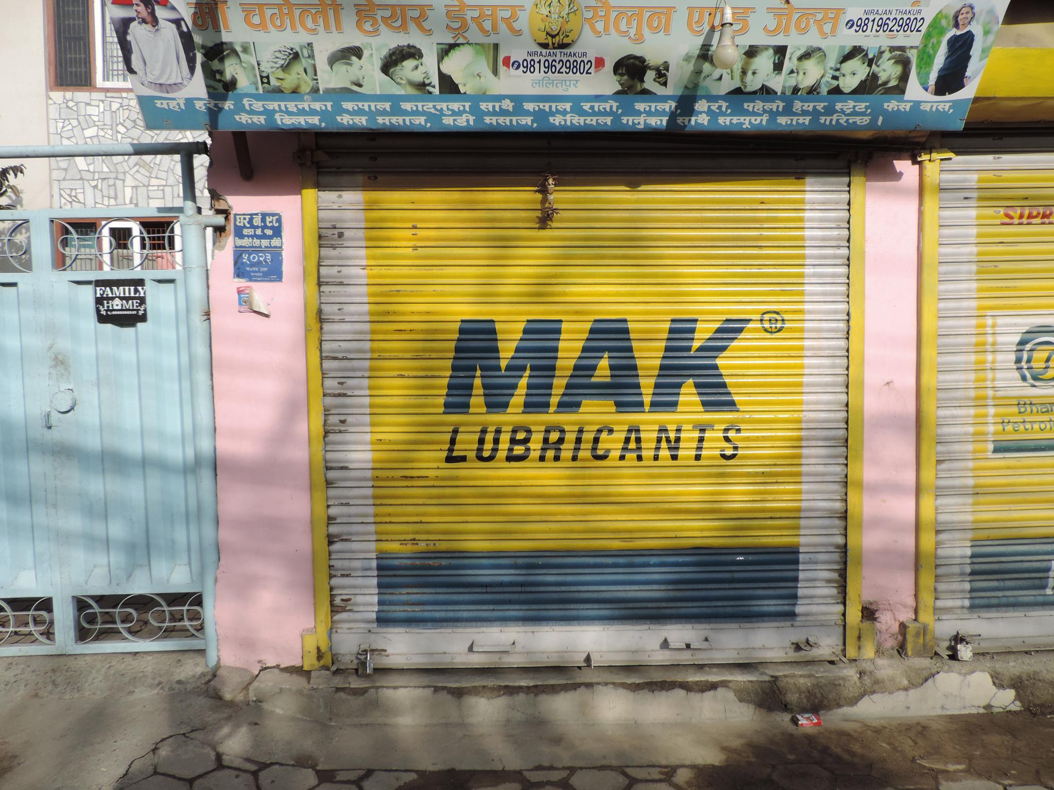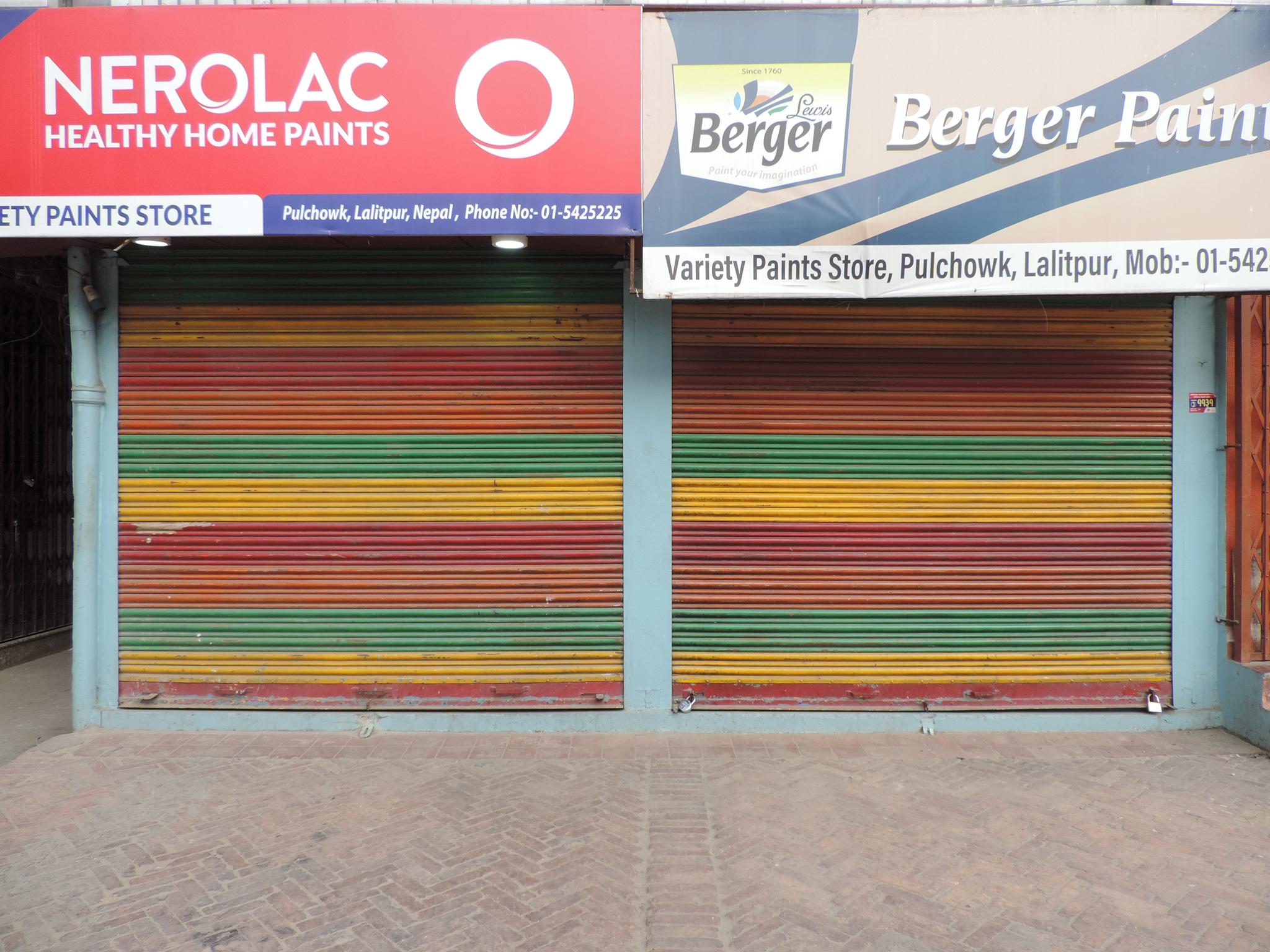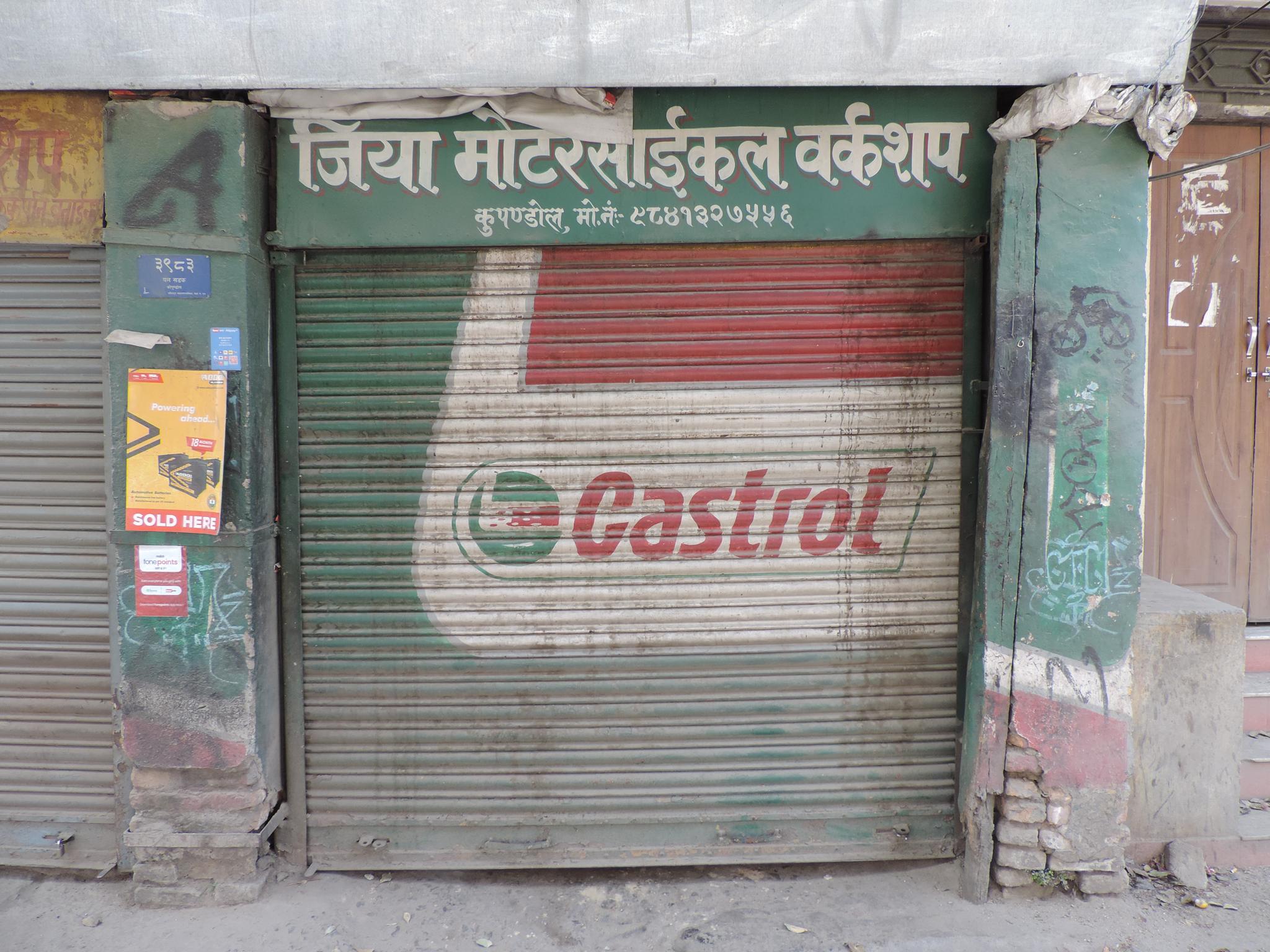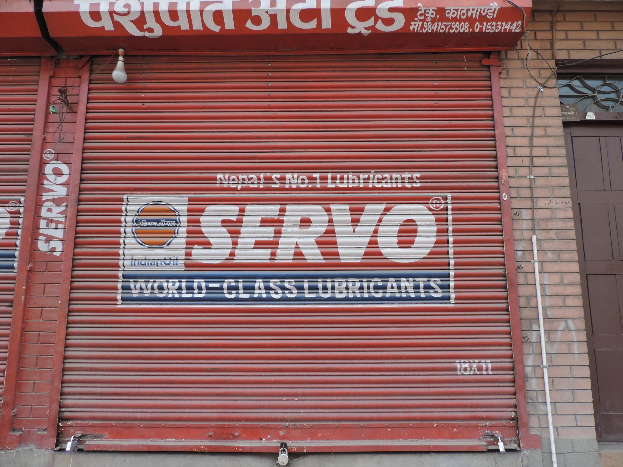 The streets of Kathmandu and Patan are lined with countless stores, handcraft workshops, and small retailers. Their corrugated roll-up doors are each adorned with logos and business names, but here in Nepal, these advertisements are still painted in selfmade processes. At first, we had only photographed a few of these intriguing shutters, but more and more were added, and so a whole collection of nearly 150 of these doors has now been created. It is certainly a noticeable and significant part of the street scene and urban landscape; moreover, aside from the commercial aspect, these are nonetheless painted graphics in urban space.