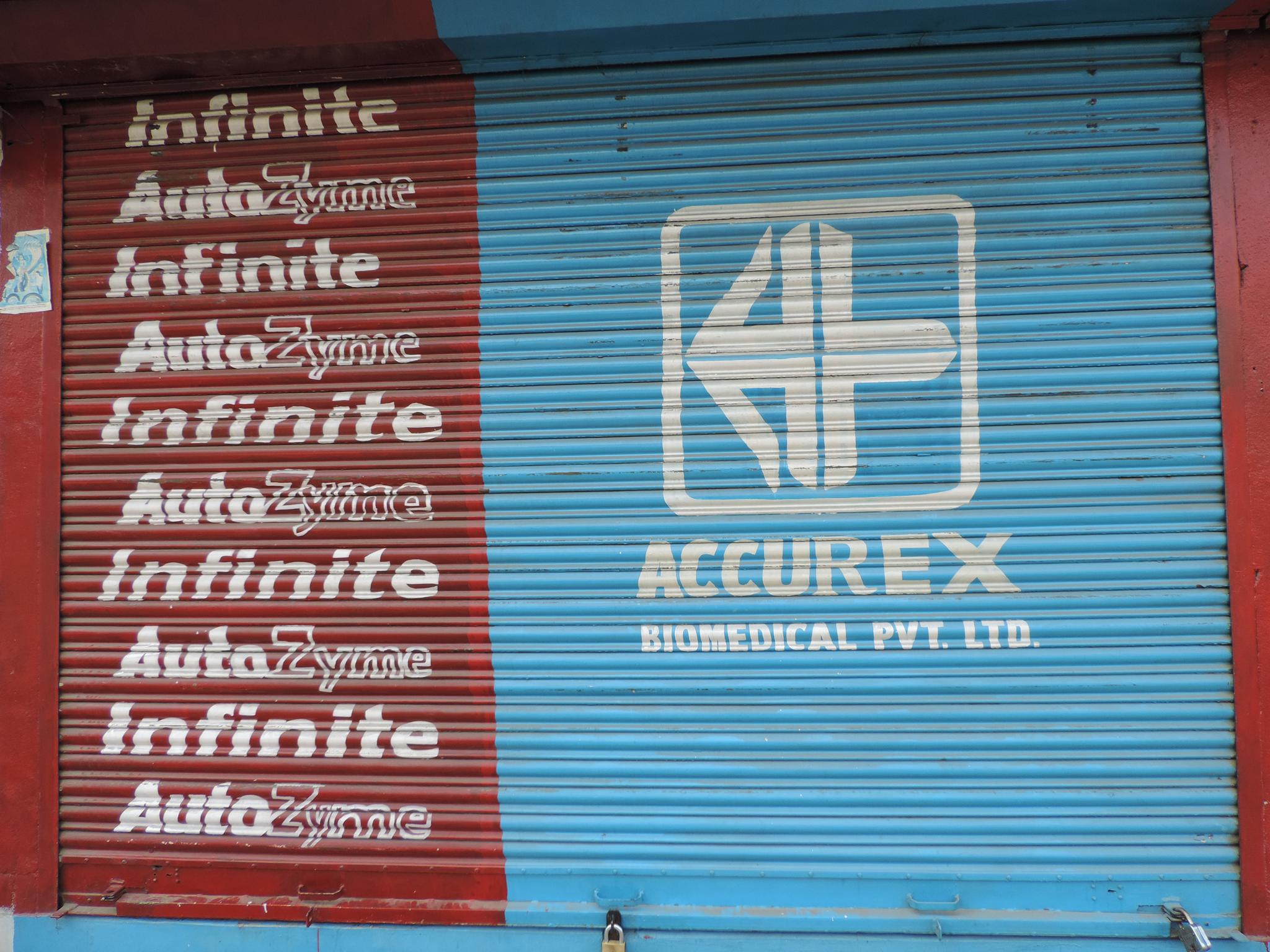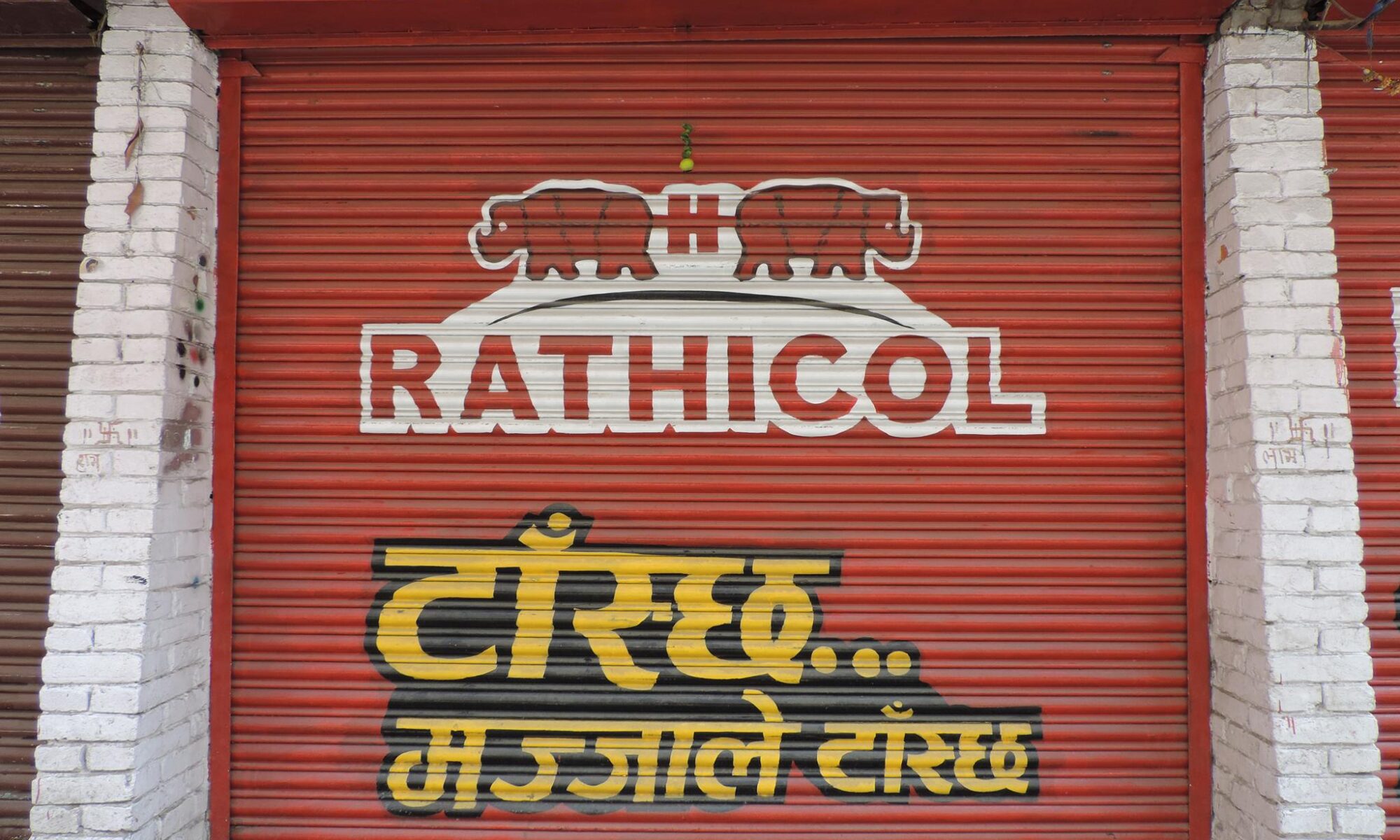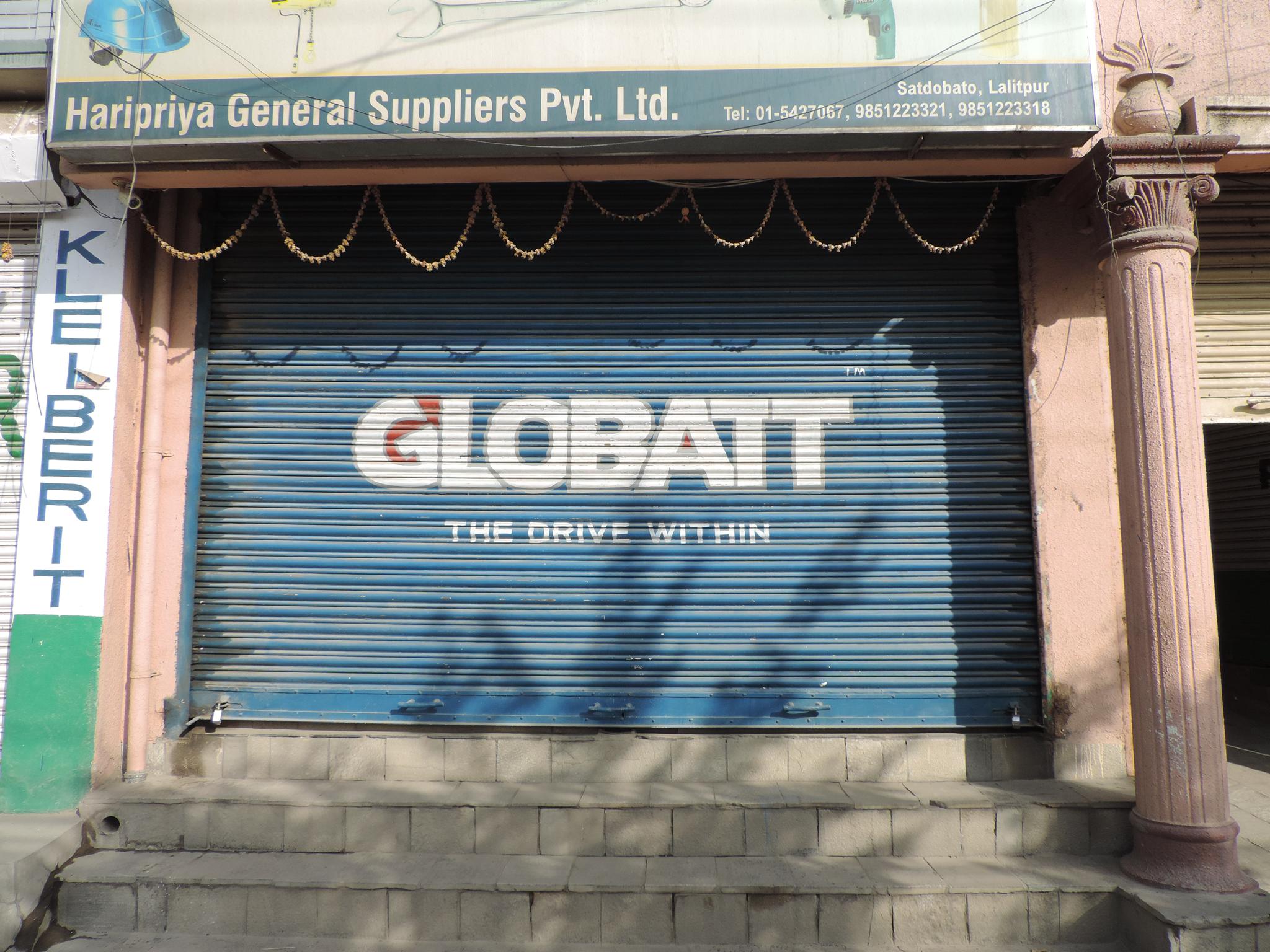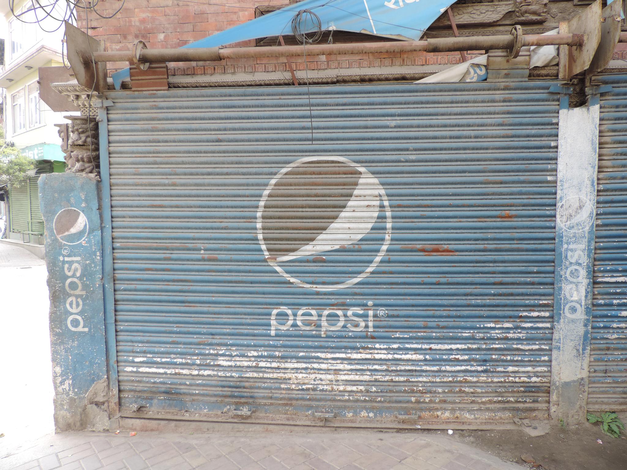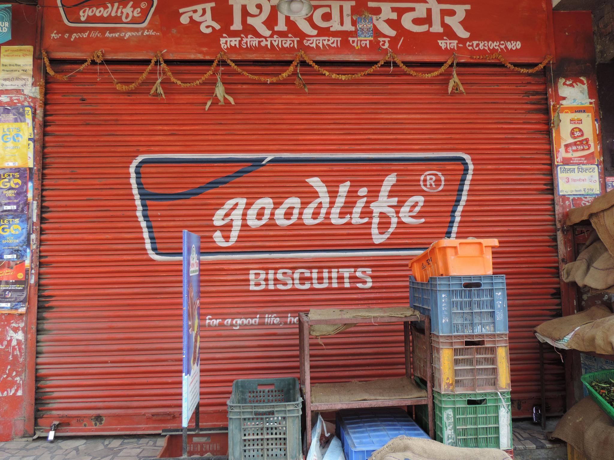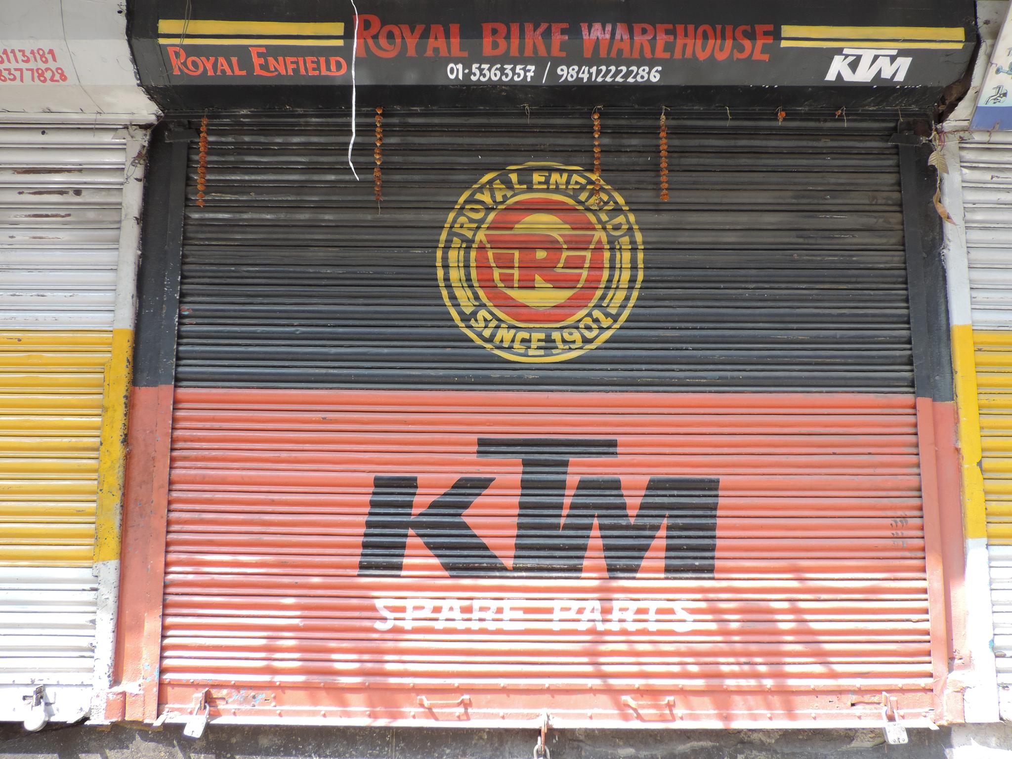 The streets of Kathmandu and Patan are lined with countless stores, handcraft workshops, and small retailers. Their corrugated roll-up doors are each adorned with logos and business names, but here in Nepal, these advertisements are still painted in selfmade processes. At first, we had only photographed a few of these intriguing shutters, but more and more were added, and so a whole collection of nearly 150 of these doors has now been created. It is certainly a noticeable and significant part of the street scene and urban landscape; moreover, aside from the commercial aspect, these are nonetheless painted graphics in urban space.