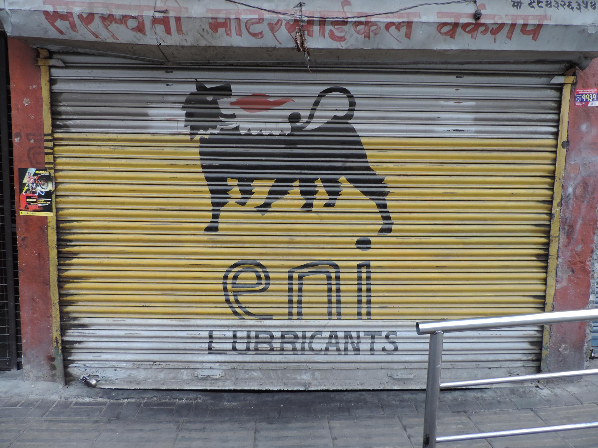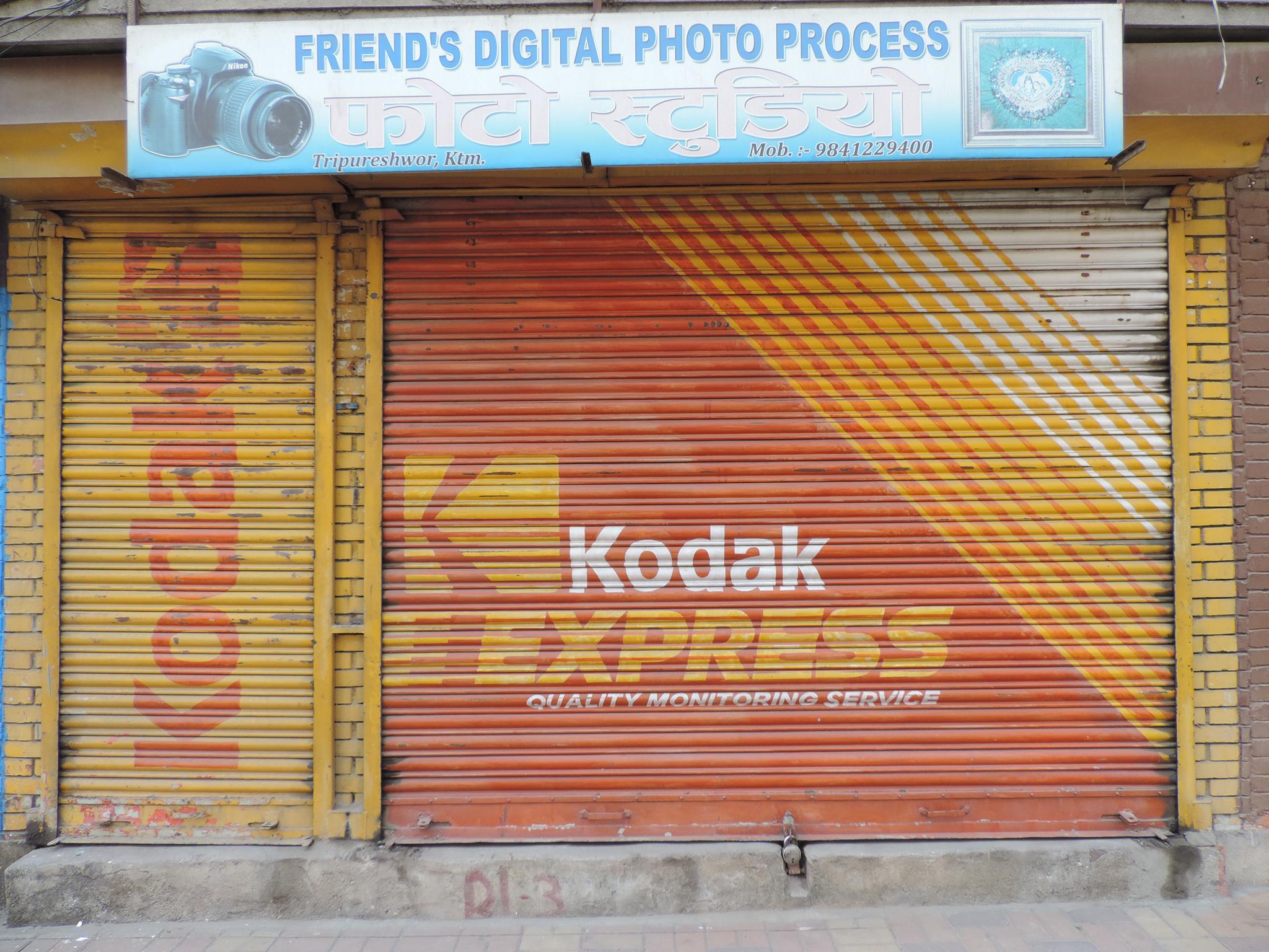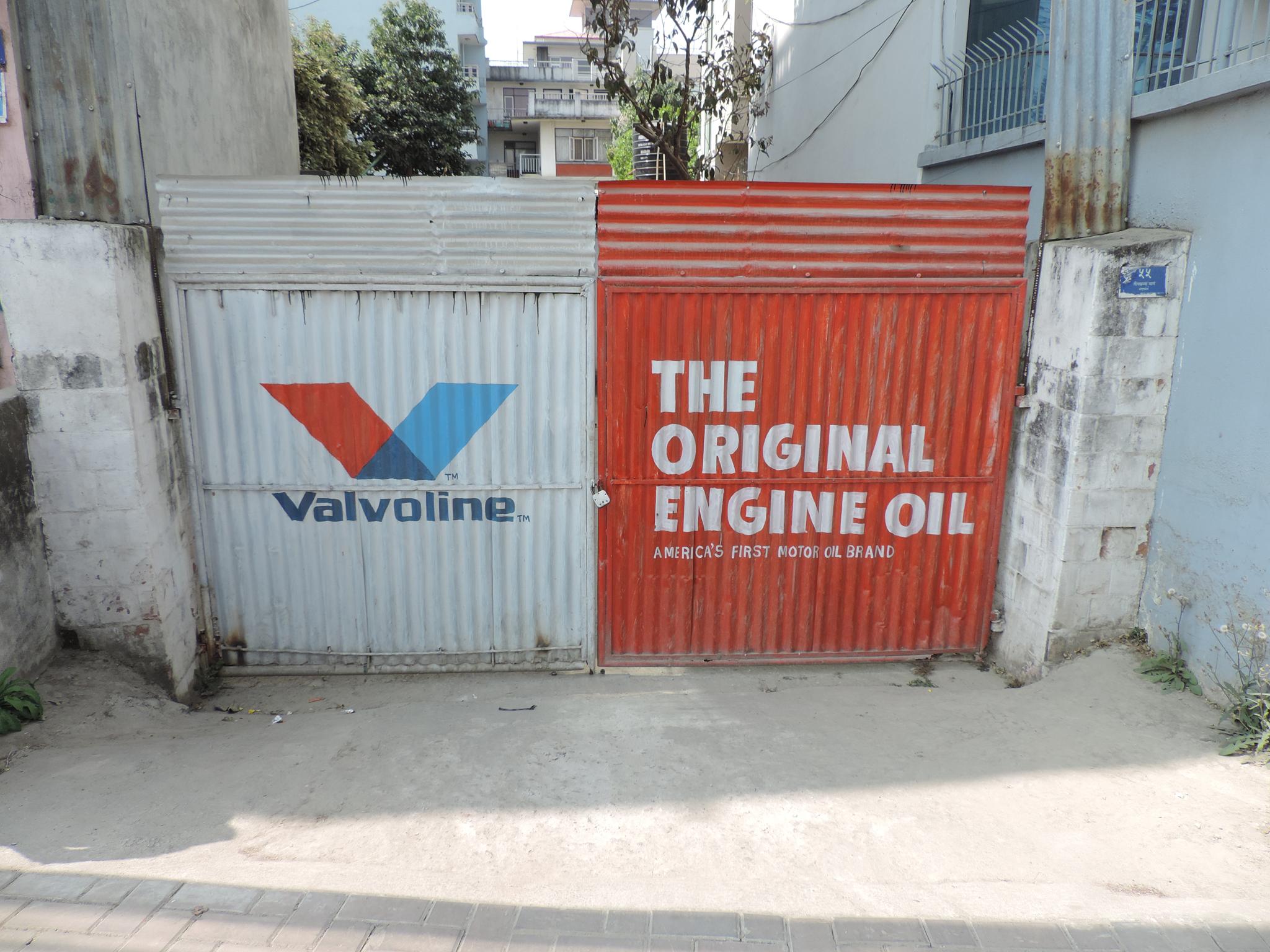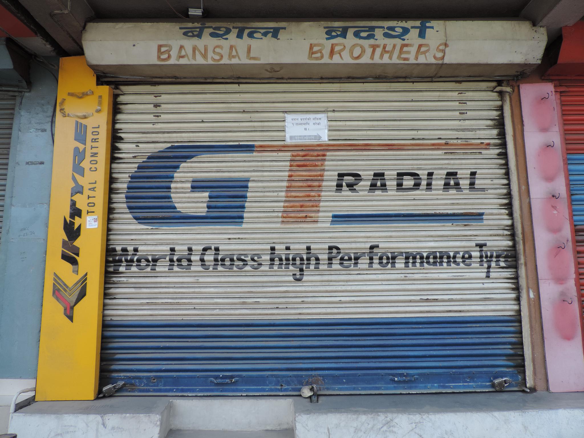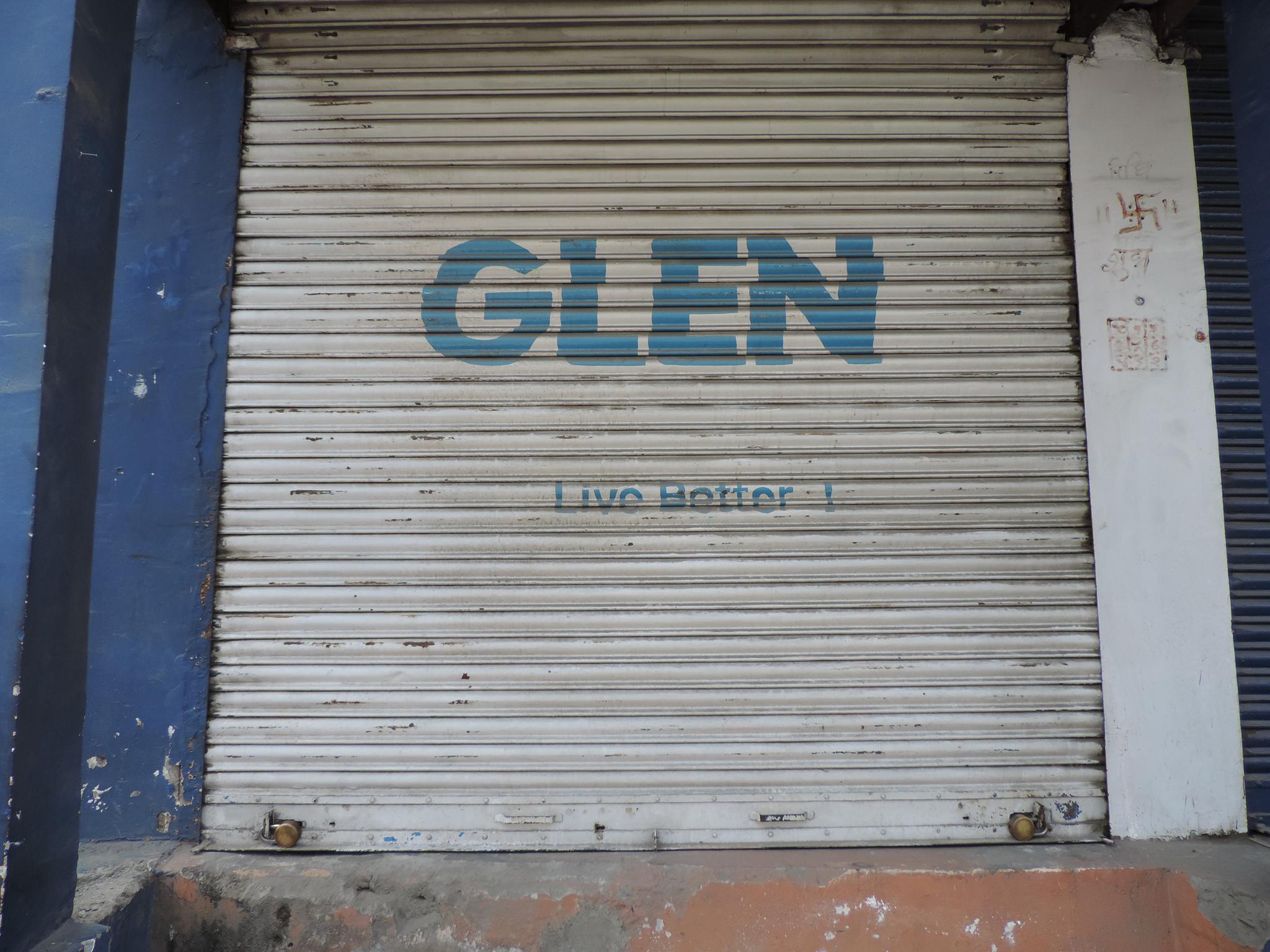 The streets of Kathmandu and Patan are lined with countless stores, handcraft workshops, and small retailers. Their corrugated roll-up doors are each adorned with logos and business names, but here in Nepal, these advertisements are still painted in selfmade processes. At first, we had only photographed a few of these intriguing shutters, but more and more were added, and so a whole collection of nearly 150 of these doors has now been created. It is certainly a noticeable and significant part of the street scene and urban landscape; moreover, aside from the commercial aspect, these are nonetheless painted graphics in urban space.
