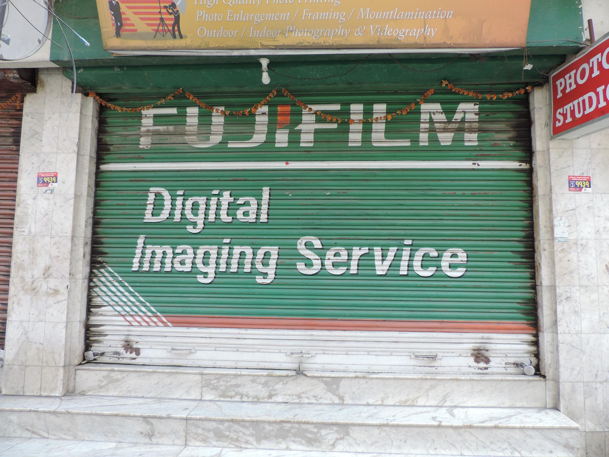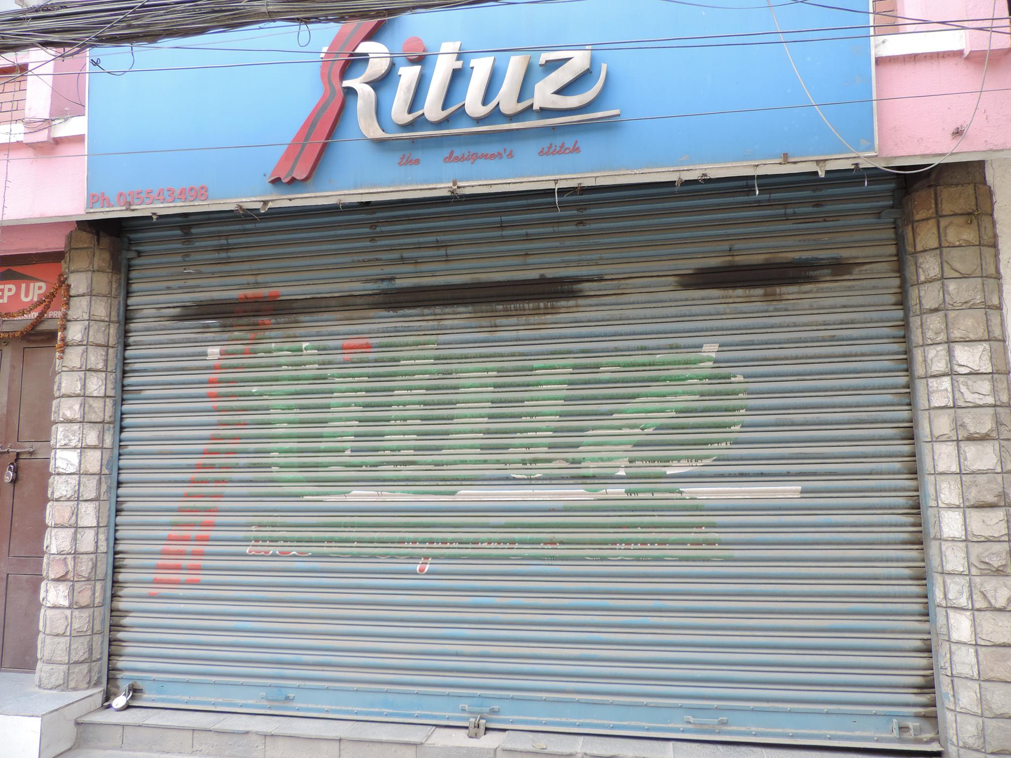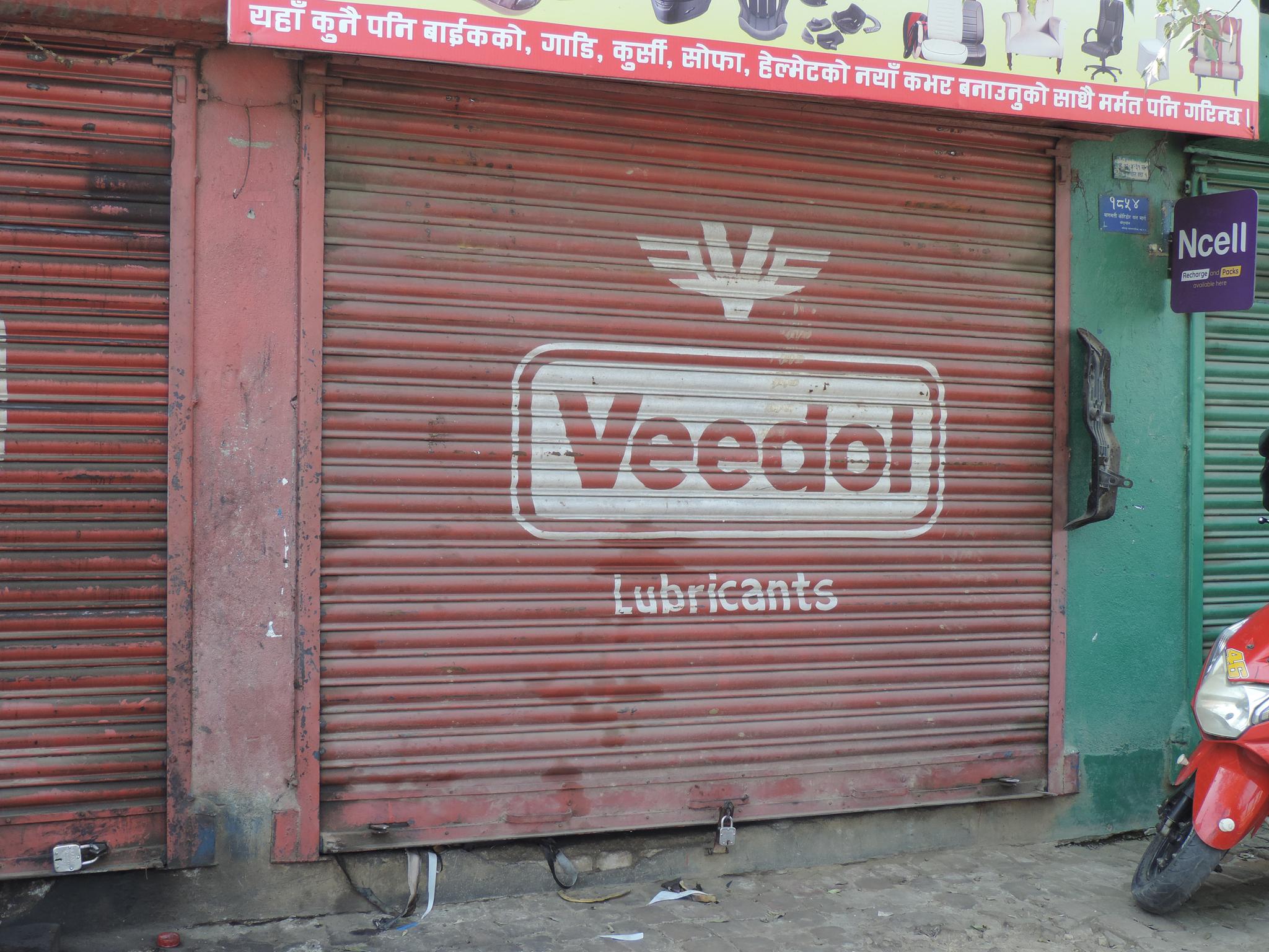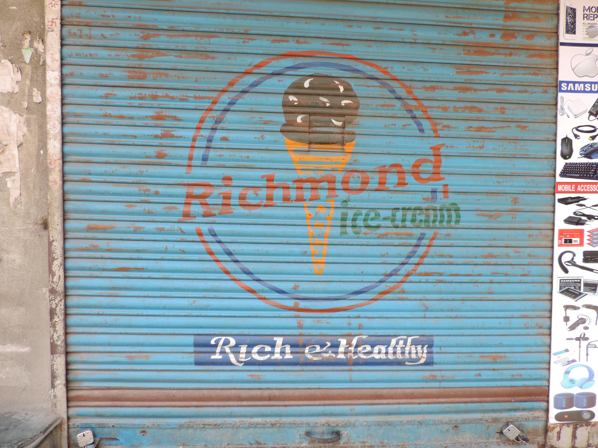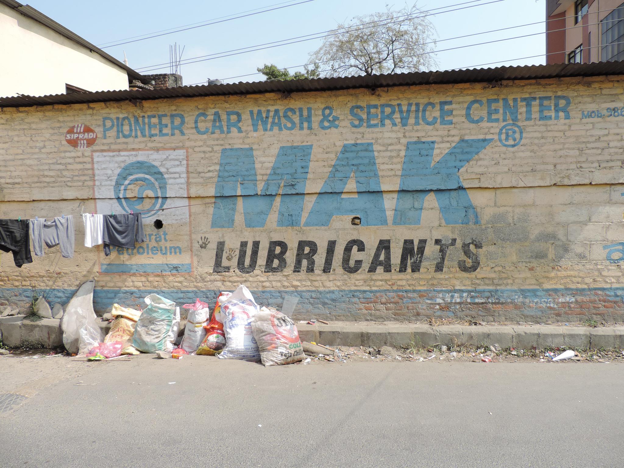 The streets of Kathmandu and Patan are lined with countless stores, handcraft workshops, and small retailers. Their corrugated roll-up doors are each adorned with logos and business names, but here in Nepal, these advertisements are still painted in selfmade processes. At first, we had only photographed a few of these intriguing shutters, but more and more were added, and so a whole collection of nearly 150 of these doors has now been created. It is certainly a noticeable and significant part of the street scene and urban landscape; moreover, aside from the commercial aspect, these are nonetheless painted graphics in urban space.