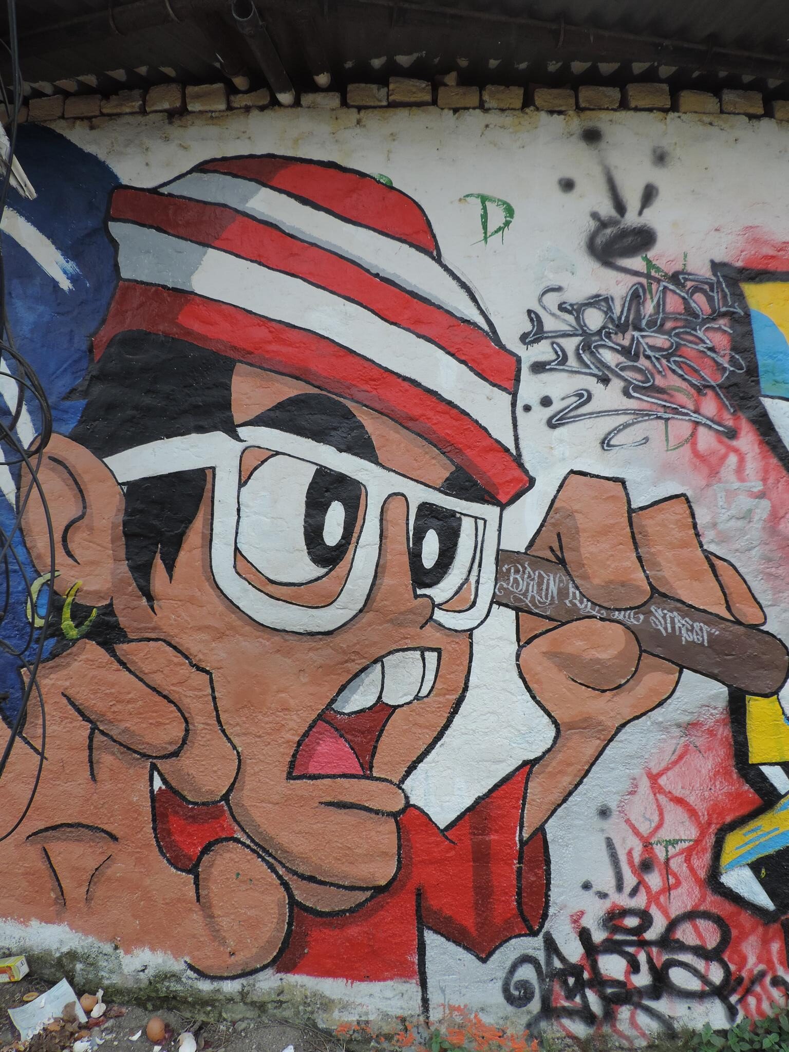 The city of Bharatpur, located on the Narayani River and near Chitwan National Park has a population of approximately 369.000 and is an important commercial hub in the central Nepal region. For more information and photos of the architecture, as well as background on the city’s history and street life, check out the article Architecture Bharatpur. On this page we focus on graffiti and urban art around town. The city is home to the legendary BFTS CREW, aka BORN FOR THE STREET, which formed around the master and tattoo icon DHUKUSH. The group is meanwhile active in many fields, ranging from graffiti, tattoos, and clothing to skateboarding, BMX, breakdancing and music genres like rap and punk. To support this movement, they founded their own label, KAMERO, which also operates its own shop in the Old Bazaar. The respective artists are also active in their own projects, such as BHOKSI at the DYNAMIC TATTOO STUDIO or PRAJWAL RAI with his band LATOKOSERO. Here is a collection with graffiti and urban artworks scattered throughout the city; be sure to check out the individual page for the BHARATPUR STREET ART FESTIVAL as well.
