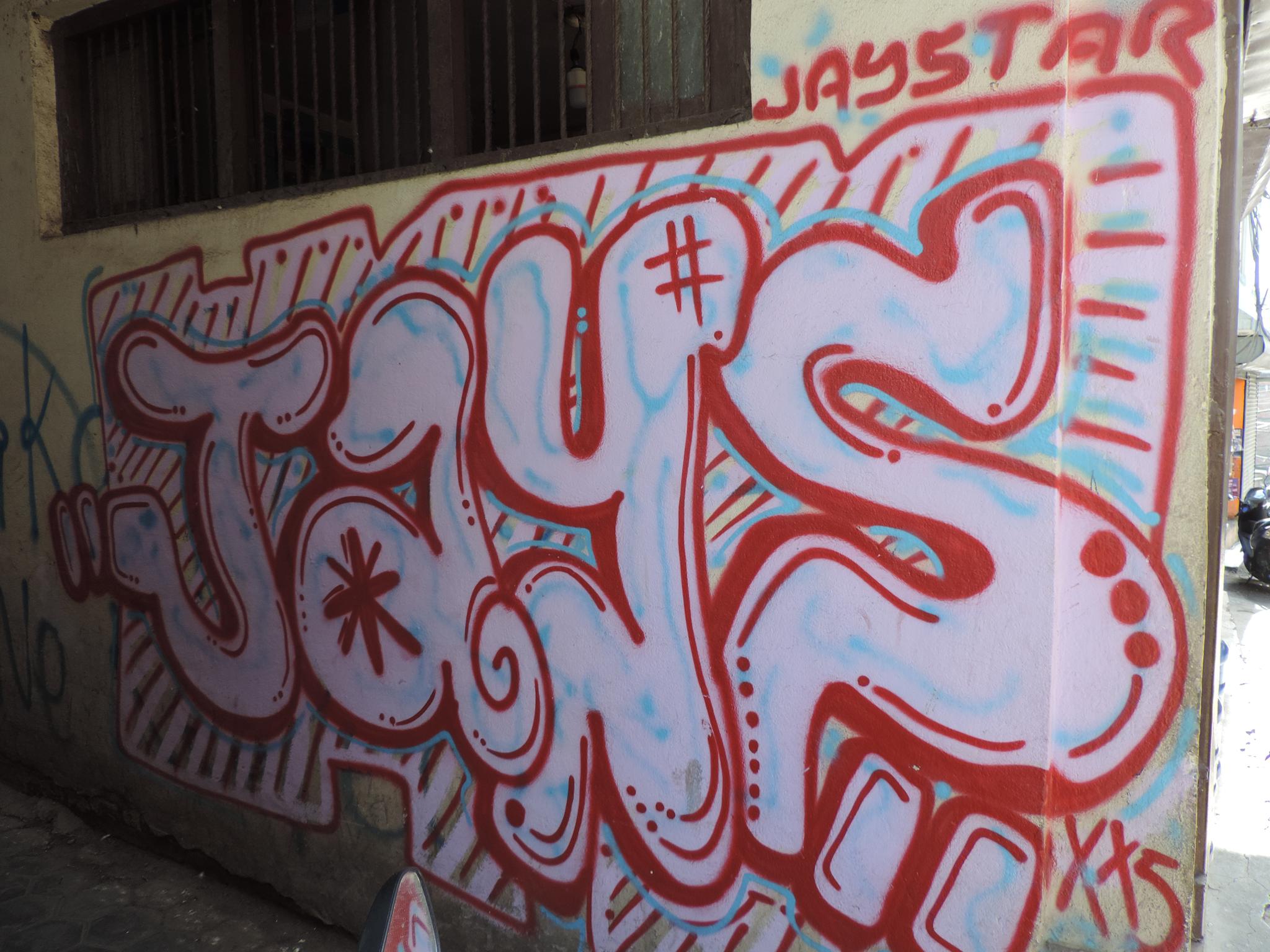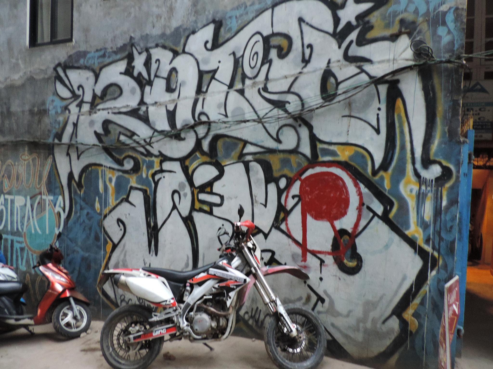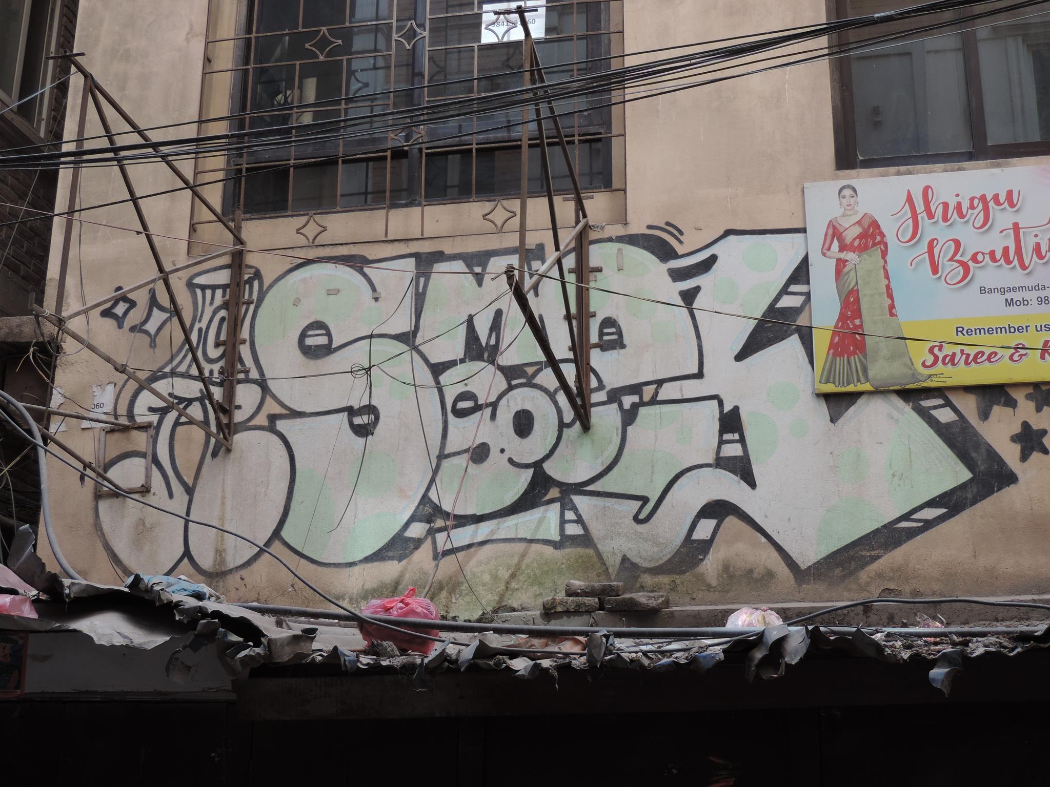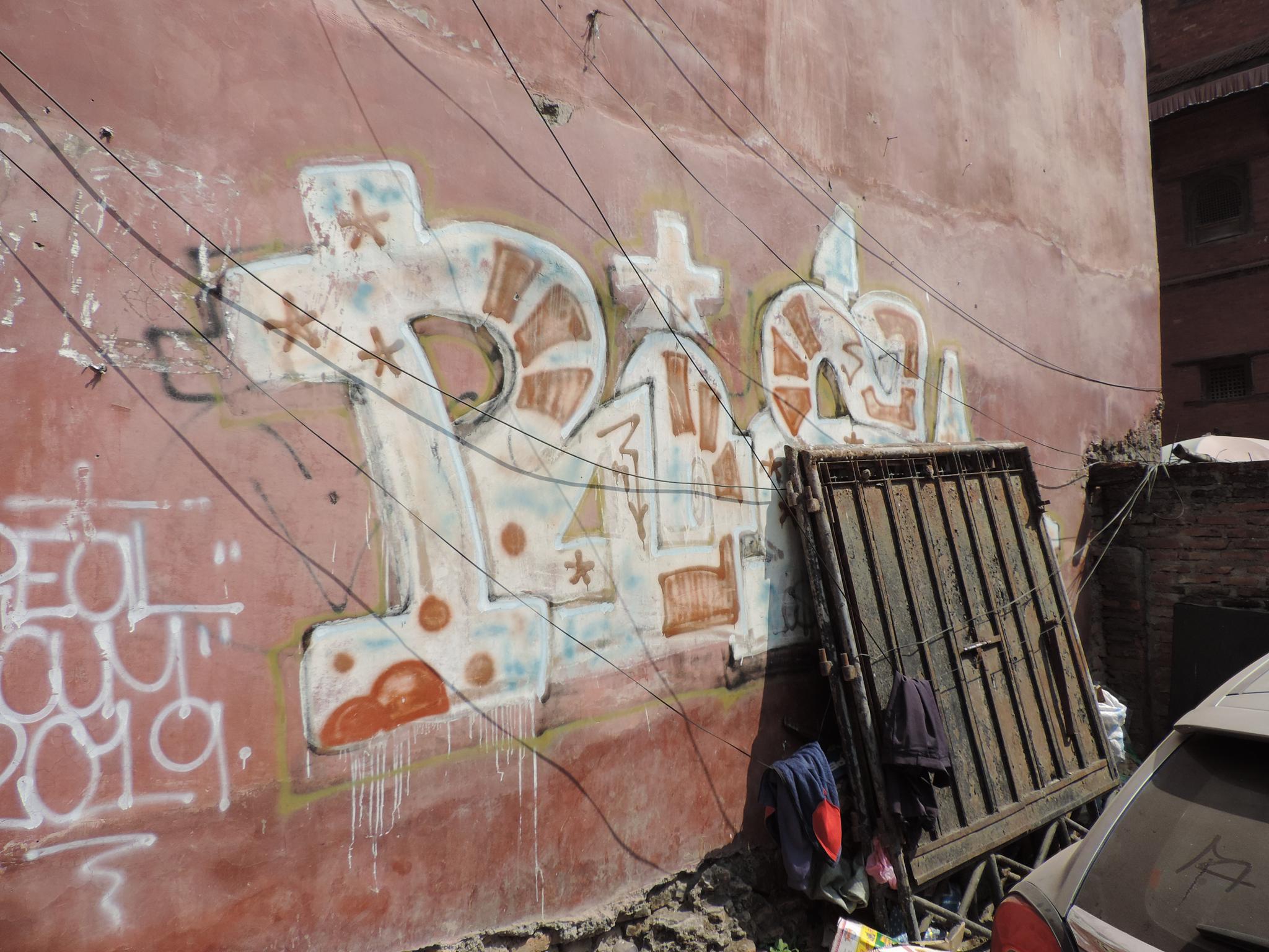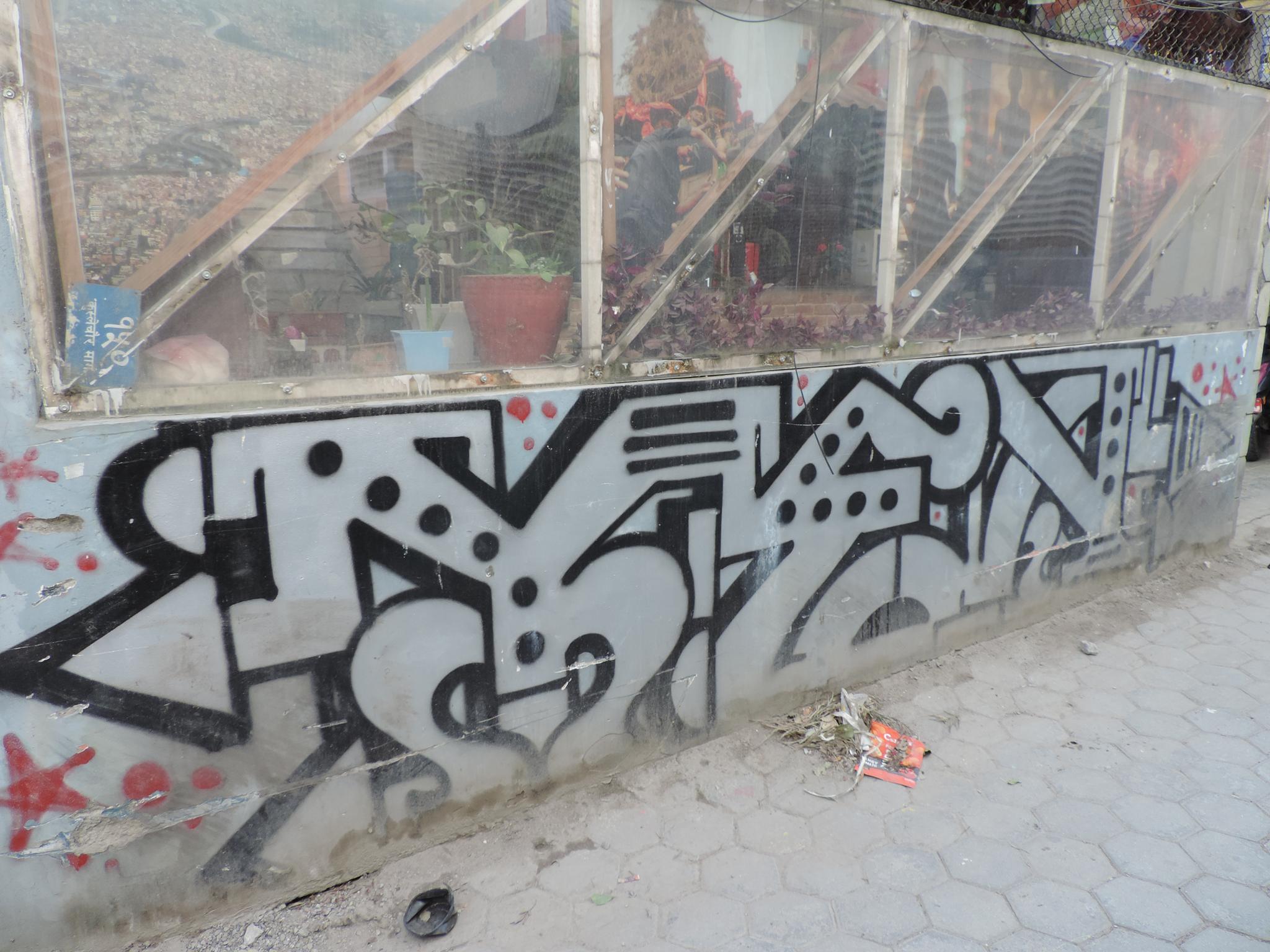 On this page, you’ll find graffiti and styles from the Thamel district in western Kathmandu. These pieces are more elaborate than the throw-ups, featuring different colors, three-dimensional effects, and outlines. They are more complex works, and now and then there’s even a character included. We have a lot of photos, so we’ve divided them into categories. Check as well the pages for the Thamel district featuring Tags & Signatures, Throw Ups & Bombings, Streetart & Characters and the Amrit Marg Collaboration Wall.