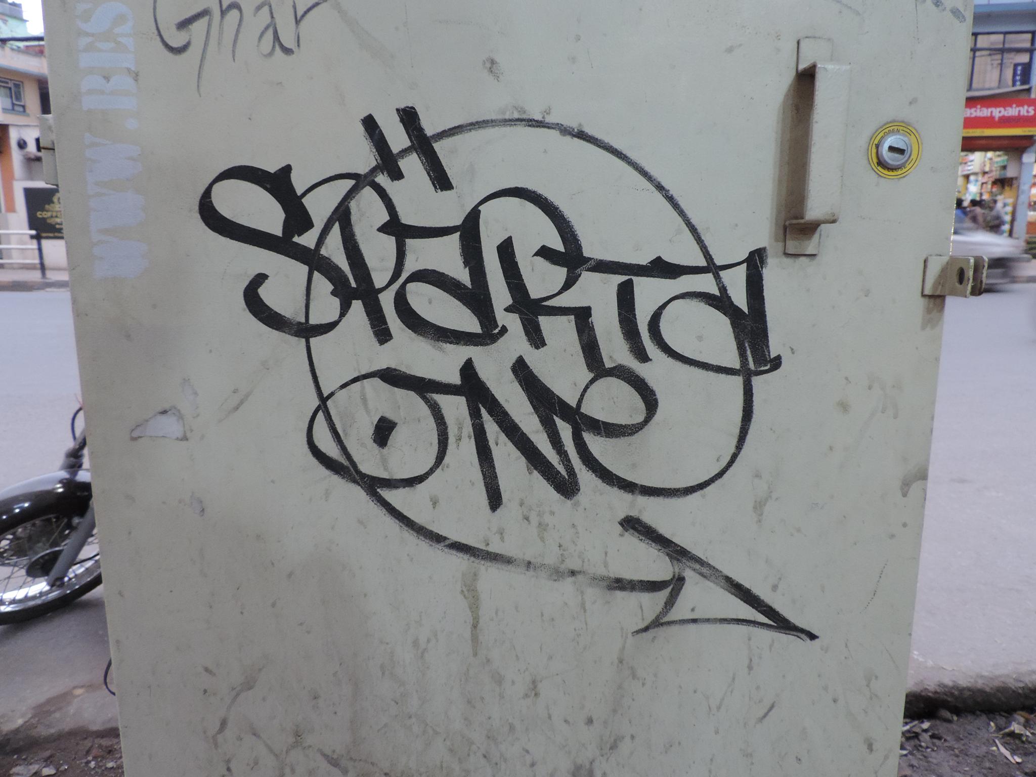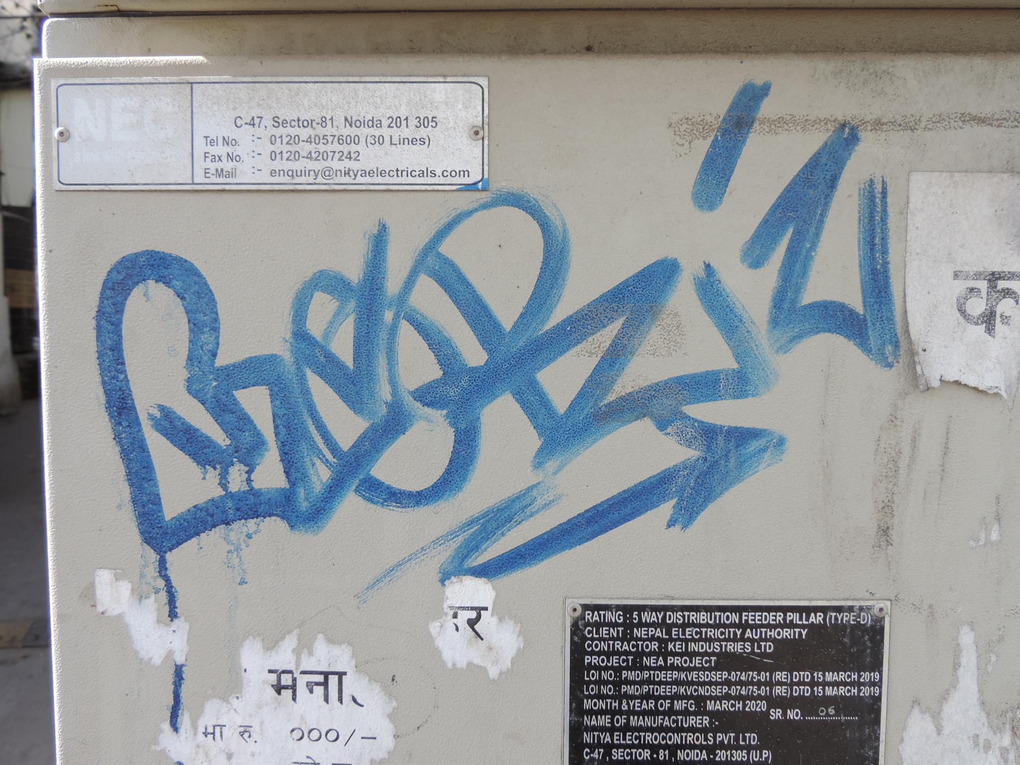 On this page, we’re showing you exclusively tags and signatures from the Thamel district in western Kathmandu. These are names written with markers, spray cans or other writing instruments. But here, we’re focusing solely on the tag itself and just the simple line of the signature. We have a lot of photos, so we’ve divided them into categories. Check as well the pages for the Thamel district featuring Throw-Ups & Bombings, Graffiti Letters & Stylewriting, Streetart & Characters and the Amrit Marg Collaboration Wall.