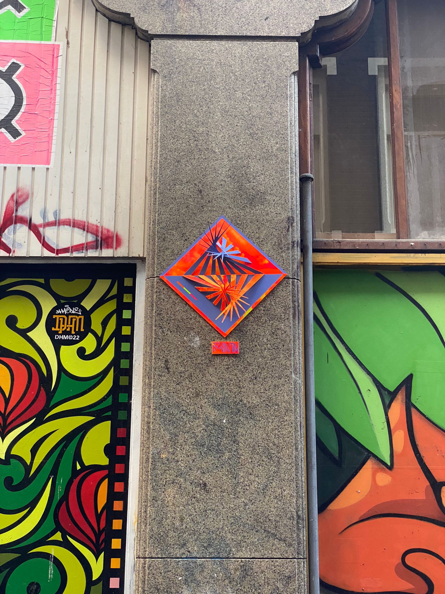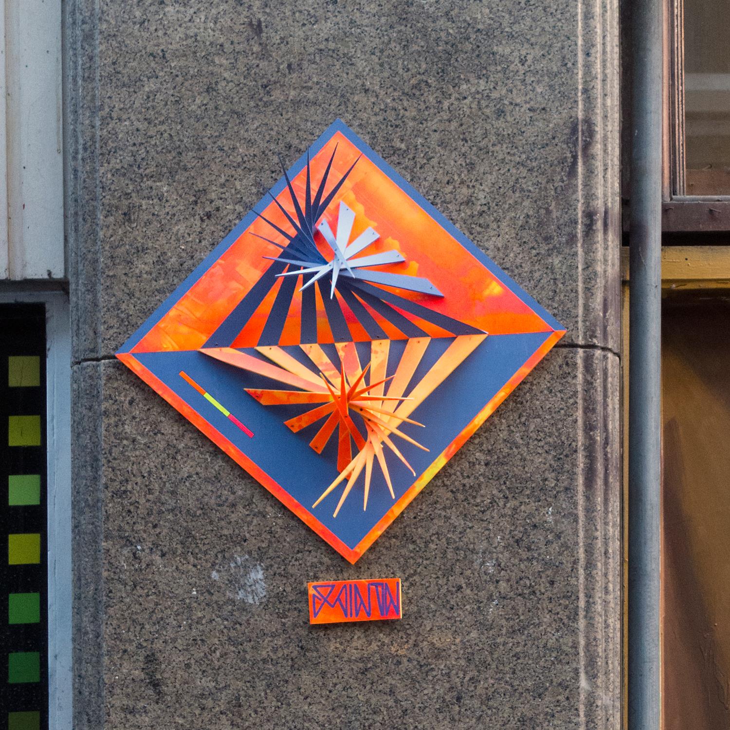 You can find those creative 3d sculptures of mixed media made by DMINTN at several places throughout the city. Not big, but a small abstract addition to the boring grey wall. Very interesting! The artist is originally from Italy, but is meanwhile based and active in Amsterdam, Netherlands and London, UK. There are more objects of this installation series located at Eggertstraat 4, Hobbemastraat 10 and Van Baerlestraat 33.
