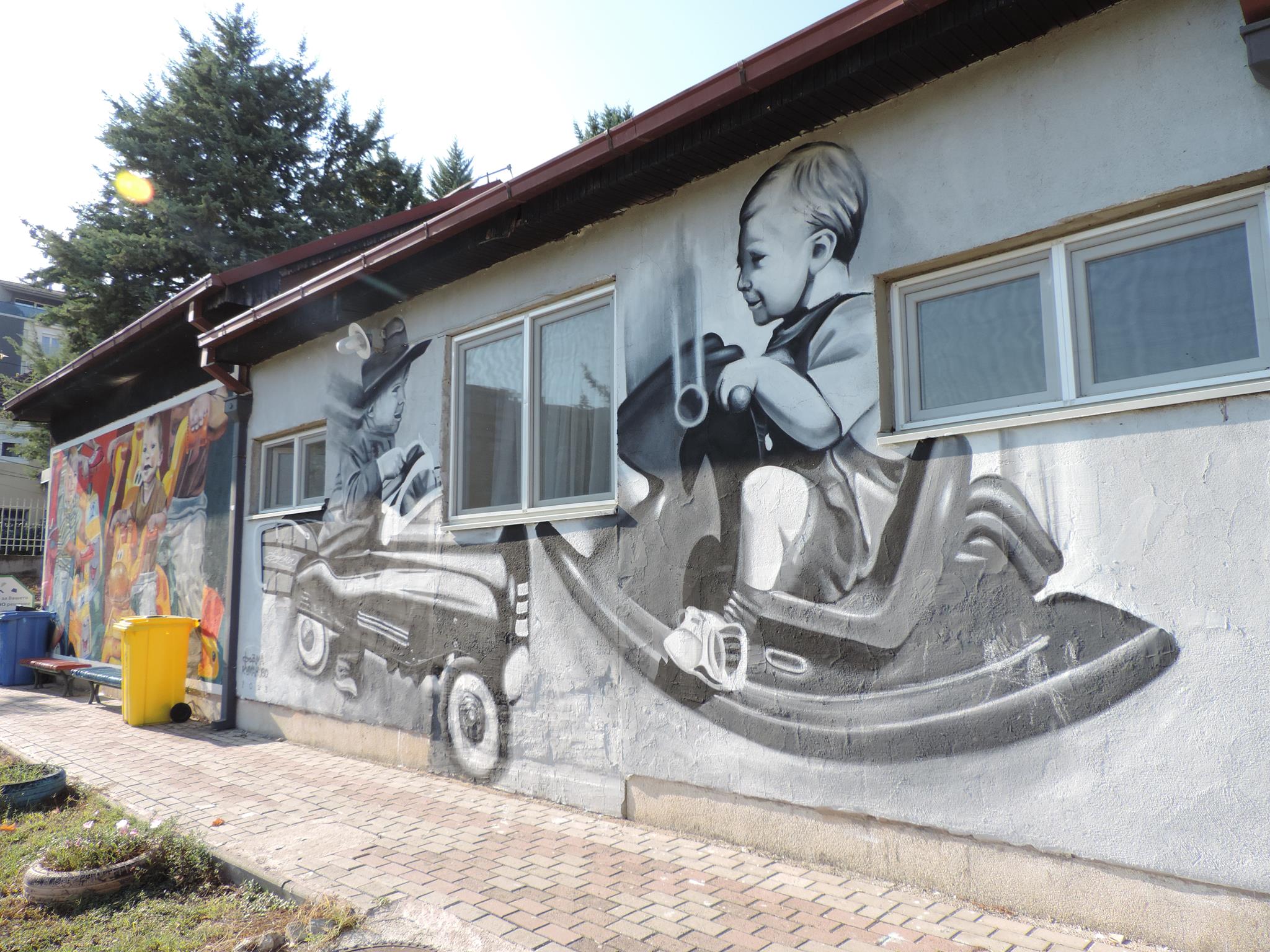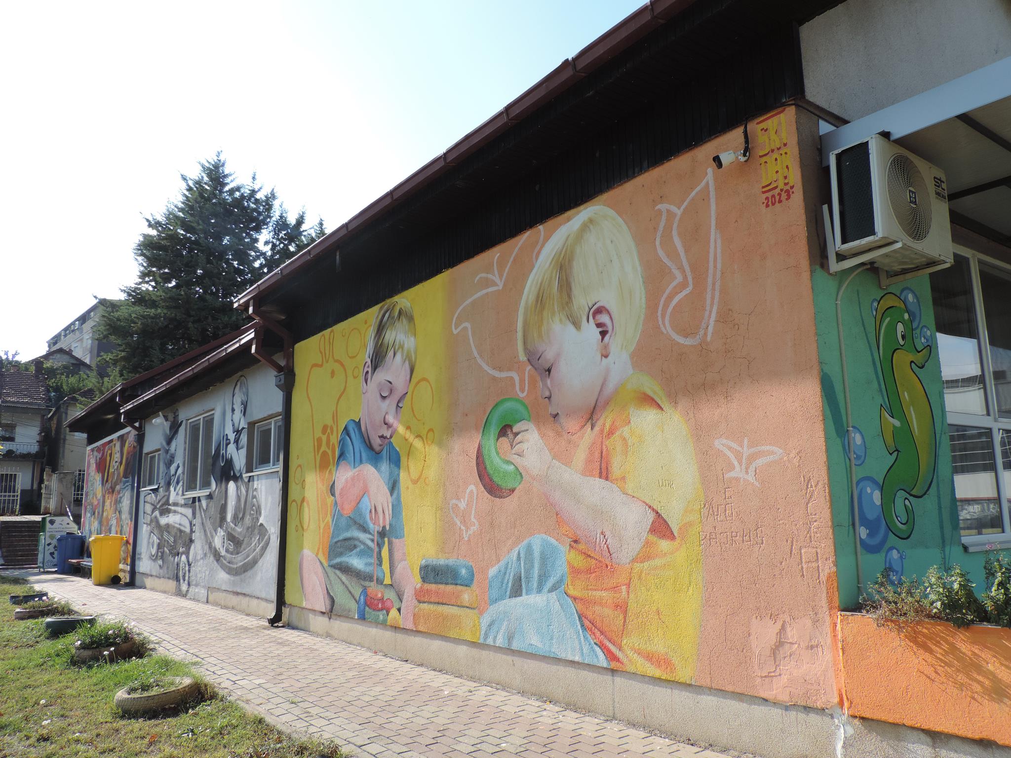 NORTH MACEDONIA: Streetart Kumanovo – Mosha Pijade – Razvigorche – Urban Art Kindergarten – FORMA KUMANOVO – MOLERAJ, SKIDAR & TRENDO