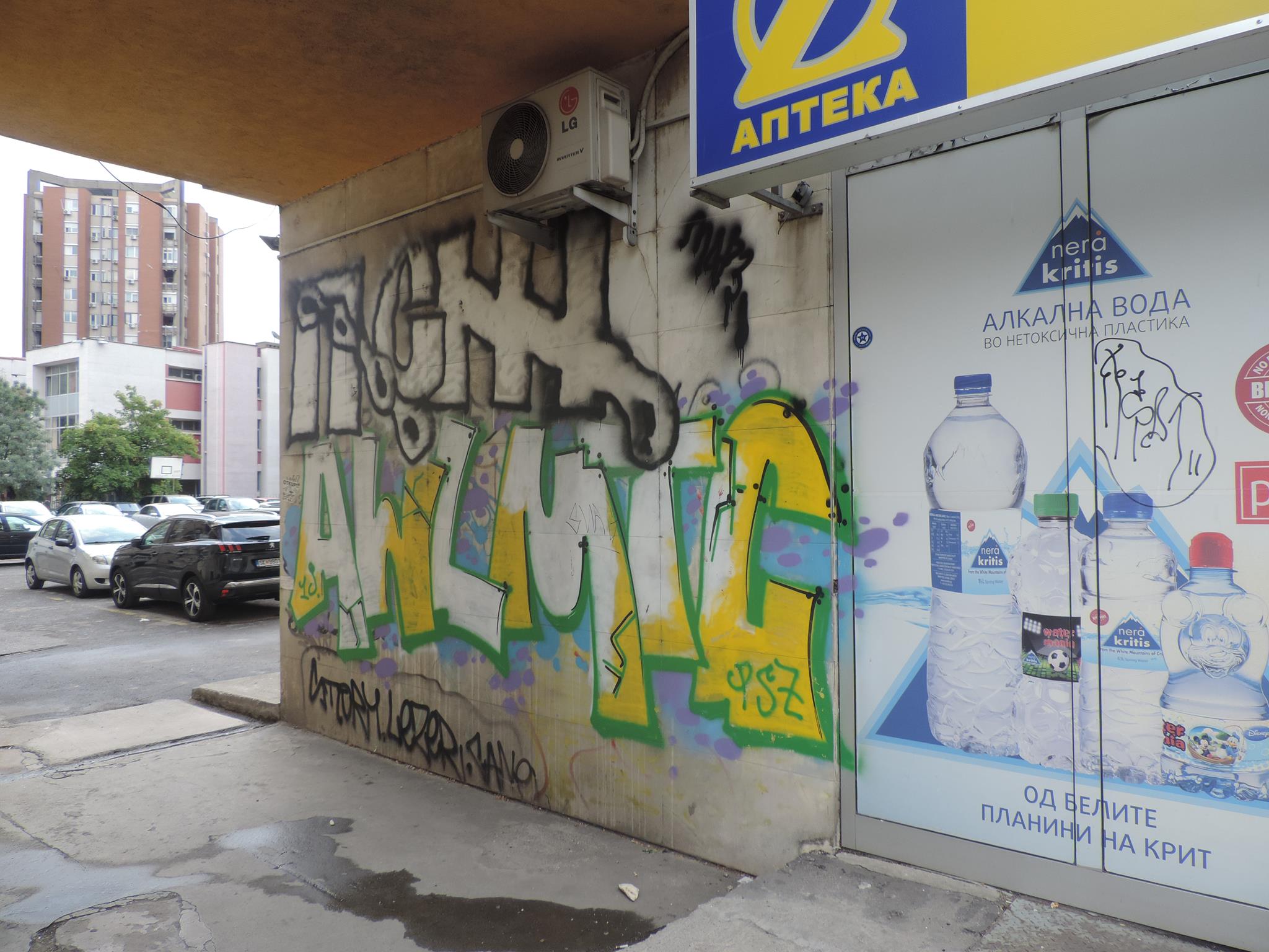 NORTH MACEDONIA: Streetart Skopje – Centar – Boulevard Saint Clement of Ohrid 21 – AWL, JOPY, MTC & others