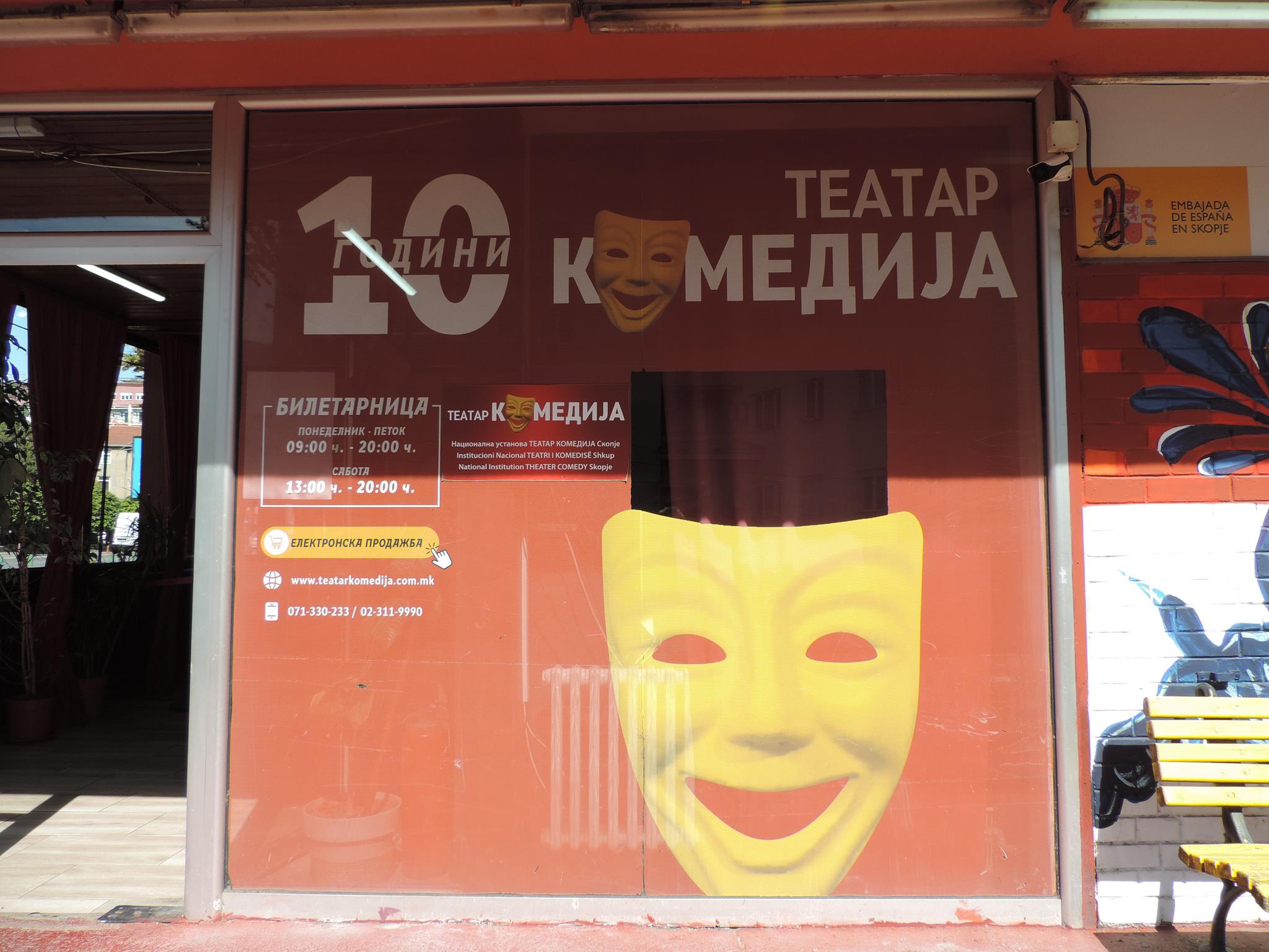 The TEATAR KOMEDIJA is a genre-specific theater that nurtures all sub-genres of comedy and its repertoire includes premieres by Macedonian authors, comedies from the classics of world literature, and contemporary comedies from world dramaturgy. Although it is the youngest national theater institution in Macedonia, the Comedy Theater very quickly managed to establish itself as a serious and successful theater institution, which stands out from the rest in terms of the number of premieres and performances, the number of guest appearances and participations in festivals in the country and abroad, as well as the number of awards won at national and international festivals.  –  Teatar Komedija