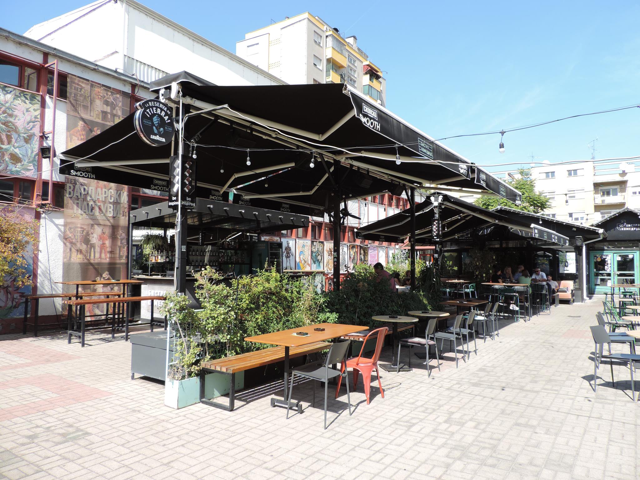 The comedy theatre TEATAR KOMEDIJA as a national institution was established in November 2011, and its official opening was marked by the premiere of the play „Ah, My Love“, directed by Kole Angelovski, on World Theatre Day at March 27th in 2012. From its founding until 2014, when it moved into the building of the former Center Theatre, it used the stage of the Skopje Drama Theatre. Fantastic plays and creative projects are constantly being performed in this culture space. The building complex also serves as an urban art gallery and features countless beautiful murals on its facades. Additionally there are ateliers and studios around the permisses, and also a bar and a cocktail lounge to have a relaxed break.