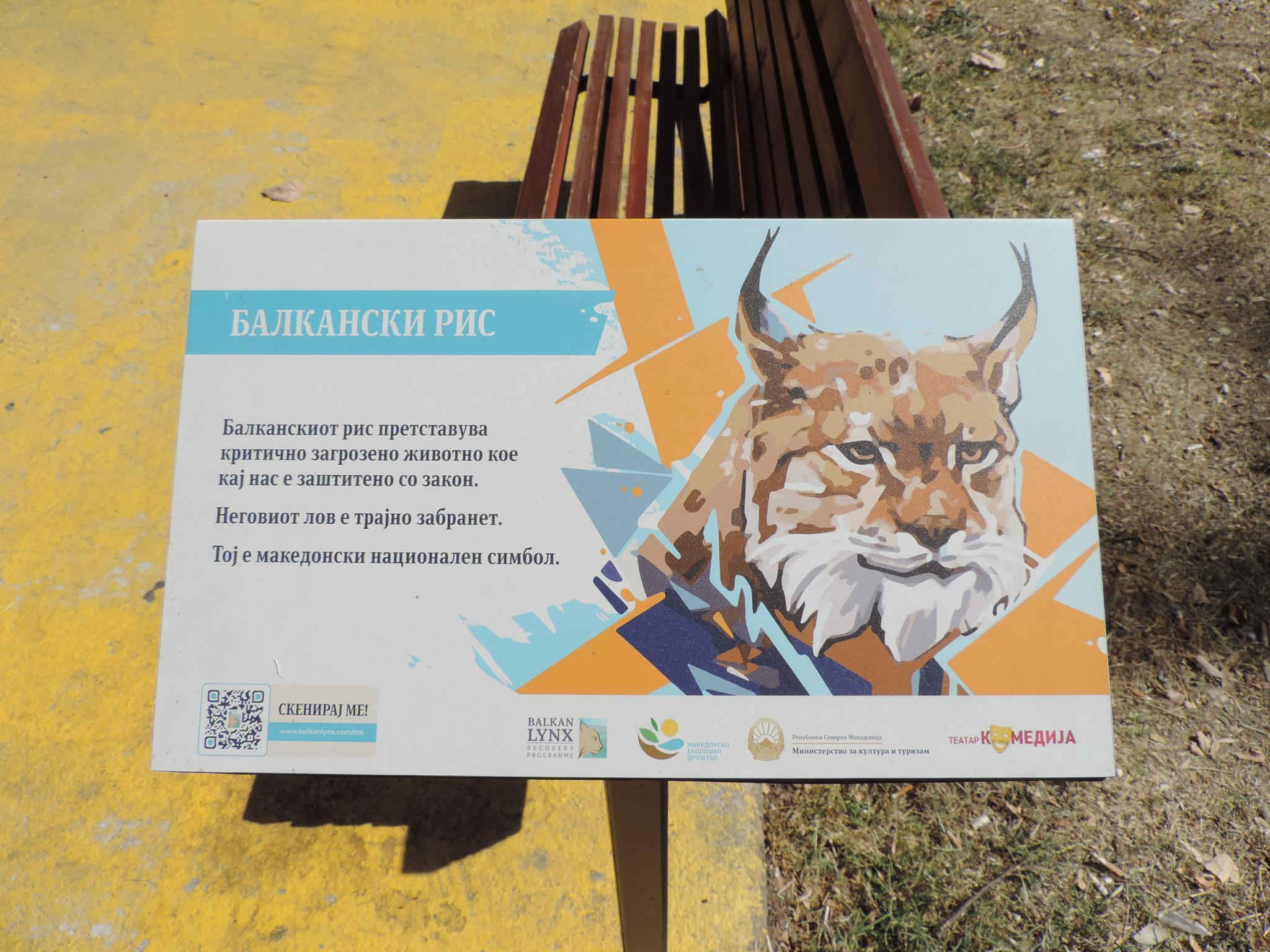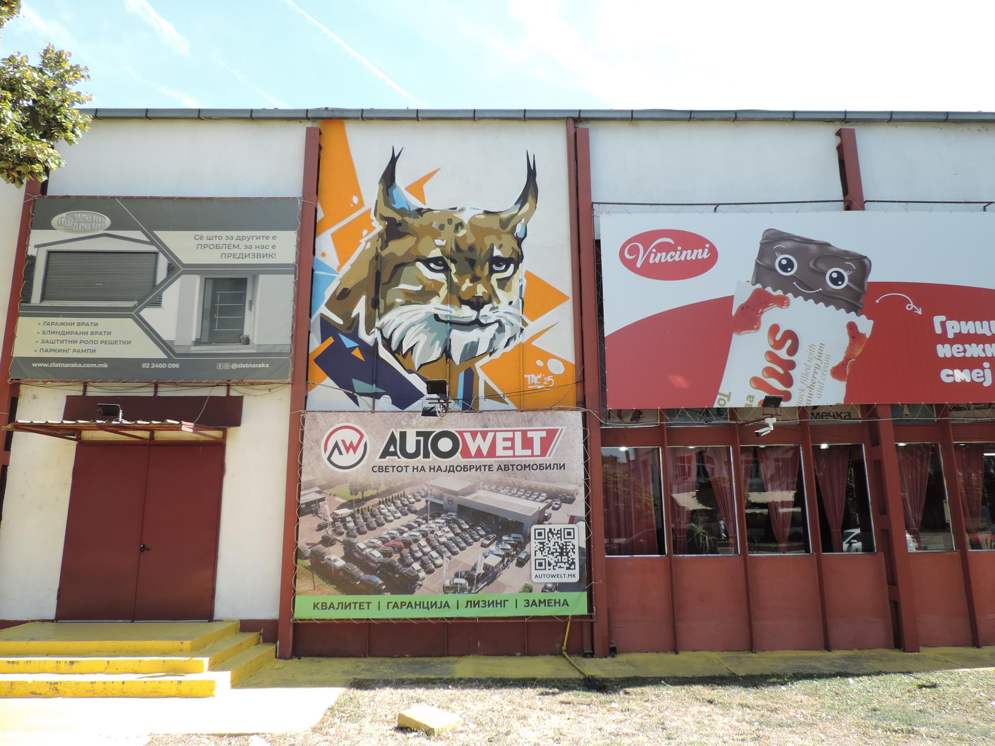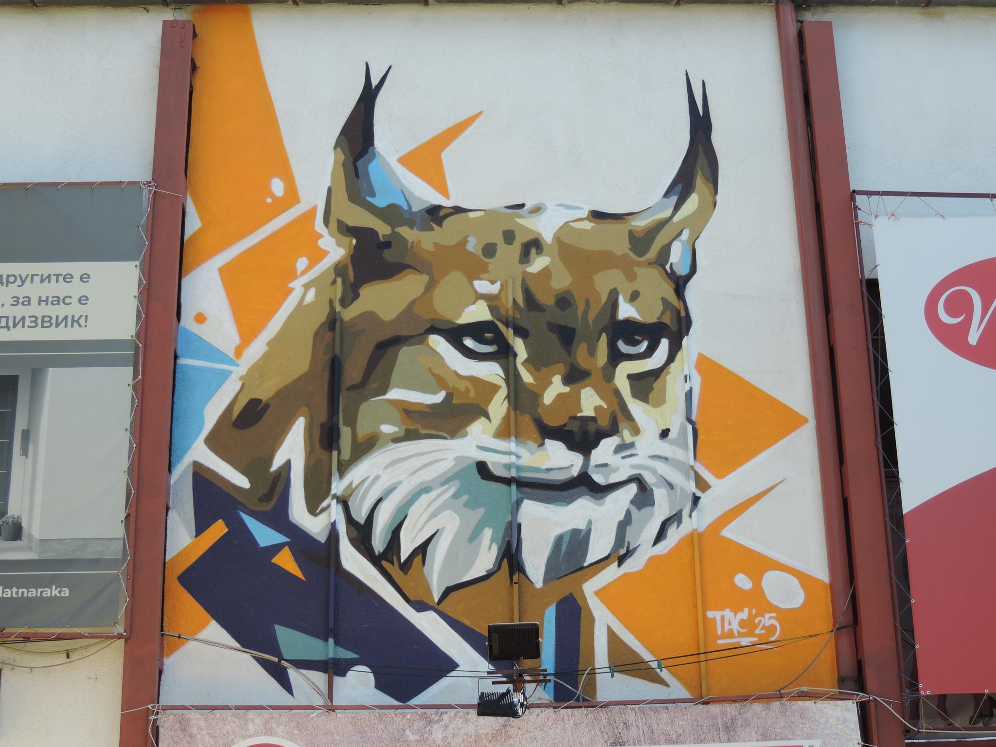 The Balkan lynx is a critically endangered animal that is protected by law in our country. Its hunting is permanently prohibited. It is a Macedonian national symbol. This mural was created in honor of the majestic animal and to draw attention to its threatened existence, which is primarily caused by us humans. The work was created by the BALKAN LYNX RECOVERY PROGRAM with the support of the Macedonian Ecological Society, the Ministry of Culture and Toursim, and the Teatar Komedija.