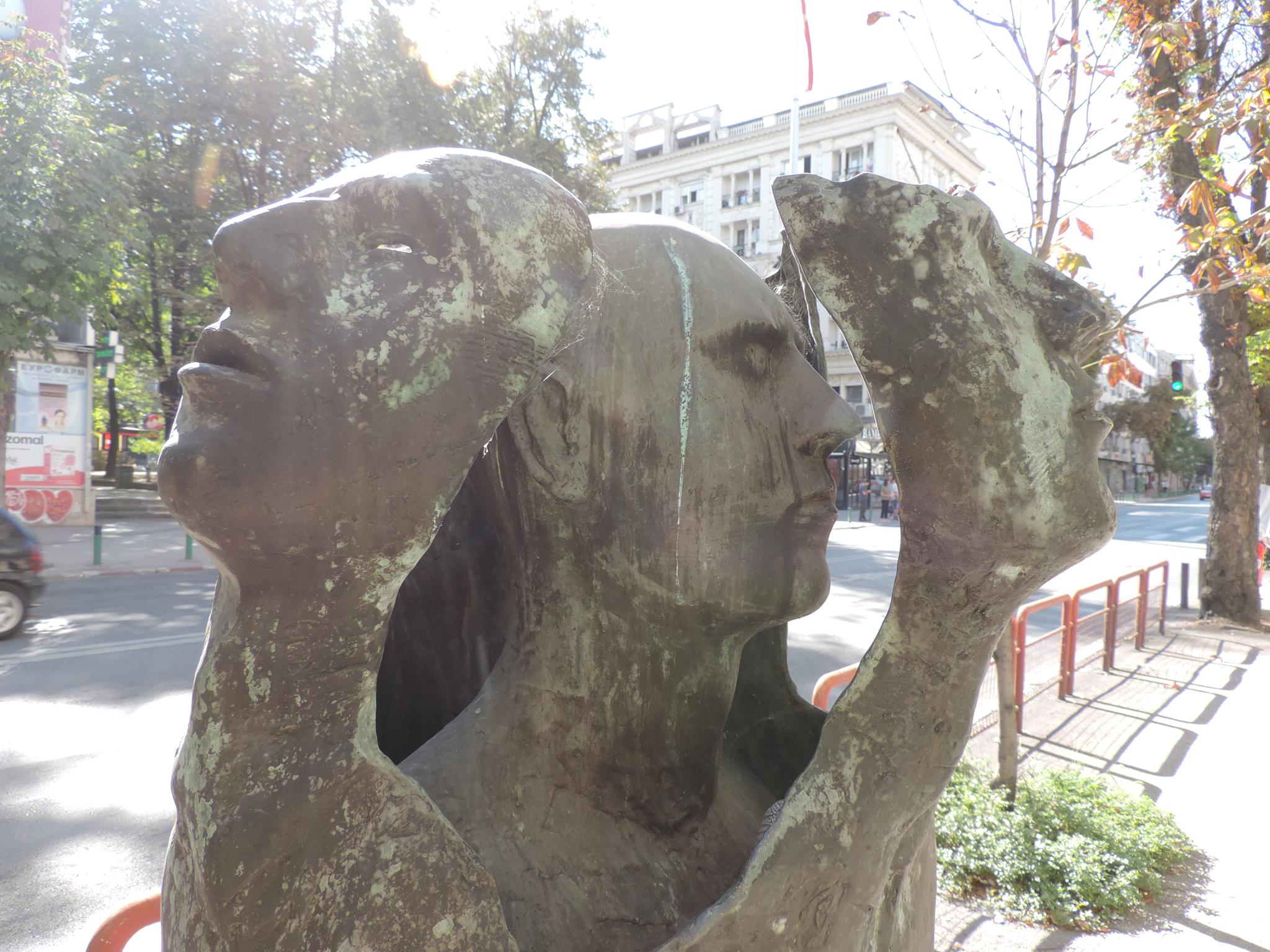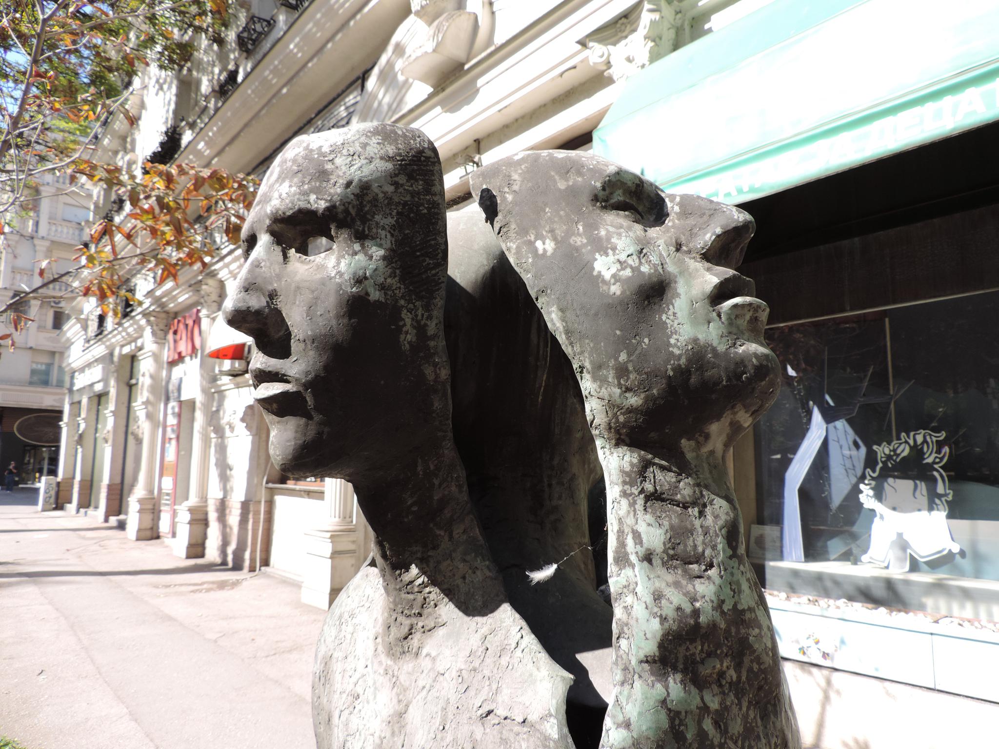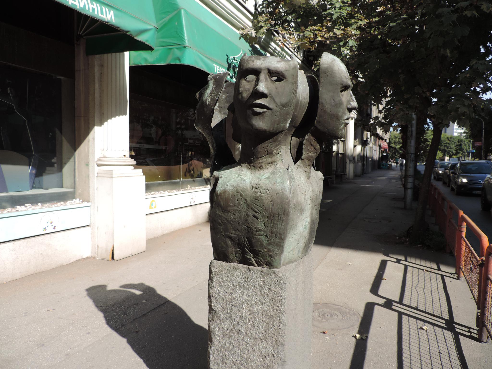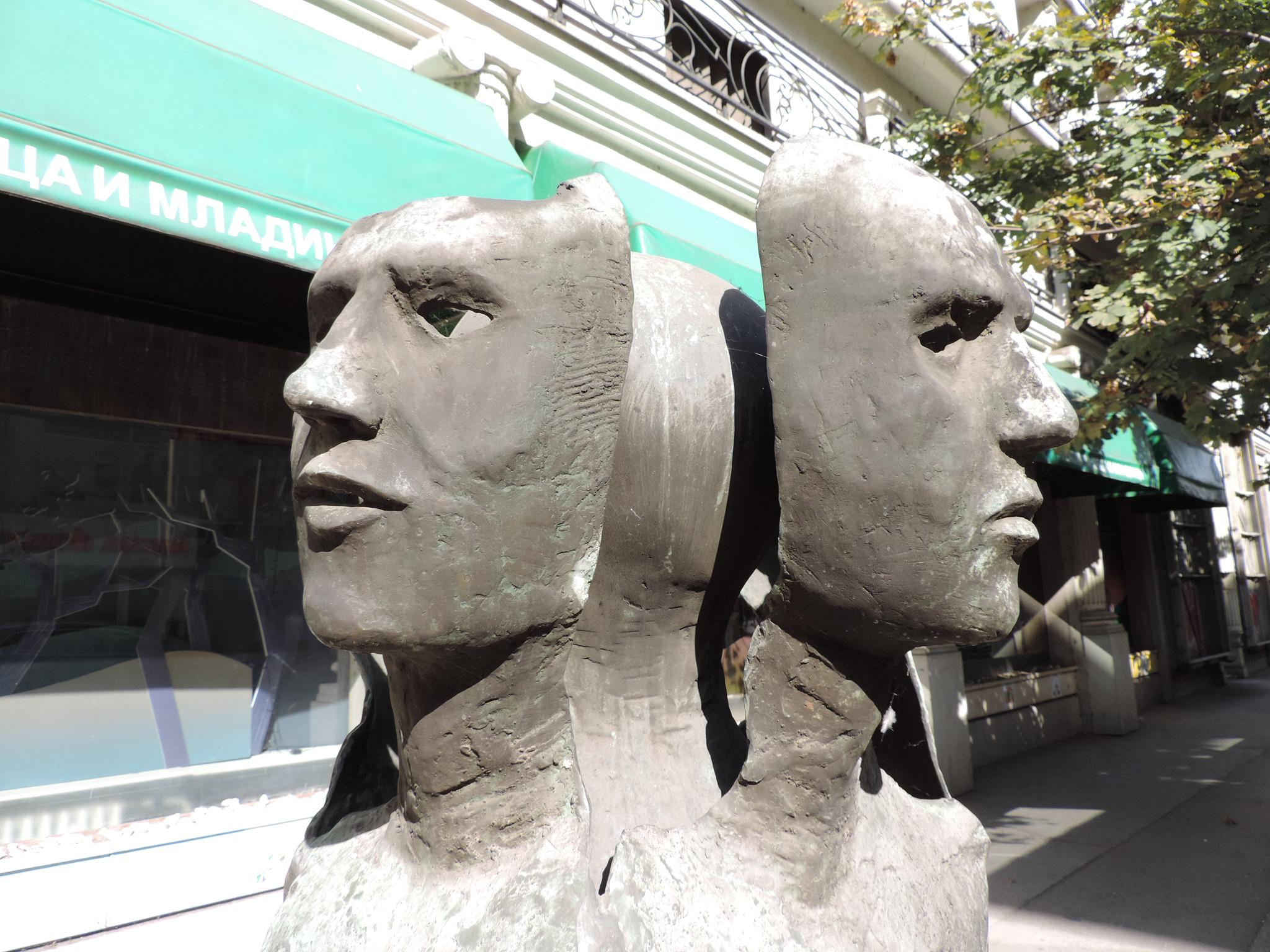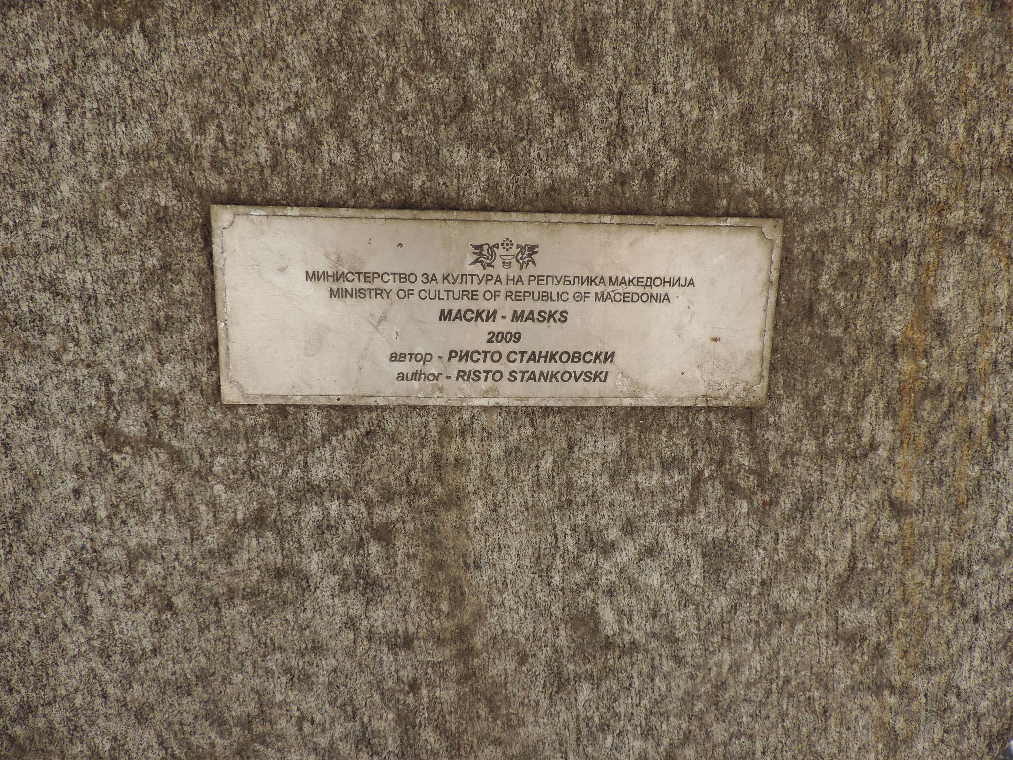This work of art is an interesting sculpture consisting of a head inside, surrounded by various masks. These represent the different roles we all take on and play in life, but behind them lies our true selves. The artwork was created by the artist RISTO STANKOVSKI in 2009 and curated by the Ministry of Culture.