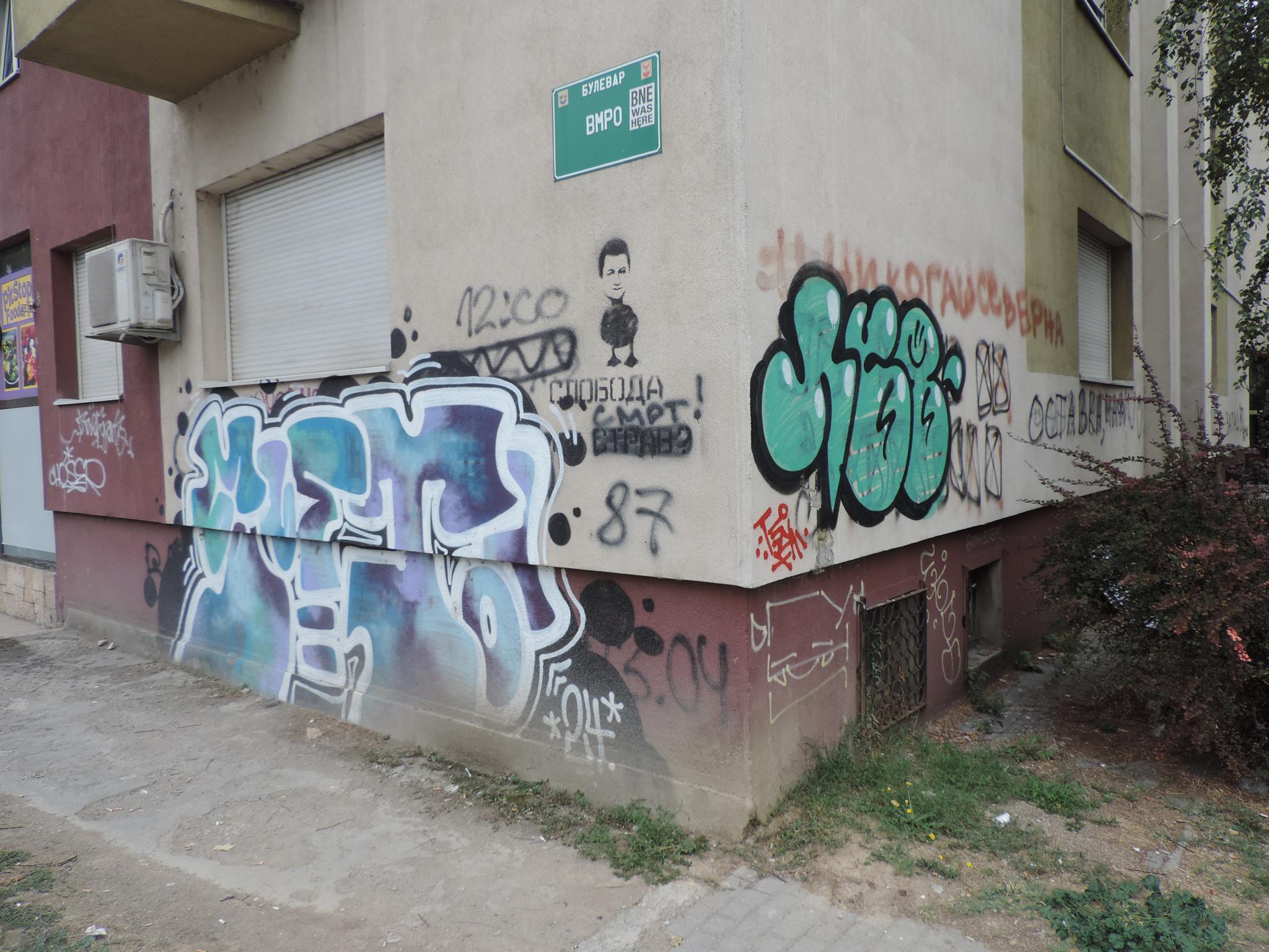 NORTH MACEDONIA: Streetart Skopje – Centar – Nikola Kljusev 14 – EWT & others