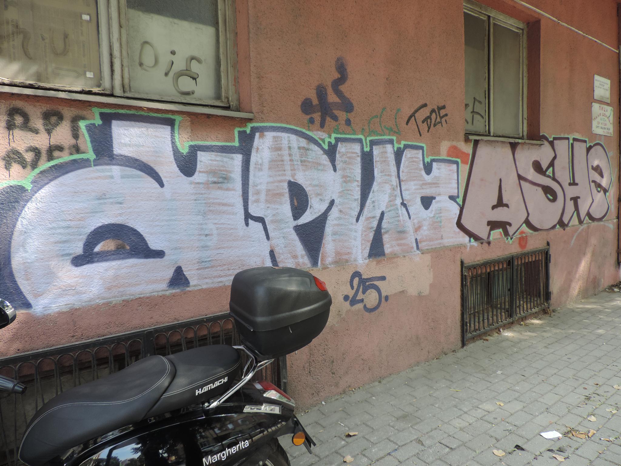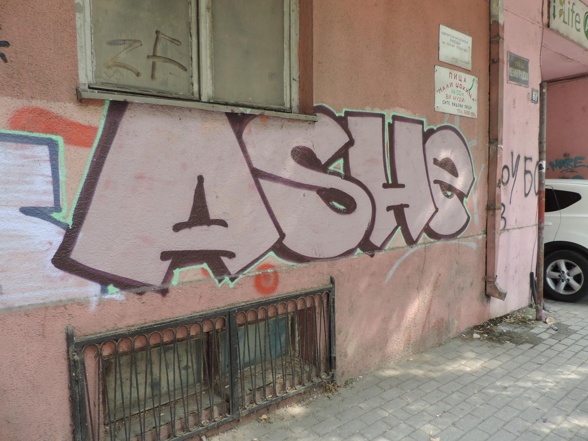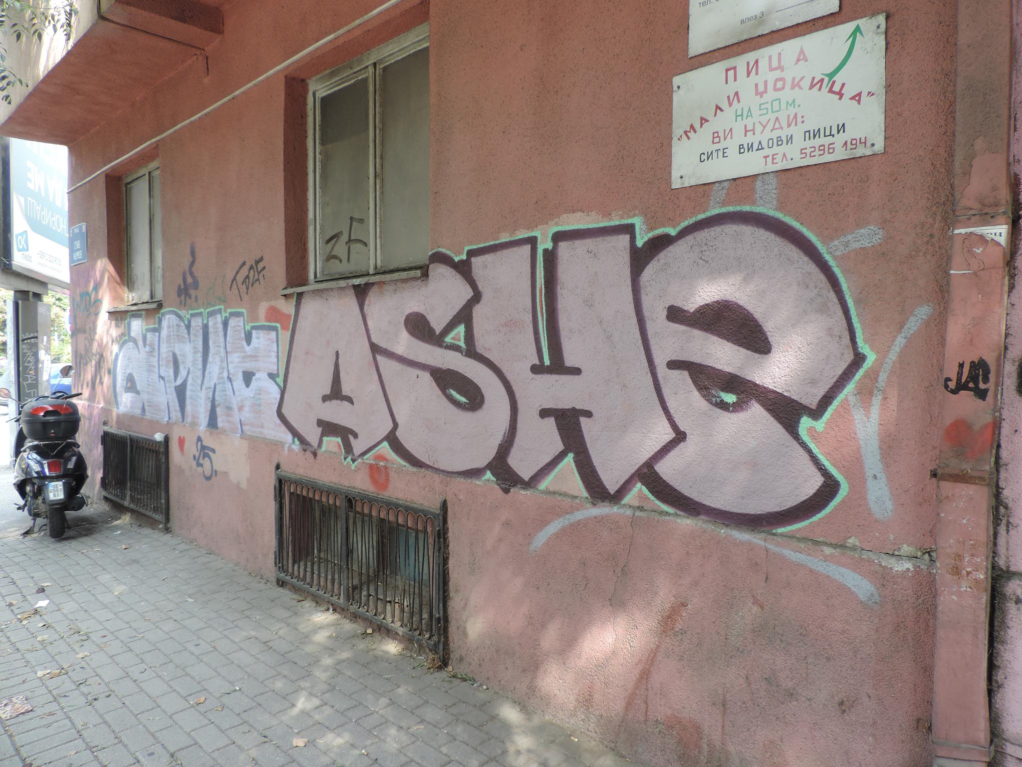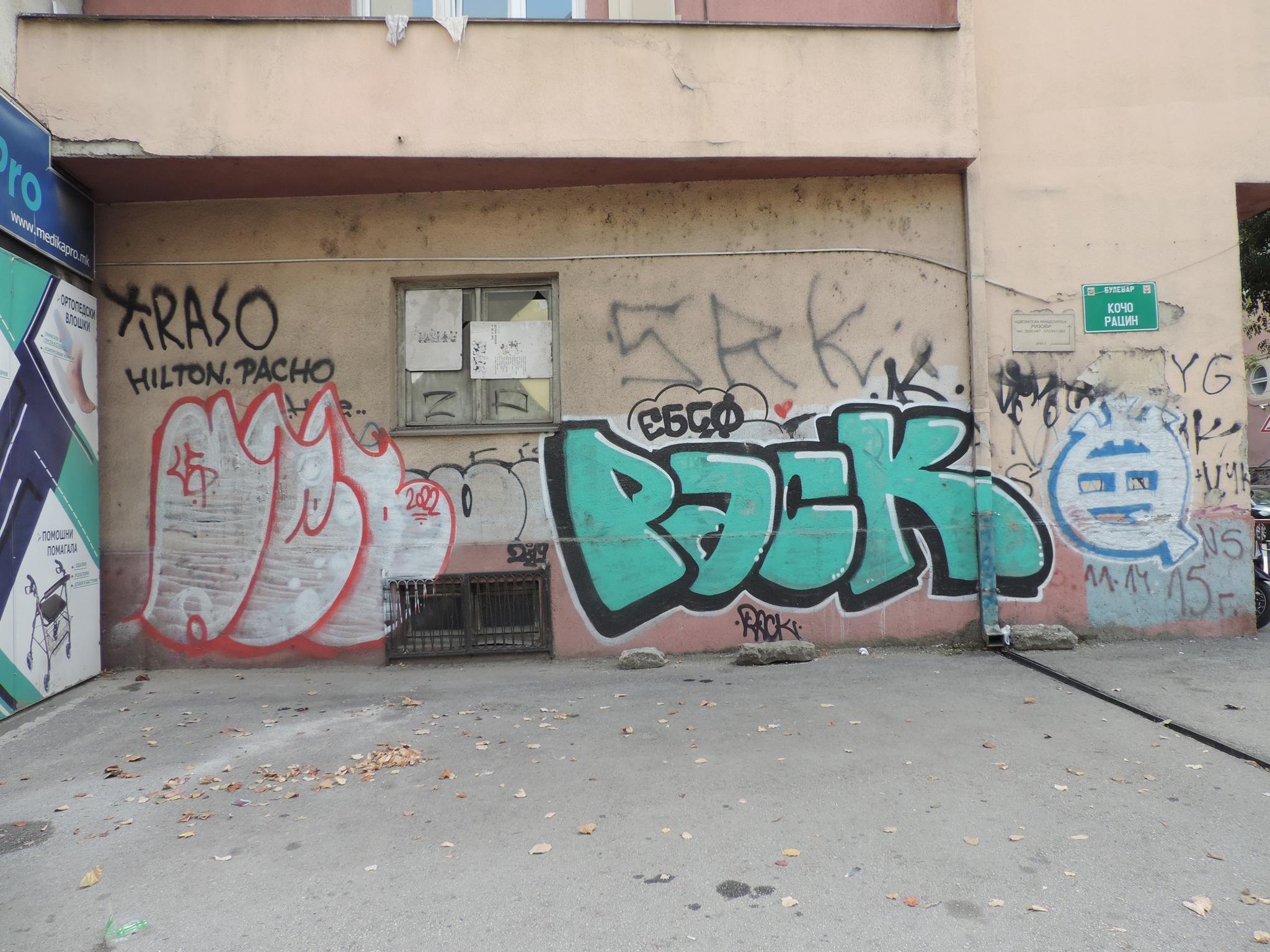 NORTH MACEDONIA: Streetart Skopje – Centar – Slavko Janevski 61 – ARIS, ASHE, RASK & others
