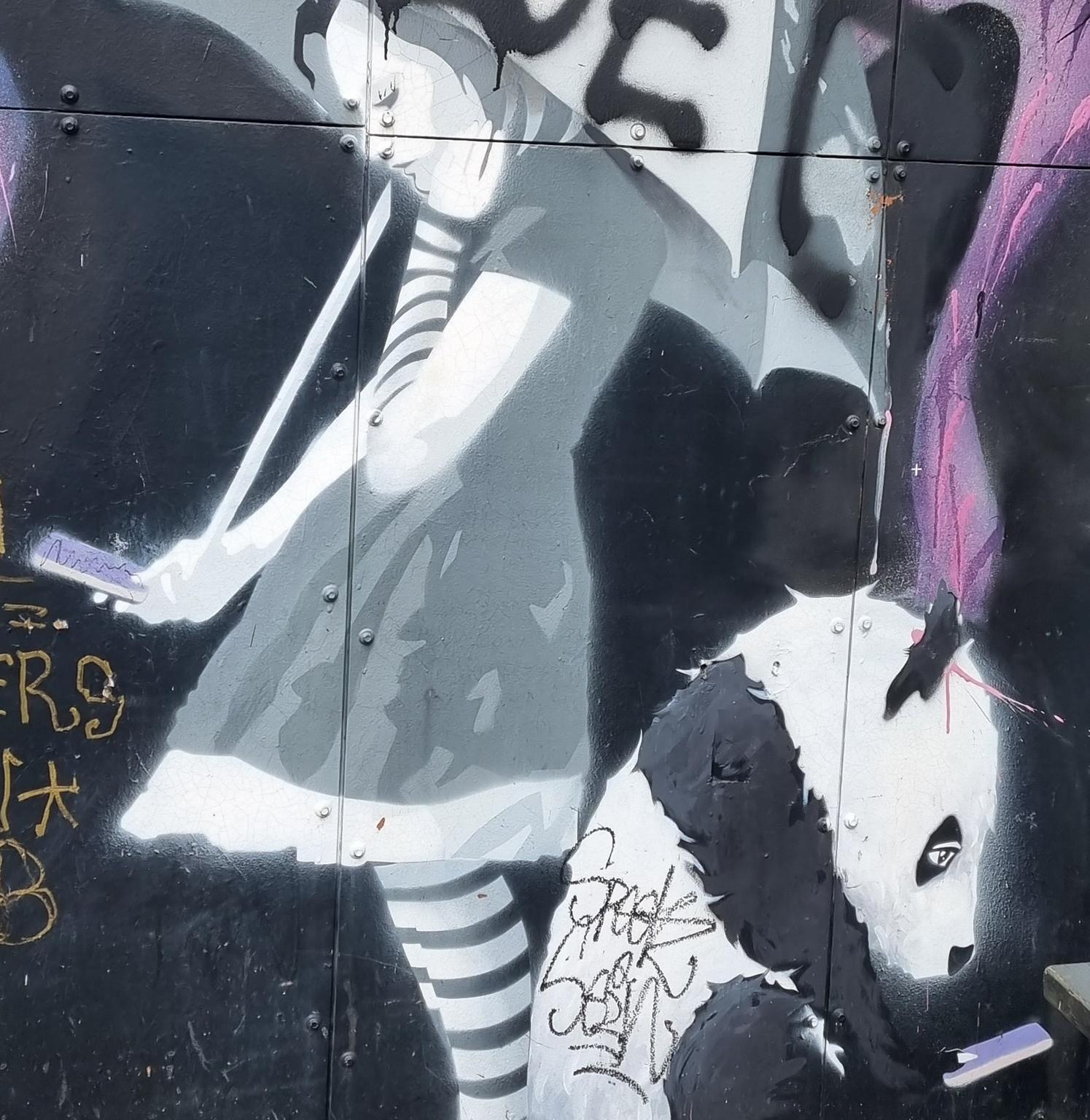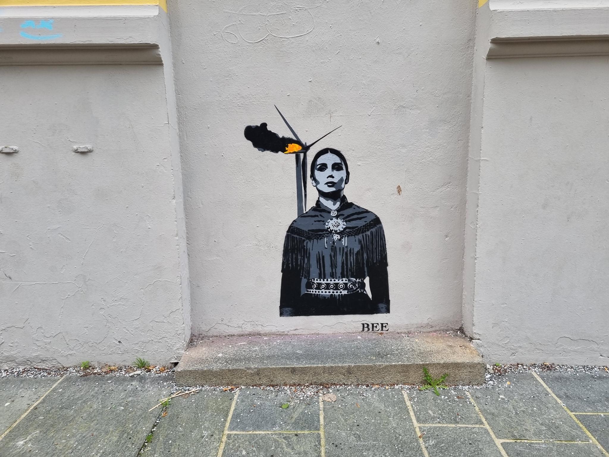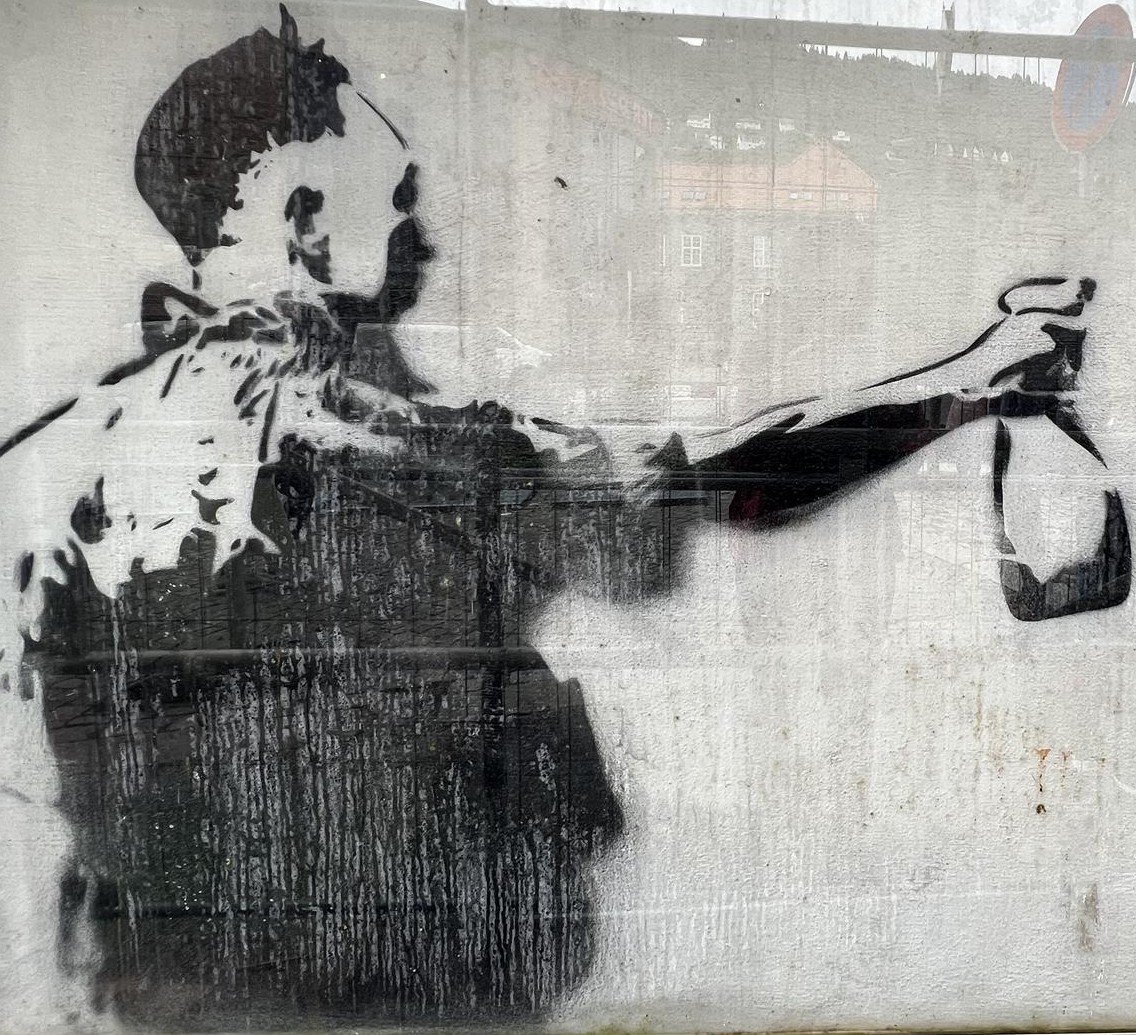 Since many years in Bergen stencil art has established itself as a distinct form among the many urban artworks. Artists use stencils to quickly apply detailed motifs to house walls and fences, often with socially critical or humorous messages. One of the most legendary representatives is DOLK, who is often compared to BANKSY in terms of style and popularity. He is considered one of the pioneers of Norwegian streetart and is known for his iconic motifs, which often combine pop culture, humor, and irony. Another luminary is VLEK, who often paints surreal and grotesque figures on walls and plays with shapes and colors to put everyday life into a new perspective. You can also find a lot by AFK, who uses stencils to convey political statements and socially critical messages, often with clear, minimalist imagery. There are works by many other artists, especially in central districts such as Nordnes and Sandviken, but also in hidden alleys off the beaten track. Here is a collection exclusively of stencil works, but also have a look on the page for other urban art in Bergen. The photos were taken by graffiti hunter and streetart lover MAZZANTI. Check out her instagram channel, where she regularly presents great pictures from countries all over the world.