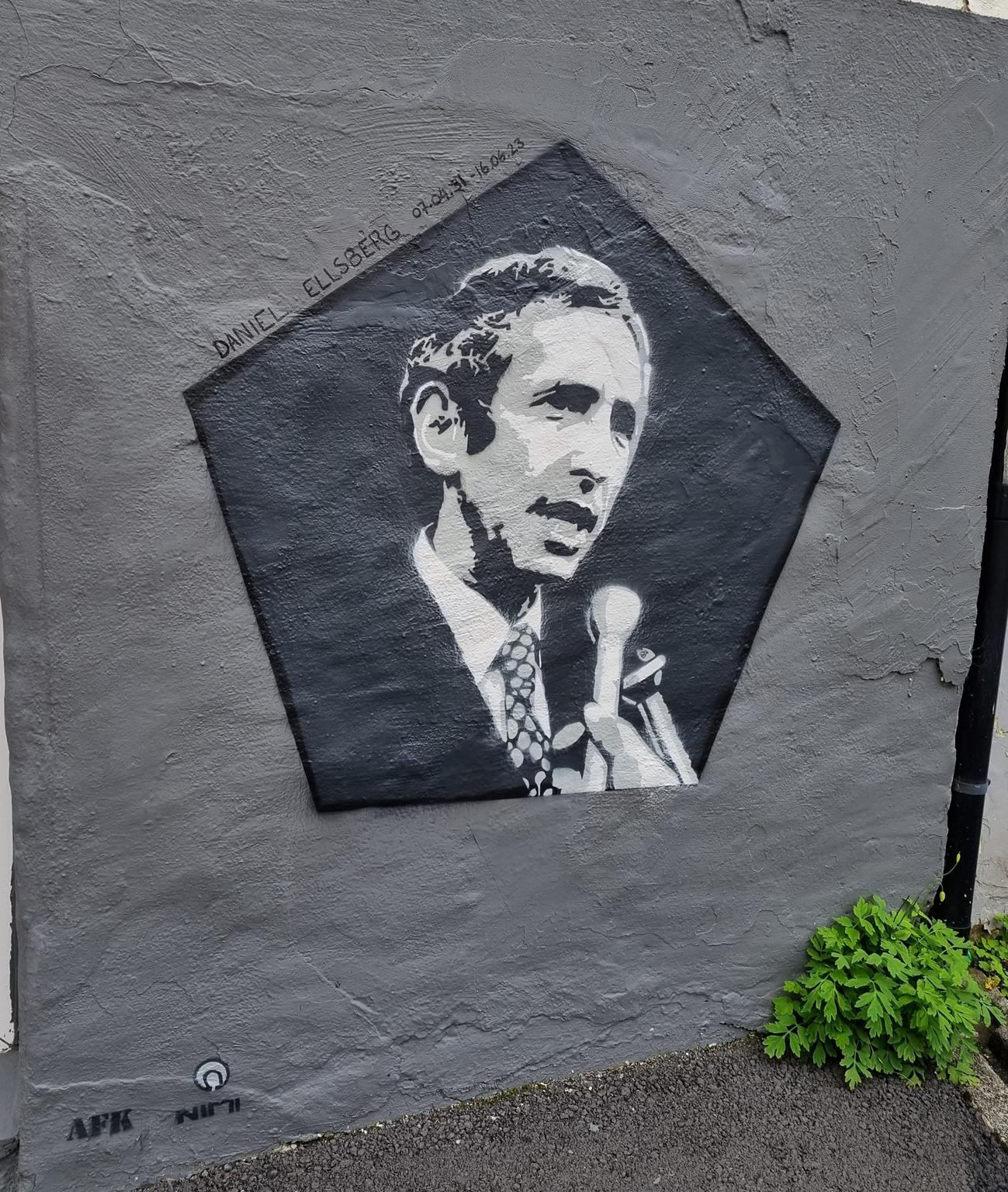 The artists about the artwork: „Honoring the Courageous Daniel Ellsberg, a whistleblower who fearlessly exposed government secrecy and inspired generations to fight for truth and justice. His legacy will forever remind us of the power of one individual’s unwavering resolve to challenge the status quo and shape history. Rest in power, Daniel Ellsberg.“ – AFK – Daniel Ellsberg was born on 7th April 1931 in Chicago, and died on 16th June 2023 in Kensington, California, USA.