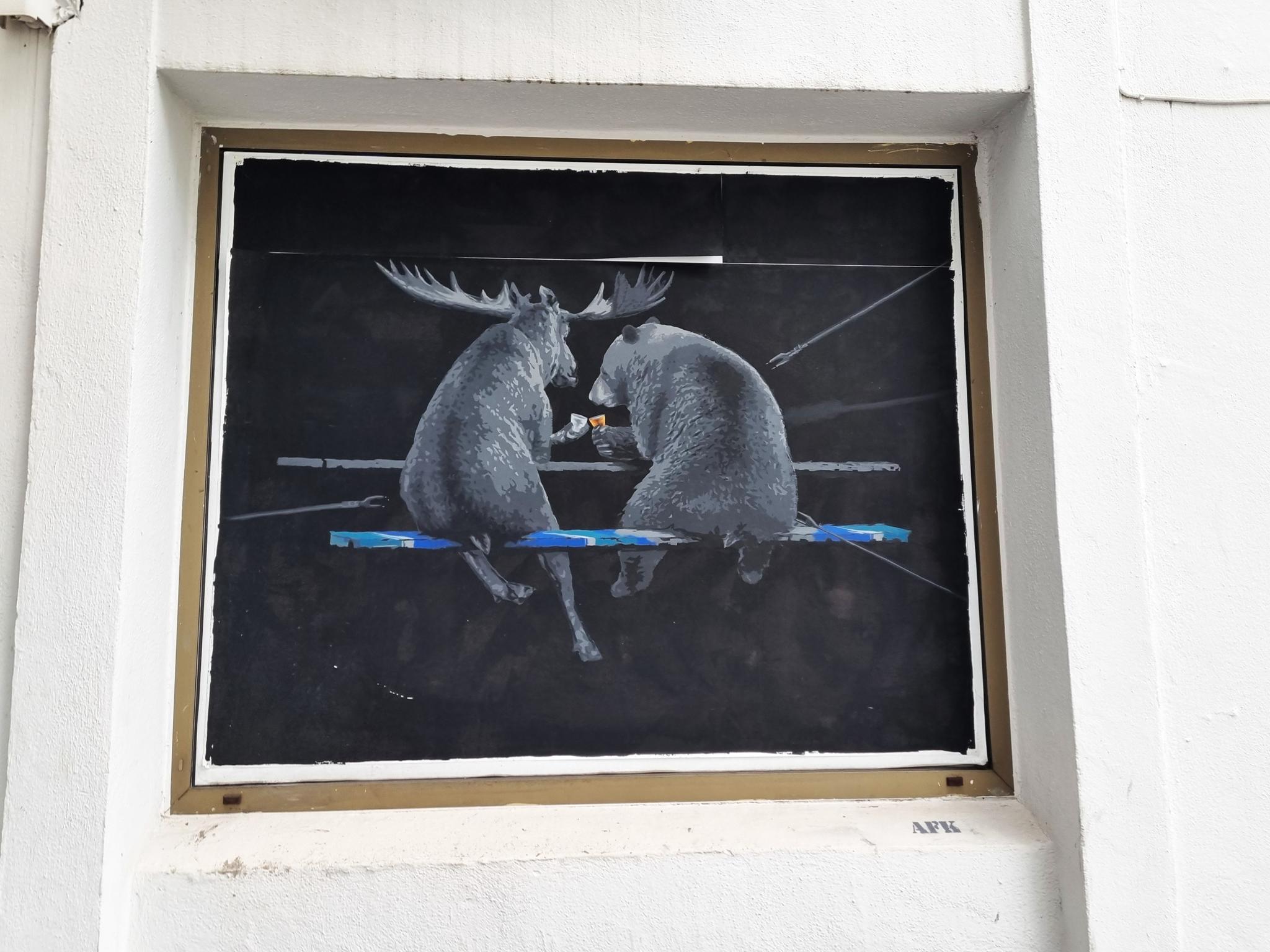 The artist about the artwork: „Remember, there are many brave Russians who oppose their war mongering and propaganda, just as we have those who do ours.“ – AFK