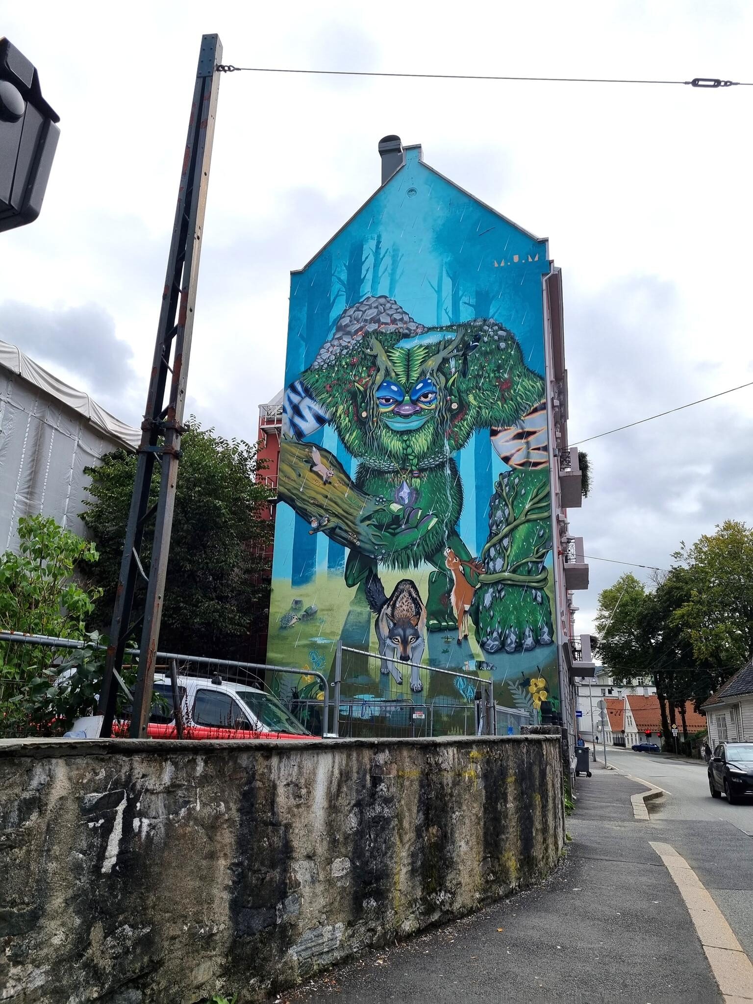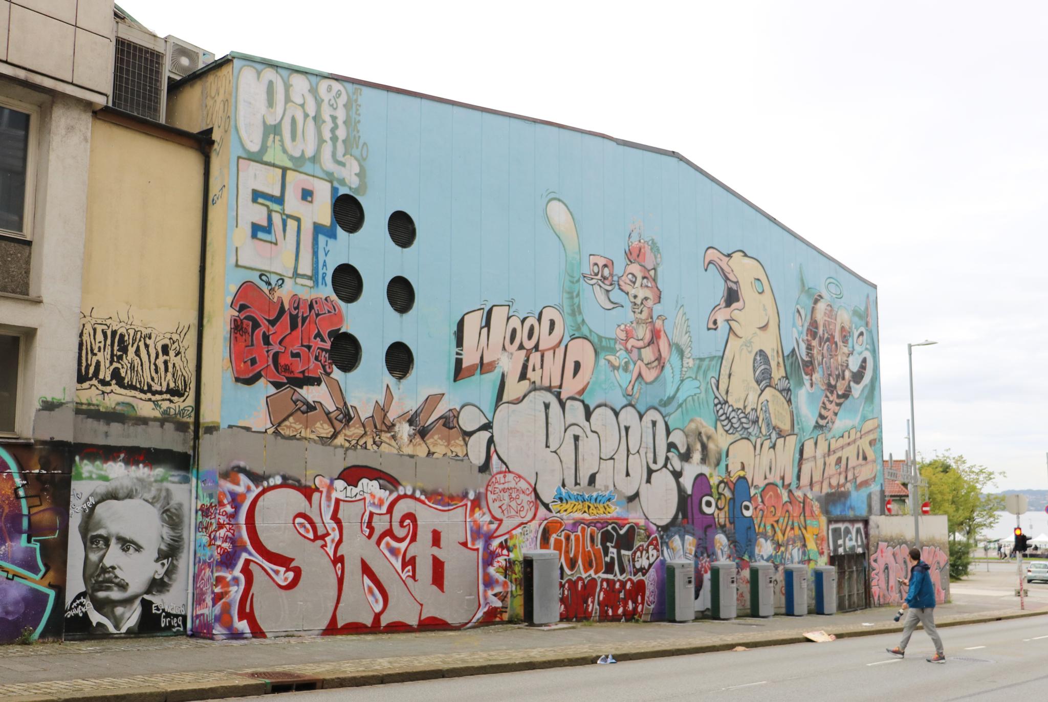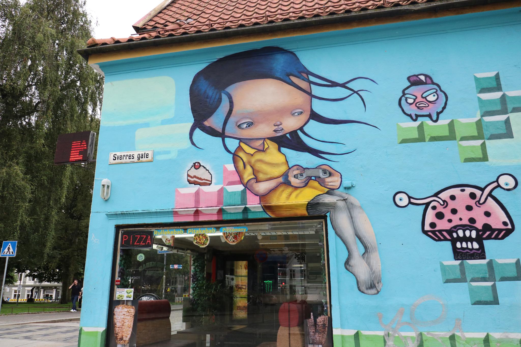 Bergen is with 290.000 inhabitants Norway’s second largest city and is located on the west coast of the country, surrounded by seven mountains and deep fjords. The historic Hanseatic quarter of Bryggen with its colorful wooden houses, which is a UNESCO World Heritage Site, is particularly worth seeing, as well the lively fish market, the Bergenhus Fortress or the viewing platform on Fløyen, accessible by the Fløibanen funicular, offers an impressive view of the city and the sea. In addition to culture and nature, Bergen has also established itself as a center for modern streetart in recent years, in strong contrast to many other cities in Norway, where there is a zero-tolerance policy towards graffiti. In Bergen, however, the streets are colorful and artists from all over the world have transformed numerous building walls into colorful works of art. The city has a rich local art scene with many artists from different fields. Stencil creations are particularly well represented here; for those artworks take a look at the individual page Bergen Stencils. Here we have a collection with magnificent creations photographed by graffiti hunter and streetart lover MAZZANTI. Check out her instagram channel, where she regularly presents great pictures from countries all over the world.