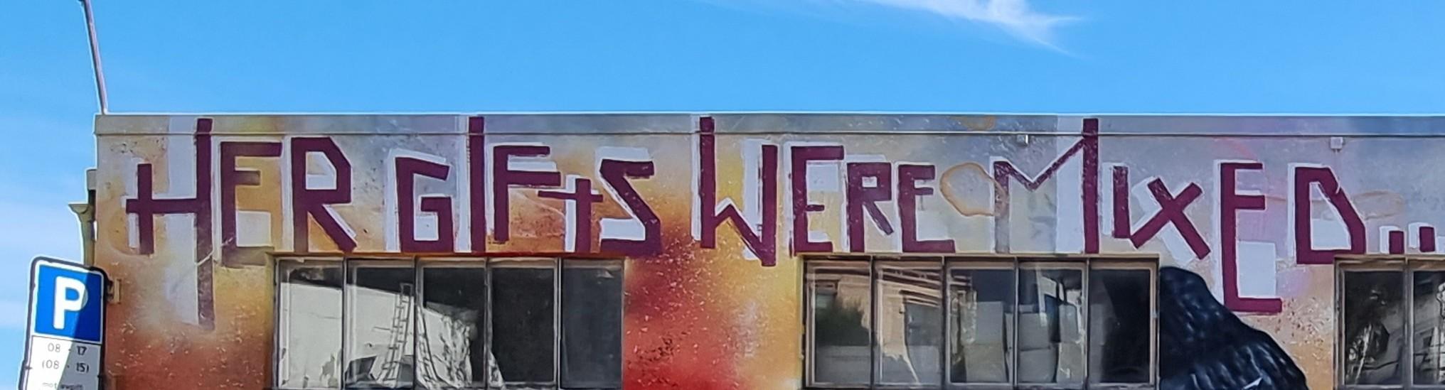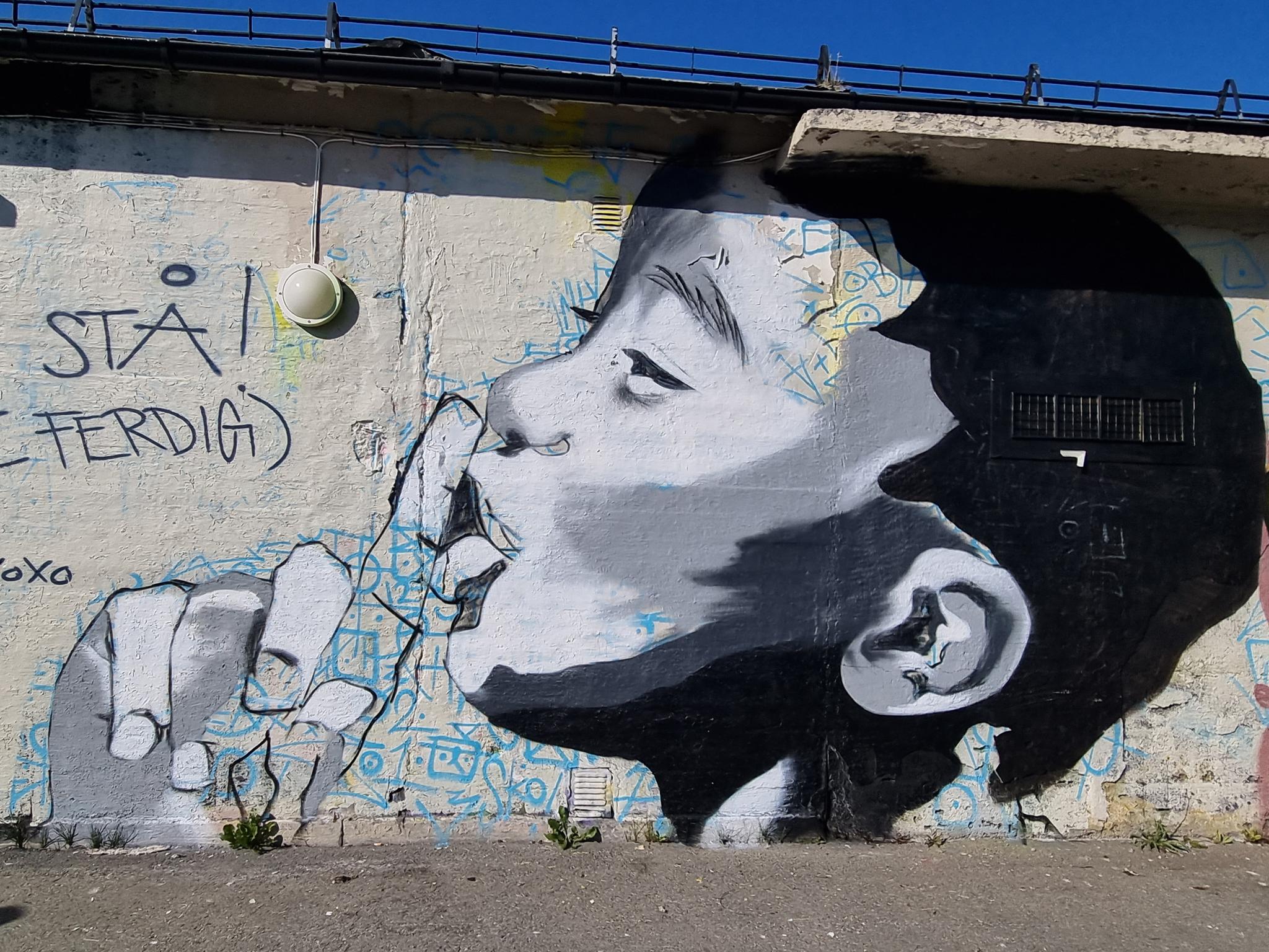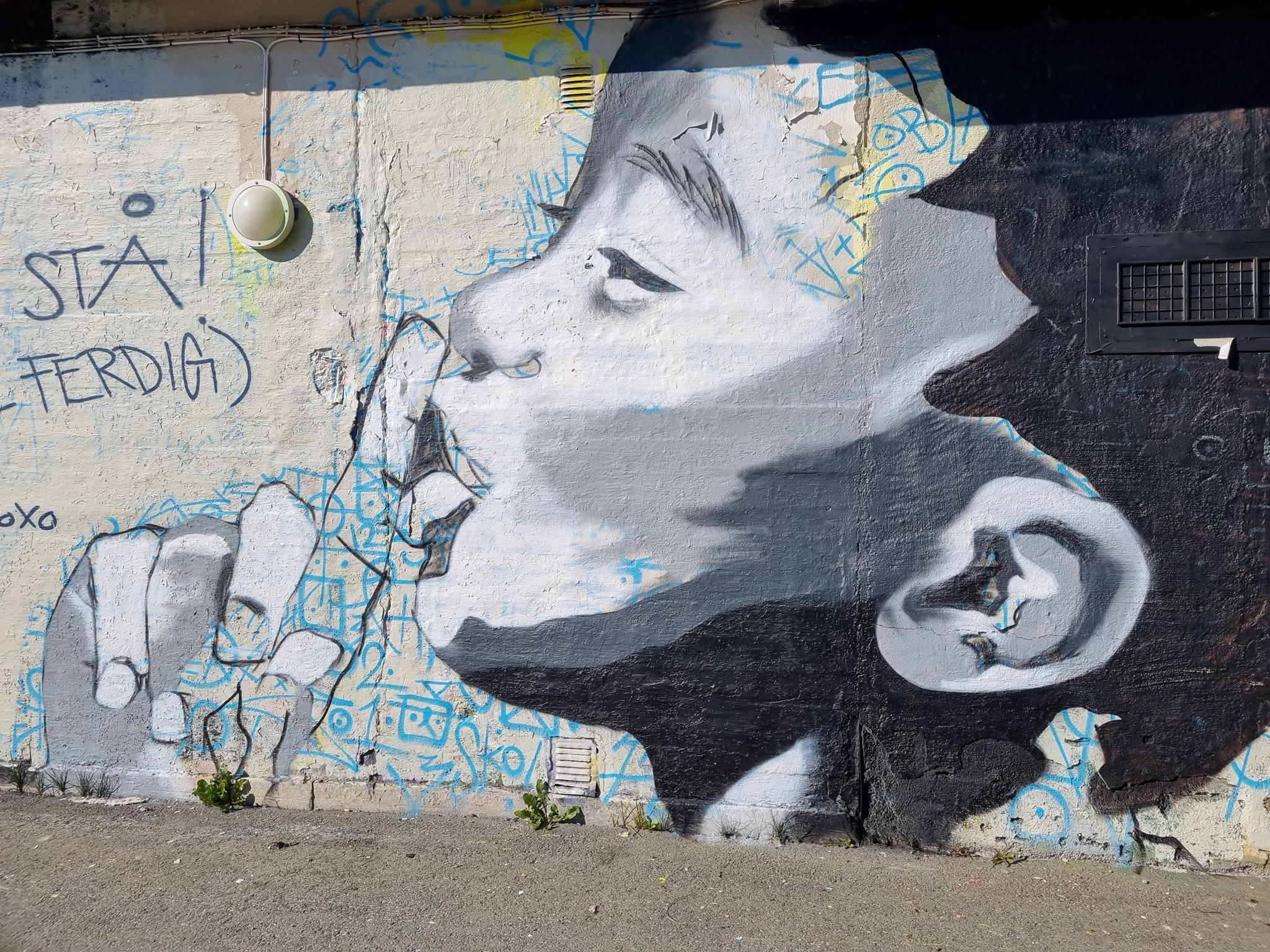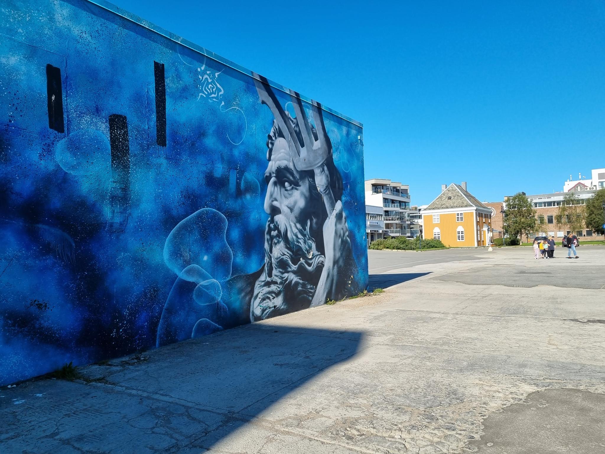 Harstad is a town in the province of Troms in northern Norway with a population of around 21.000. Worth seeing are the Tv-Tårnet observation tower, the Trondenes Center on the history of the Vikings, and the Trondenes Church, the world’s northernmost medieval stone church, built around 1250. It is located directly on the waterfront and is a historical landmark of the region. Not to be forgotten are the Folkeparken, the idyllic fjords, and the natural spectacle of the Northern Lights, which can be seen well from October to March. But the city offers not only colorful skies, but also colorful walls in the streets. Every year, the large music, theater, and art festival FESTSPILLENE I NORD NORGE, also known as the ARCTIC ARTS FESTIVAL, takes place here, and urban artworks by local artists are created for the occasion. The nordic artist group ARCTIC WRITERS are also active in Harstad time by time. Here we have a collection with magnificent creations photographed by graffiti hunter and streetart lover MAZZANTI. Check out her instagram channel, where she regularly presents great pictures from countries all over the world.