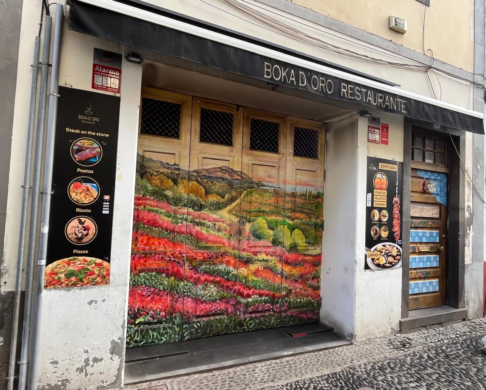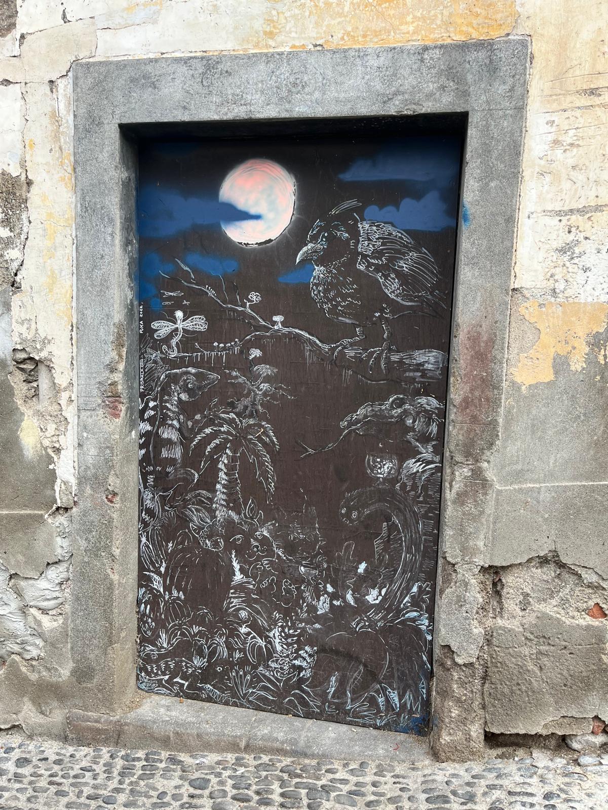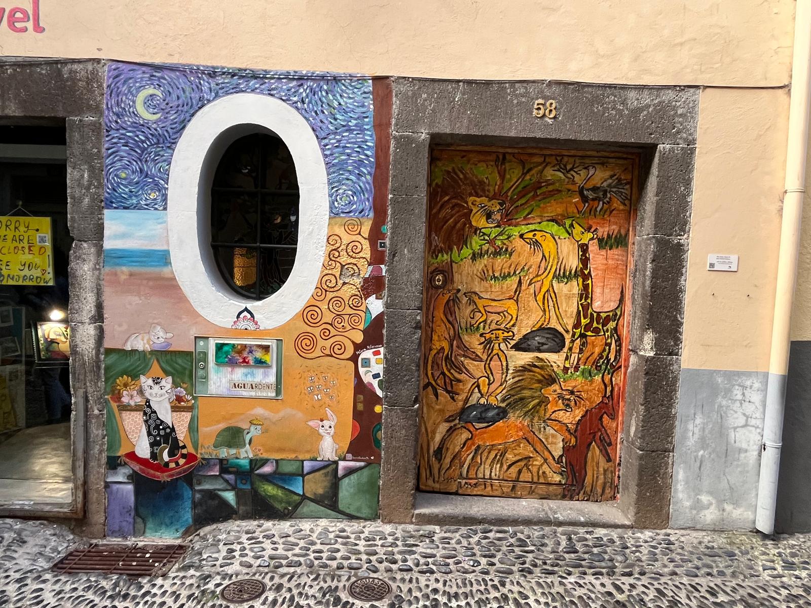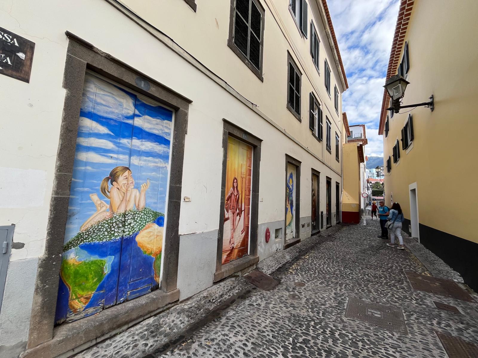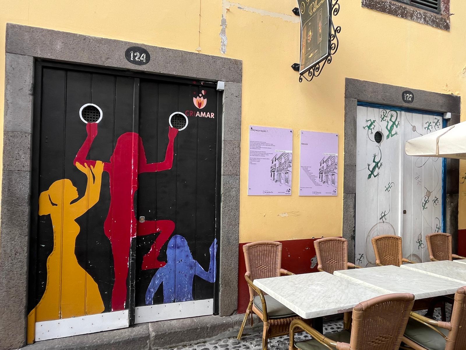 When visiting the island, exploring Rua Santa Maria and the area around is simply a must. The road runs a bit away from the sea right through the historical core – also called „Zona Velha“ – and branches off from Rua Profetas. The painted doors of the port city of Funchal can also be found in the adjacent streets and there are already a considerable number of large murals spread over the whole place.