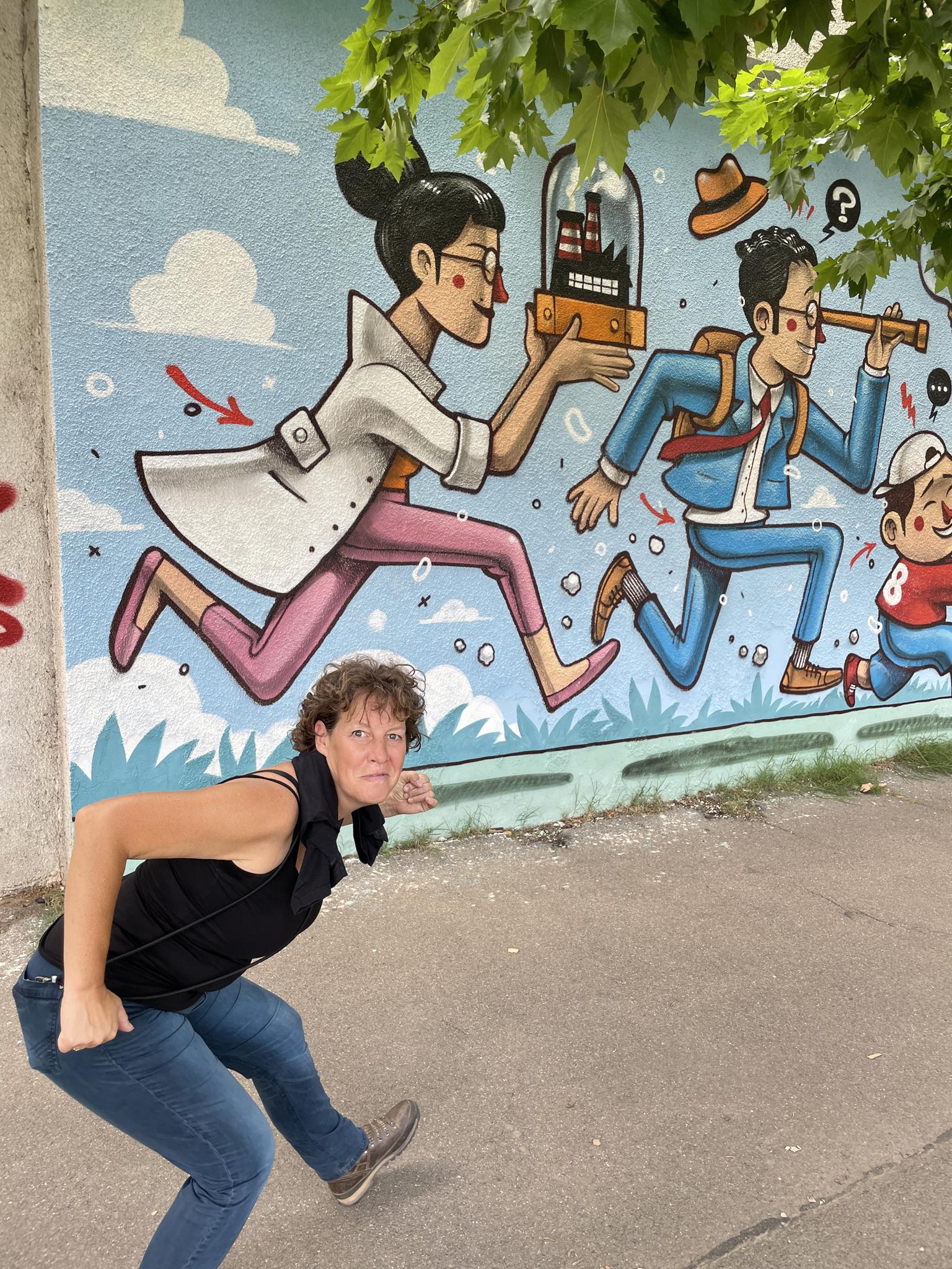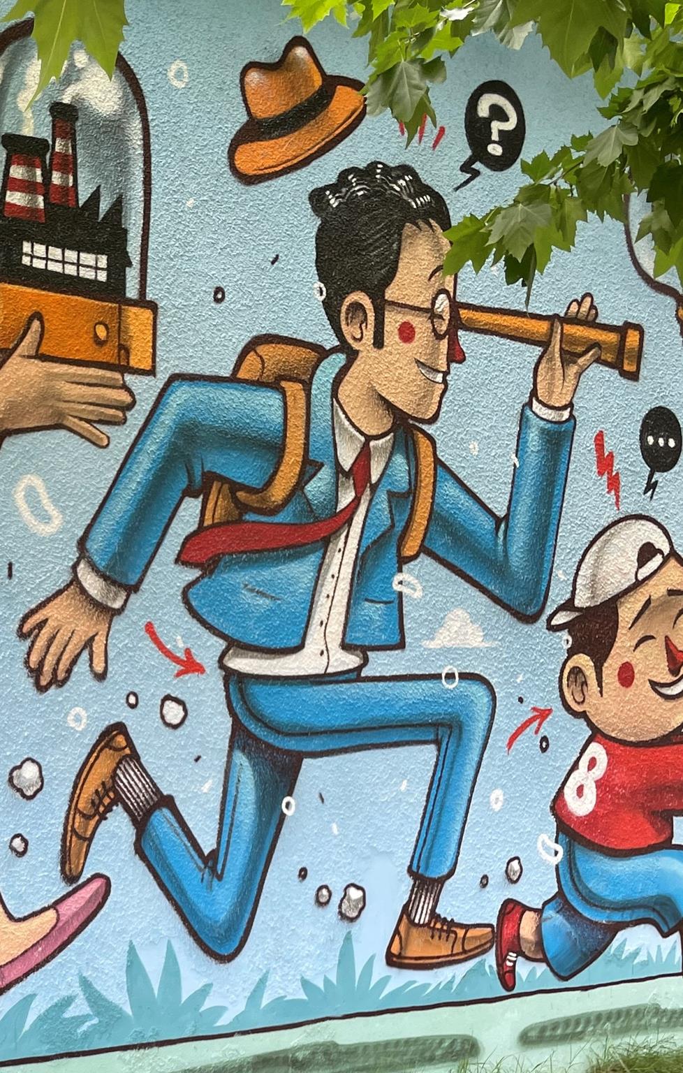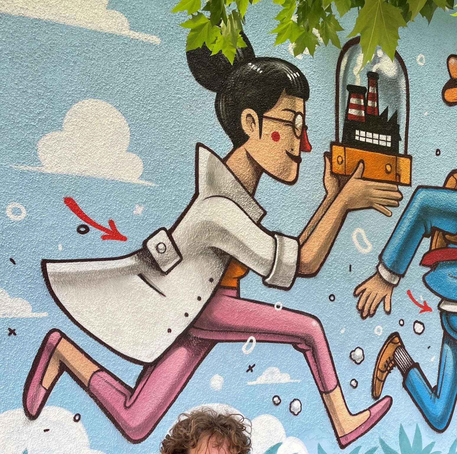 This artwork is part of an urban art series from the great culture project UN-HIDDEN ROMANIA. Have a look on their website, they highlight history, culture, art, old memories and actual happenings from Romania. A part of the project inculdes of course also the urban arts, and meanwhile several cool murals on the Bukarest streets have been created. At the same time, musicians created soundtracks for the respective murals. This here is number #2. The mural was made by MISTER THOMS from Italy with a musical interpretation. Check out as well the other artworks of PISICA P?TRAT? and DELIA CÎRSTEA. Meanwhile there are four artworks next to each other on a long wall at the north side of the Universitatea de ?tiin?e Agronomice ?i Medicin? Veterinar?, or in English the University of Agronomic Sciences and Veterinary Medicine. We don’t have photos of the first artwork from this series, as well nearly no material from Bukarest at all (yet). If you want to contribute to this city map, just write us to info@vagabundler.com.